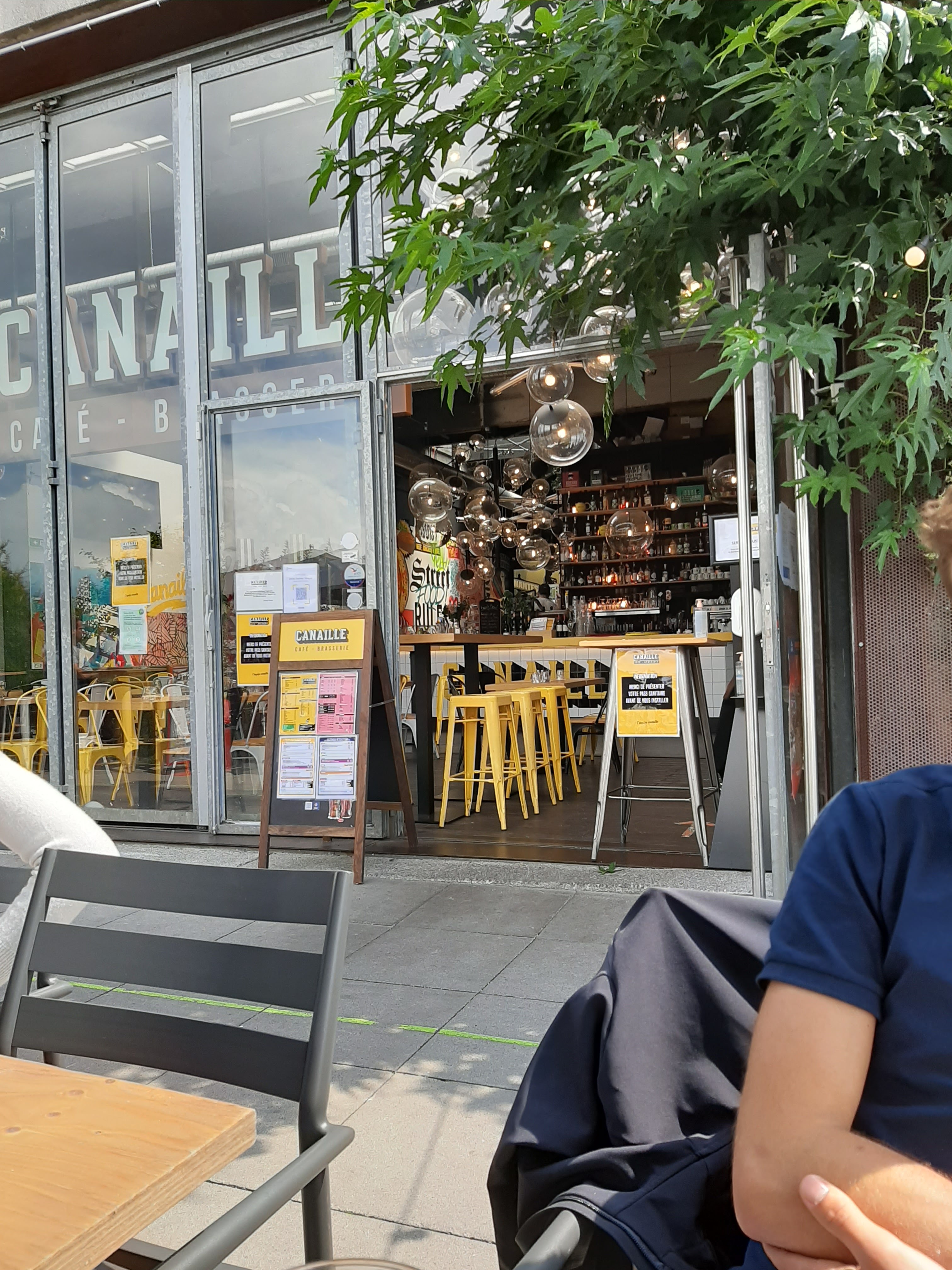 J’adore cet endroit. Je n’ai pas testé la cuisine, à part des gaufres une fois qui étaient pas mal. Pour ce qui est du bar, j’ai été très satisfaite. Je vais souvent à Canaille pour boire des verres, en après-midi ou en soirée. J’aime m’installer dehors pour profiter de la vue qu’offre les quais de l’île de nantes. L’intérieur est tout autant agréable, la décoration est vraiment très sympa. Vous pouvez foncer sans hésiter.