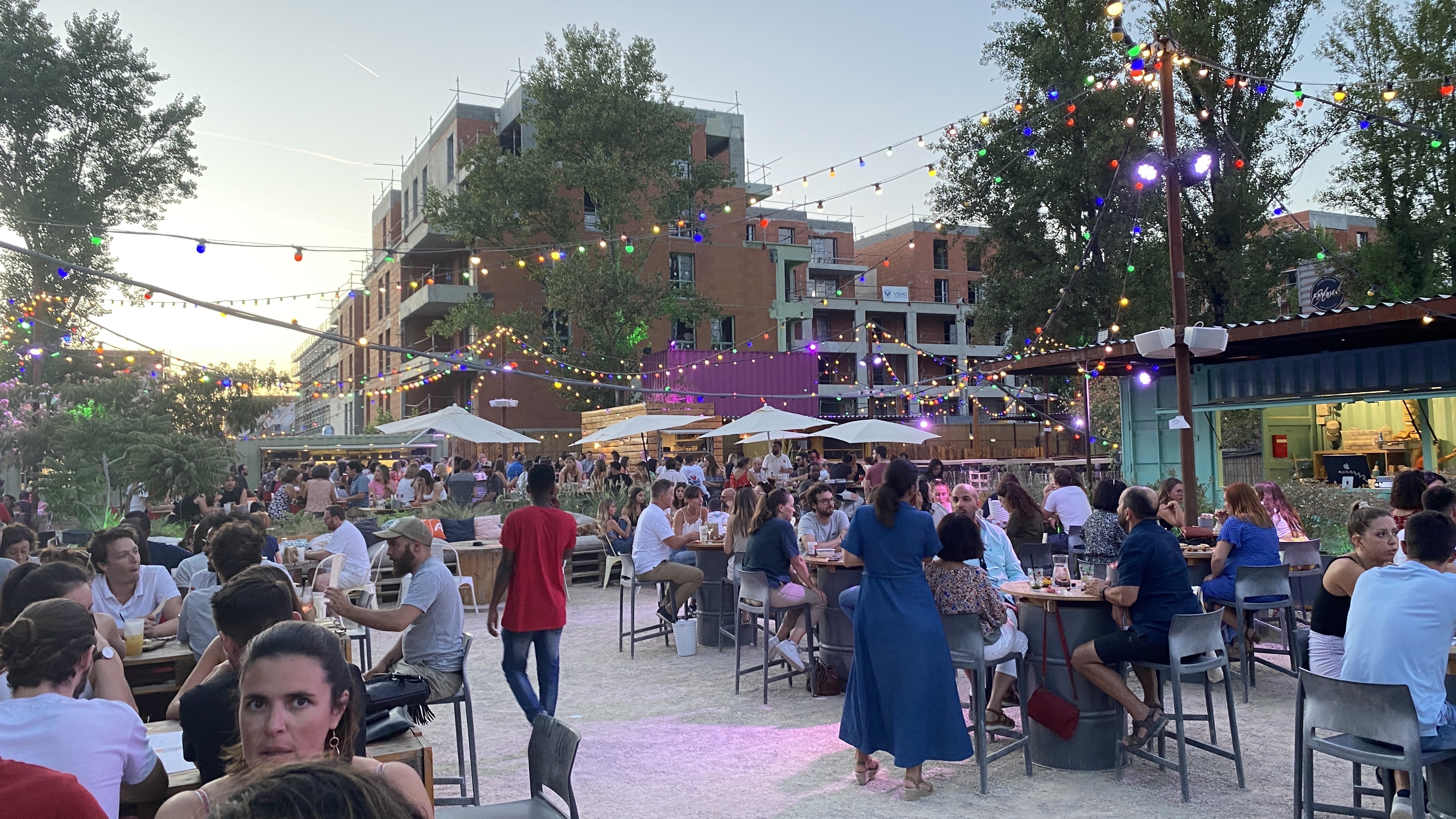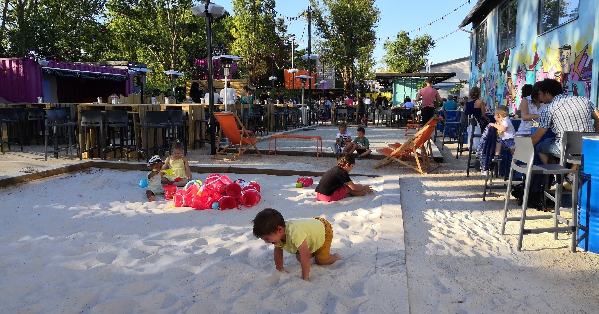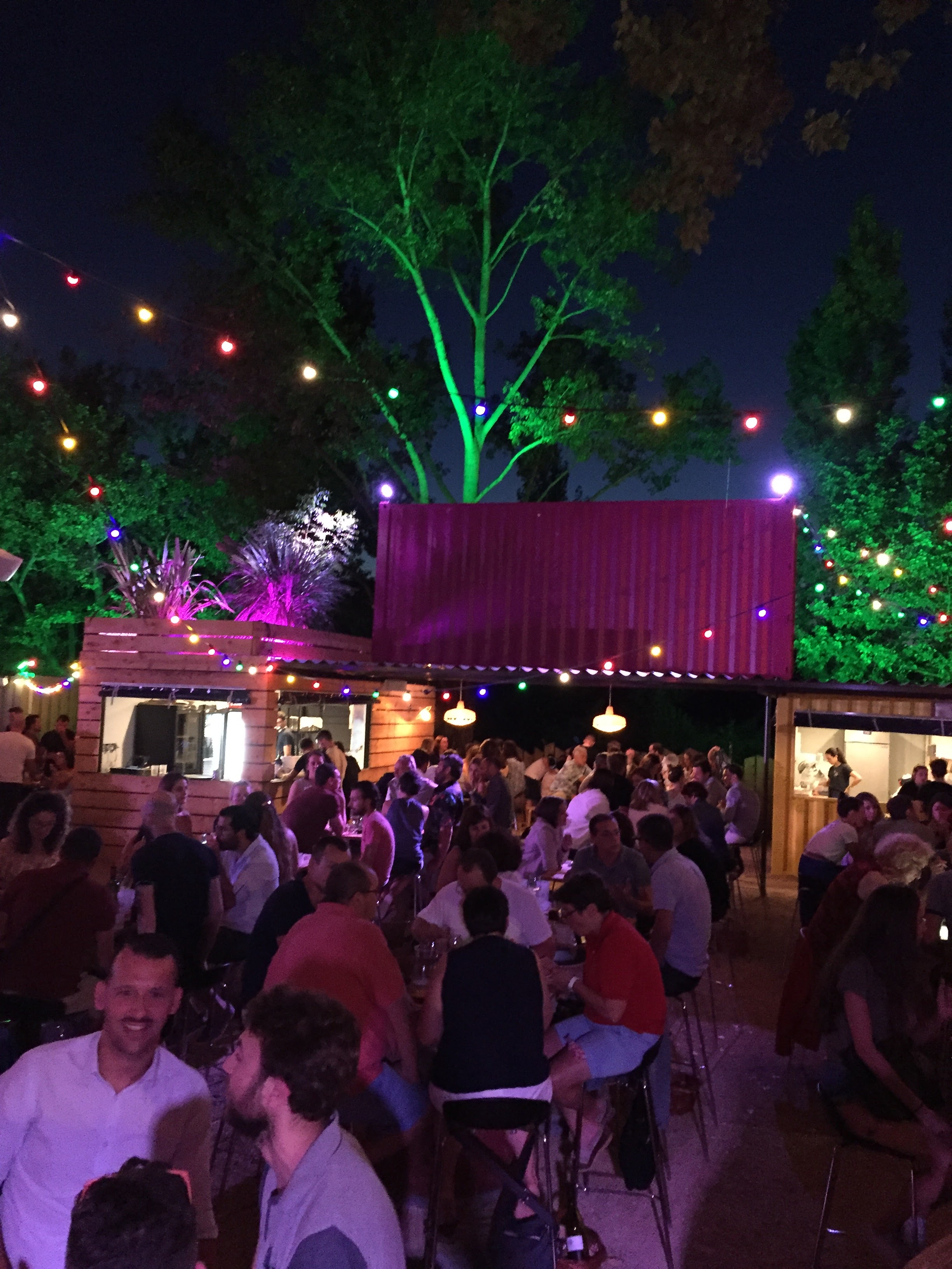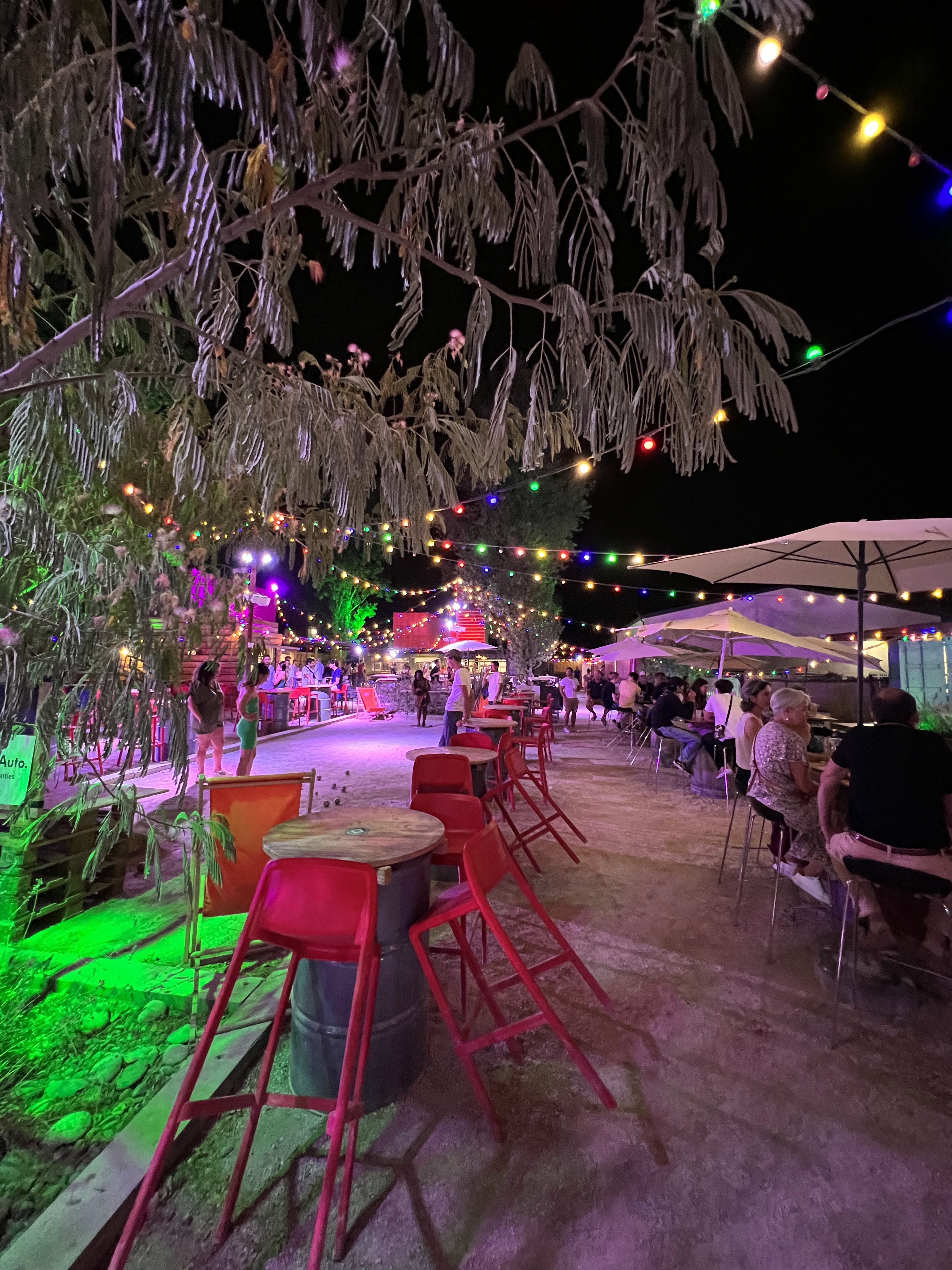 Nouveau lieu du côté de l'espace COBALT. Il présente l'avantage d'être très spacieux et est fait à base de palettes, bidons et conteneurs. Plusieurs bars avec des nourritures différentes. Il y a deux terrains de pétanque et un bac à sables pour vos enfants. La musique est plus forte que dans l'ancien endroit je suppose car il y a moins de voisinages autour. À tester l'été pour une soirée entre amis !!