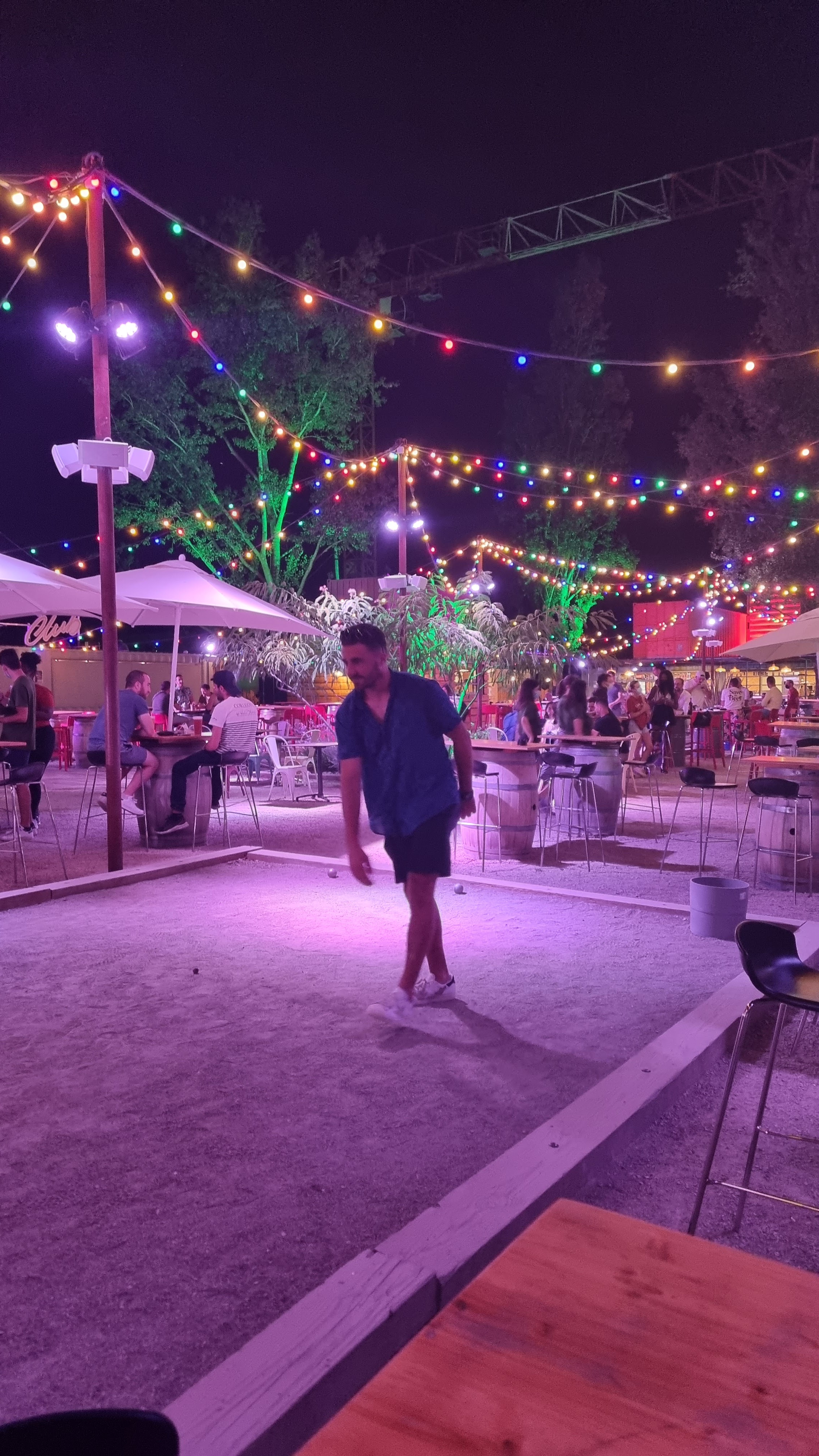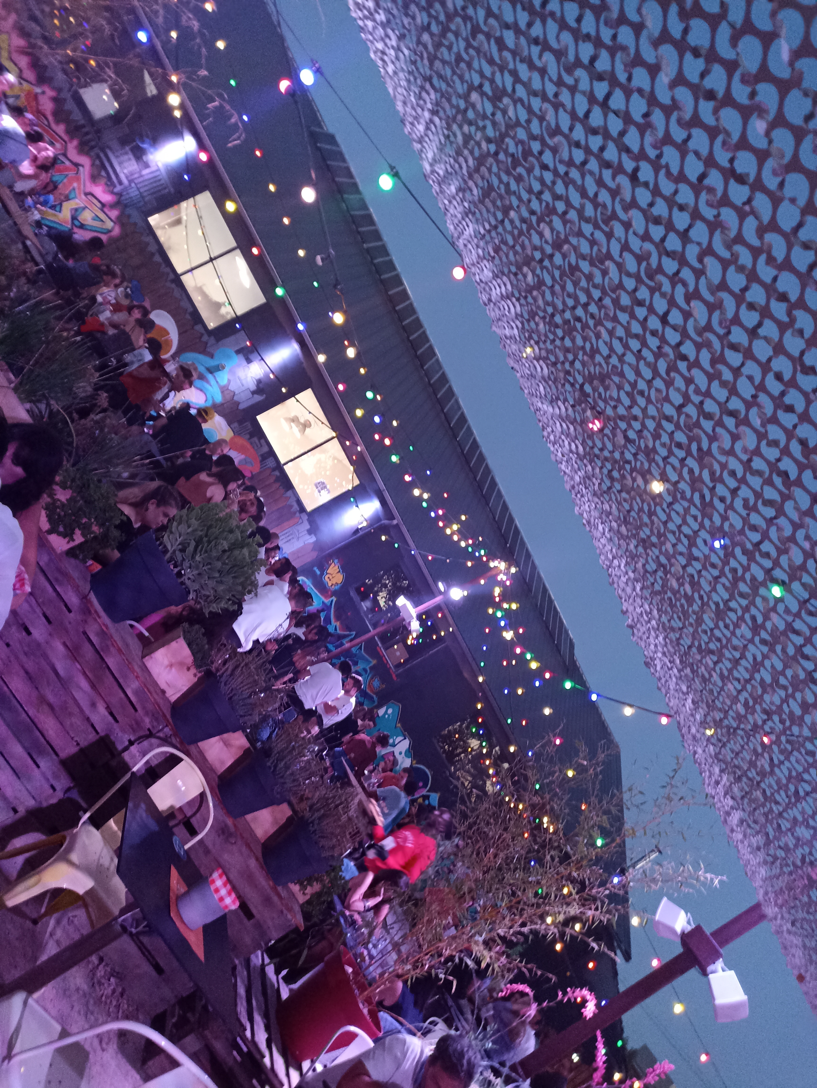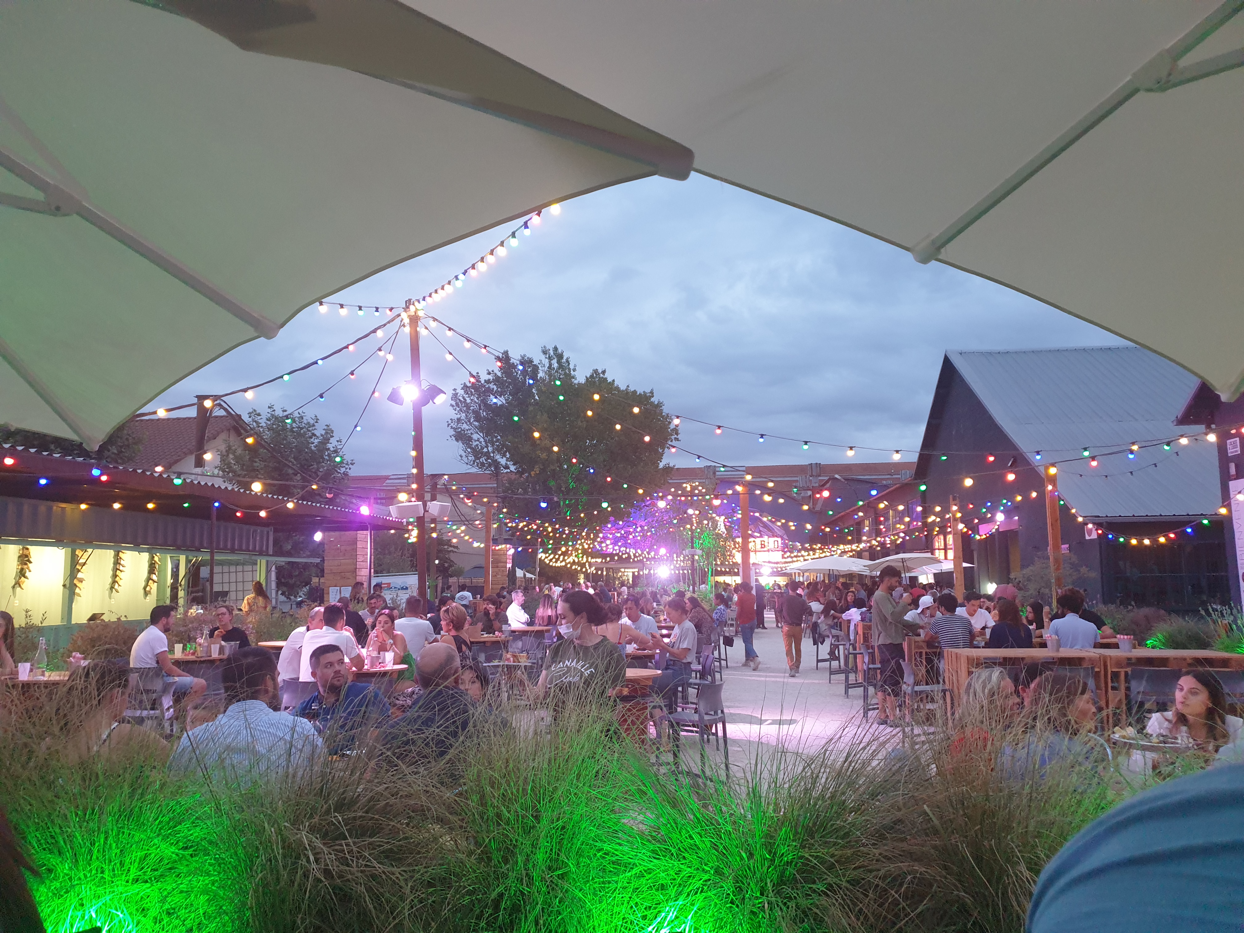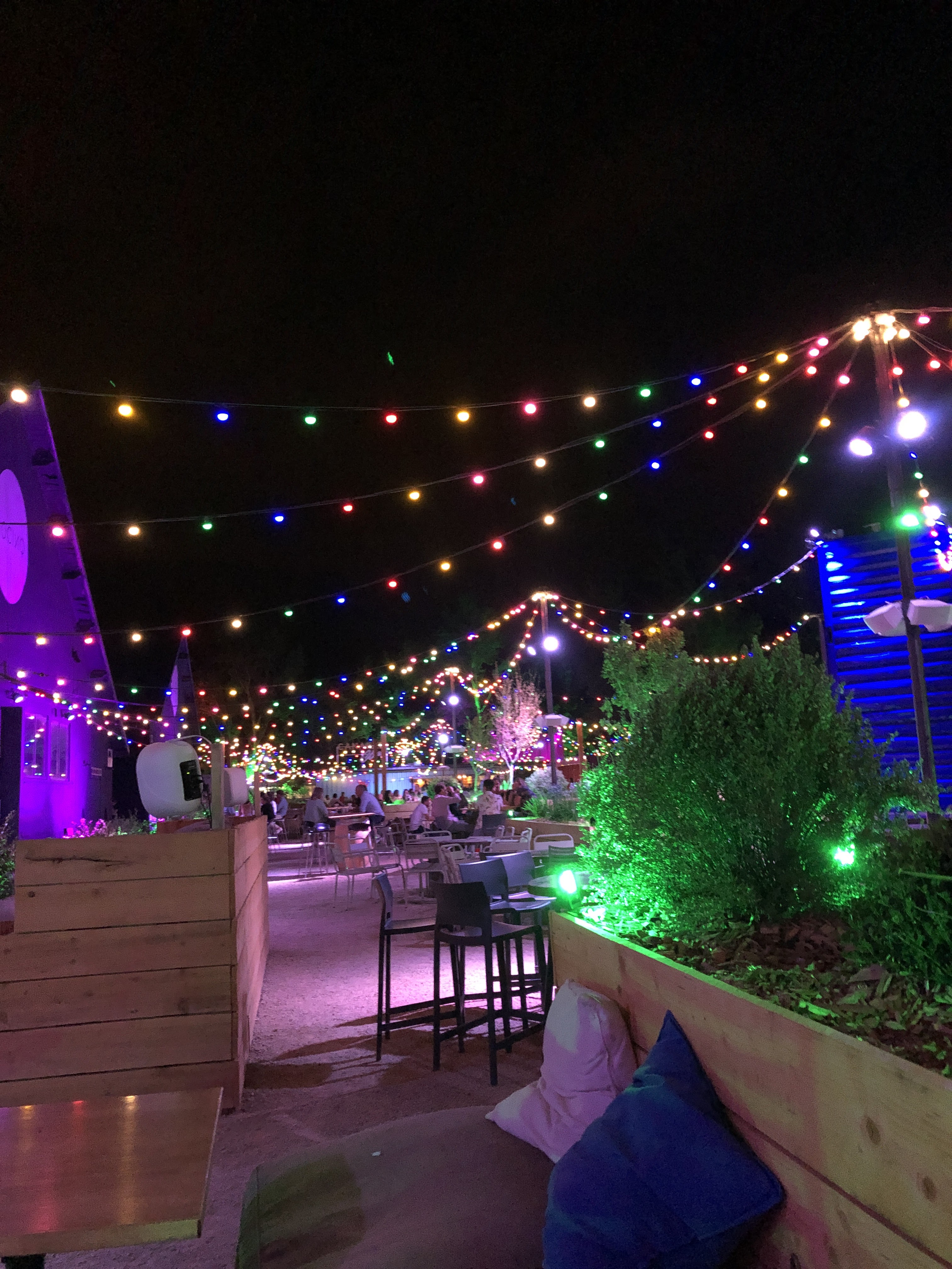 Nouveau lieu du côté de l'espace COBALT. Il présente l'avantage d'être très spacieux et est fait à base de palettes, bidons et conteneurs. Plusieurs bars avec des nourritures différentes. Il y a deux terrains de pétanque et un bac à sables pour vos enfants. La musique est plus forte que dans l'ancien endroit je suppose car il y a moins de voisinages autour. À tester l'été pour une soirée entre amis !!