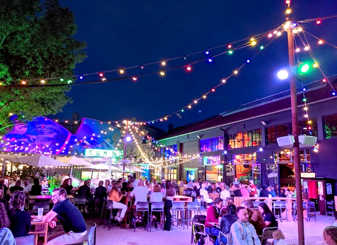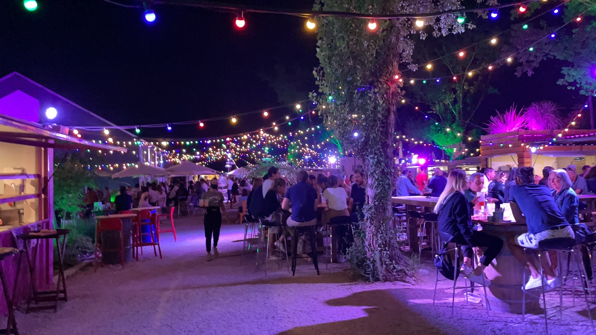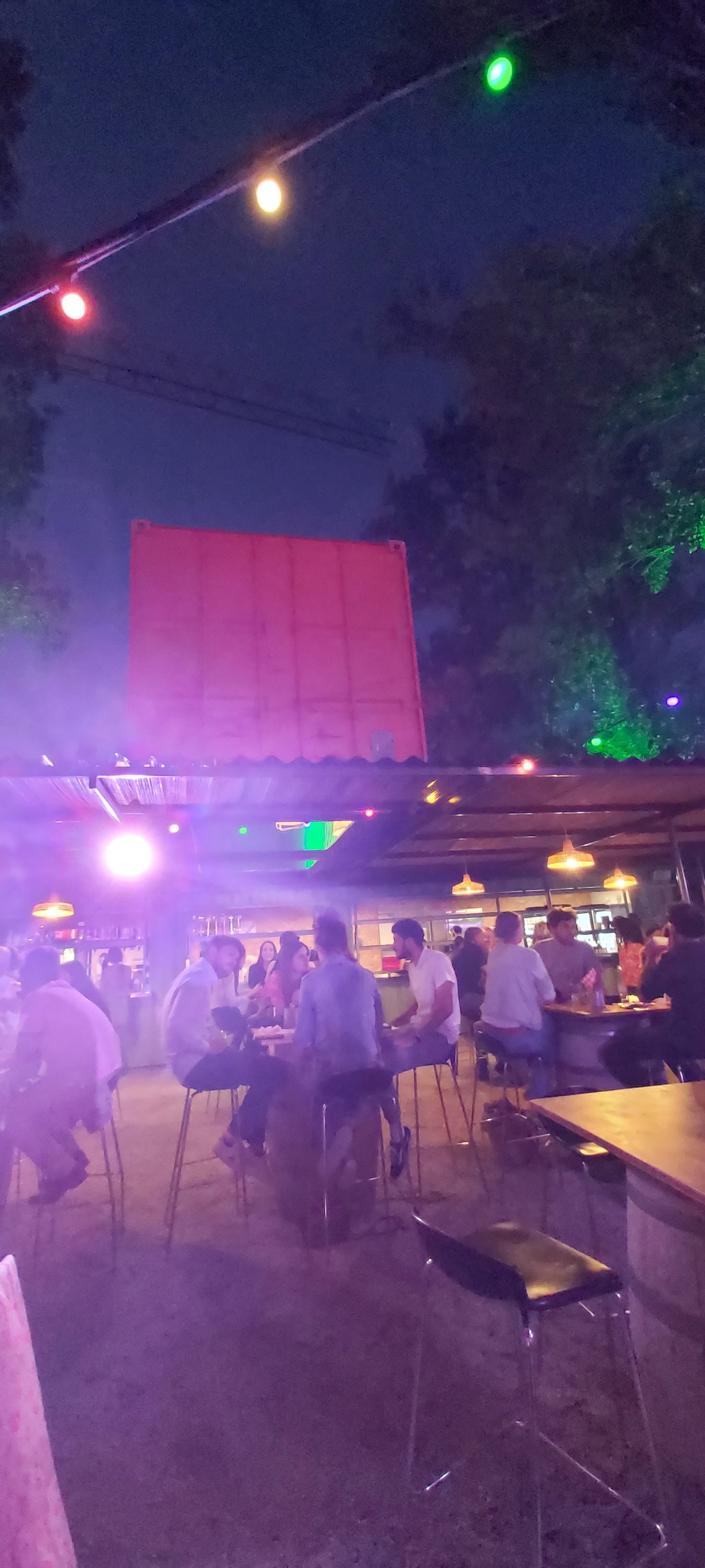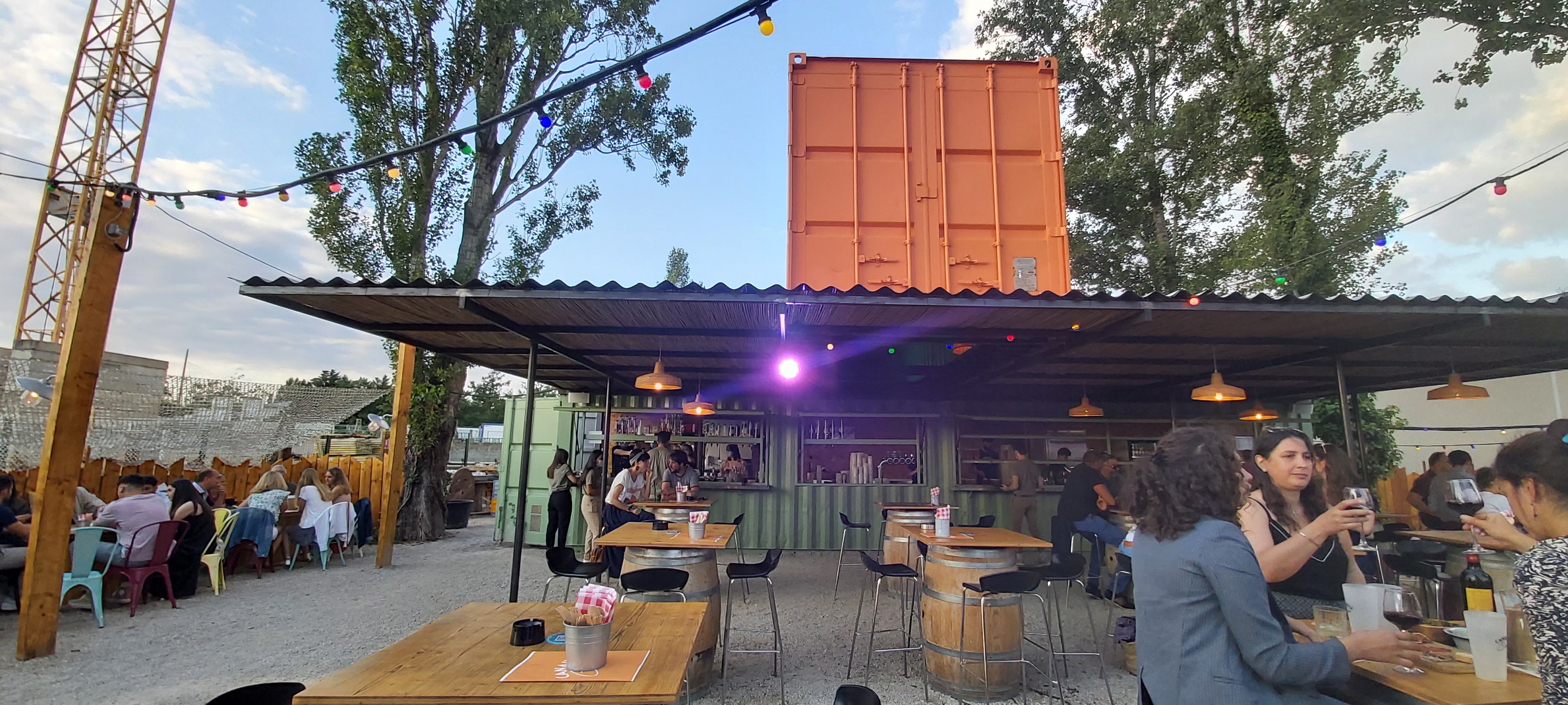 Nouveau lieu du côté de l'espace COBALT. Il présente l'avantage d'être très spacieux et est fait à base de palettes, bidons et conteneurs. Plusieurs bars avec des nourritures différentes. Il y a deux terrains de pétanque et un bac à sables pour vos enfants. La musique est plus forte que dans l'ancien endroit je suppose car il y a moins de voisinages autour. À tester l'été pour une soirée entre amis !!