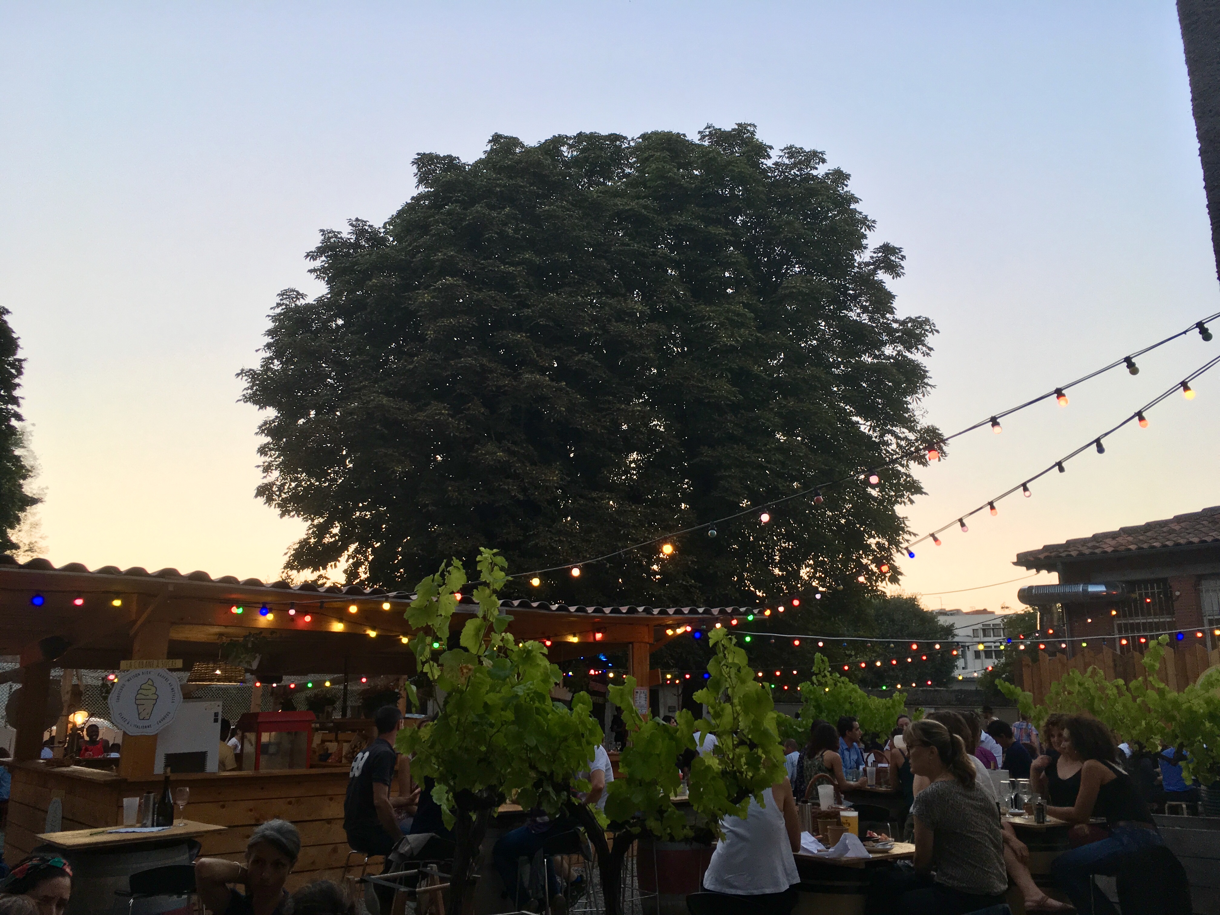 Le canaille club est une guinguette ephemere qui change de lieu tous les deux ans à peu près. Je dois dire que c’est un incontournable toulousain et que j’y retourne tous les ans car le service est rapide, sympa et très professionnel. Sur les photos nous étions en repas d’équipe, mais l’atmosphère se prête parfaitement à un repas de couple ou en famille également. Il y a même des diffusions de dessin animés pour les enfants. C’est bon, un peu cher mais la qualité se paye. Cette année le lieu est très urbain avec des décorations street art que j’adore mais j’aimais bien le charme du précédent lieu à saint Michel qui était plus caché et plus roots mais ce n’est qu une affaire de goût et le lieu de cette année permet à plus de monde d’en profiter. Je recommande donc.
