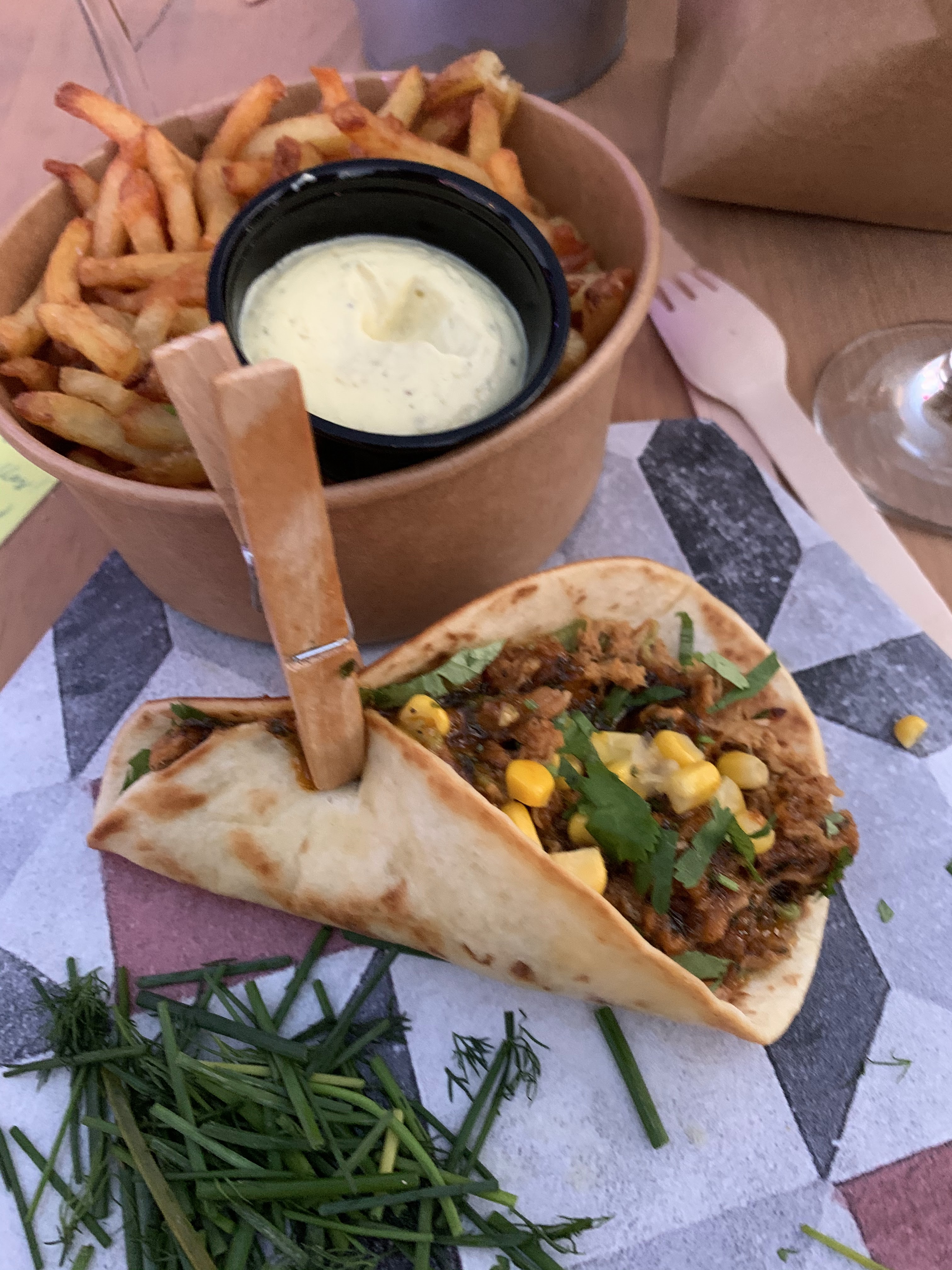 Concept très sympa plusieurs choix de restauration servis à table COVID oblige . En extérieur très agréable les serveurs sont rapides . Le QR code très pratique . Un parking tranquille