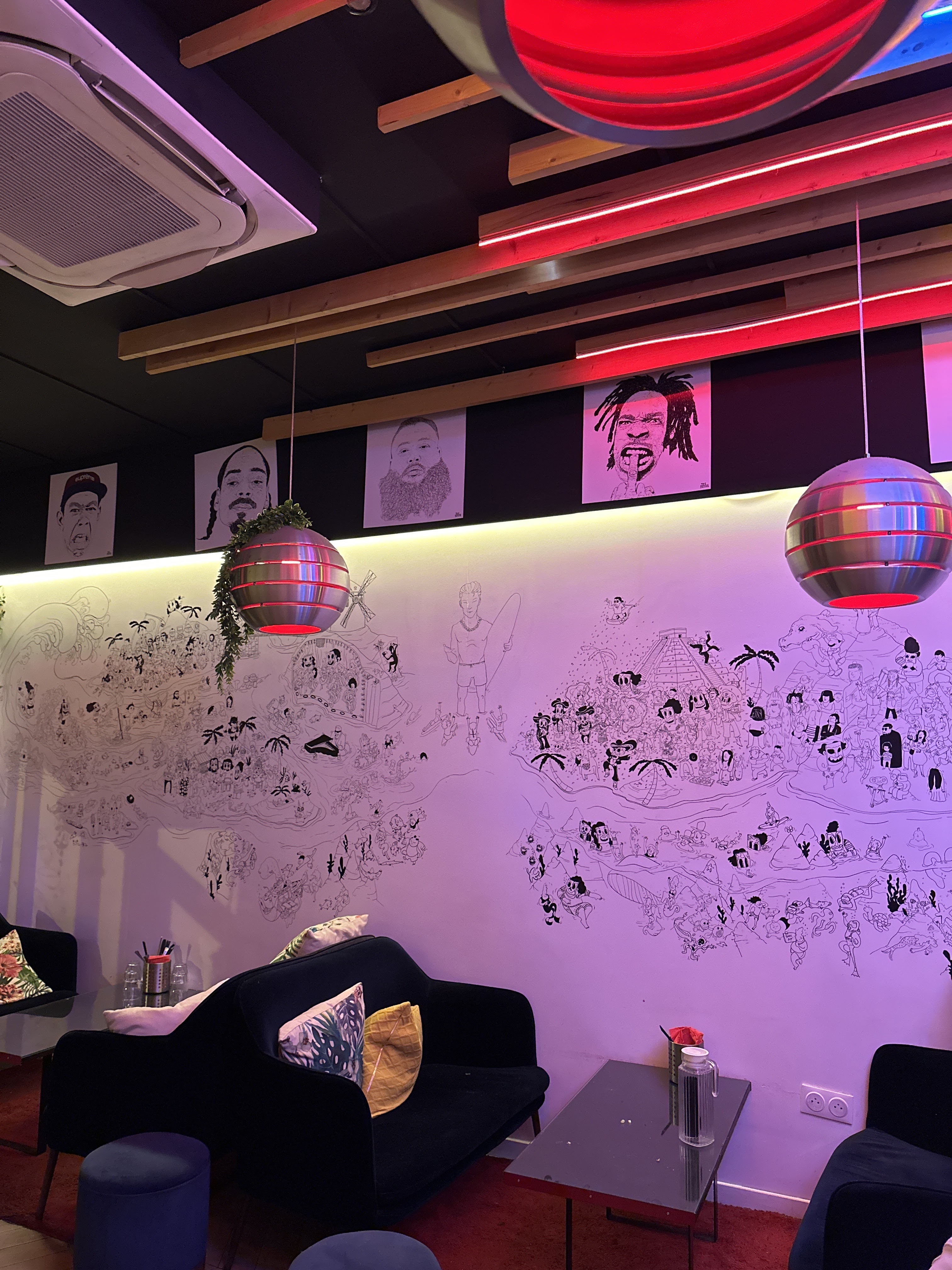 Des portraits de rappeur et une fresque grave stylée..une déco originale. En tout cas, moi j'aime beaucoup. Quand au poké que j'ai commandé...un vrai régal qui était aussi très copieux. C'est à tester !!!!