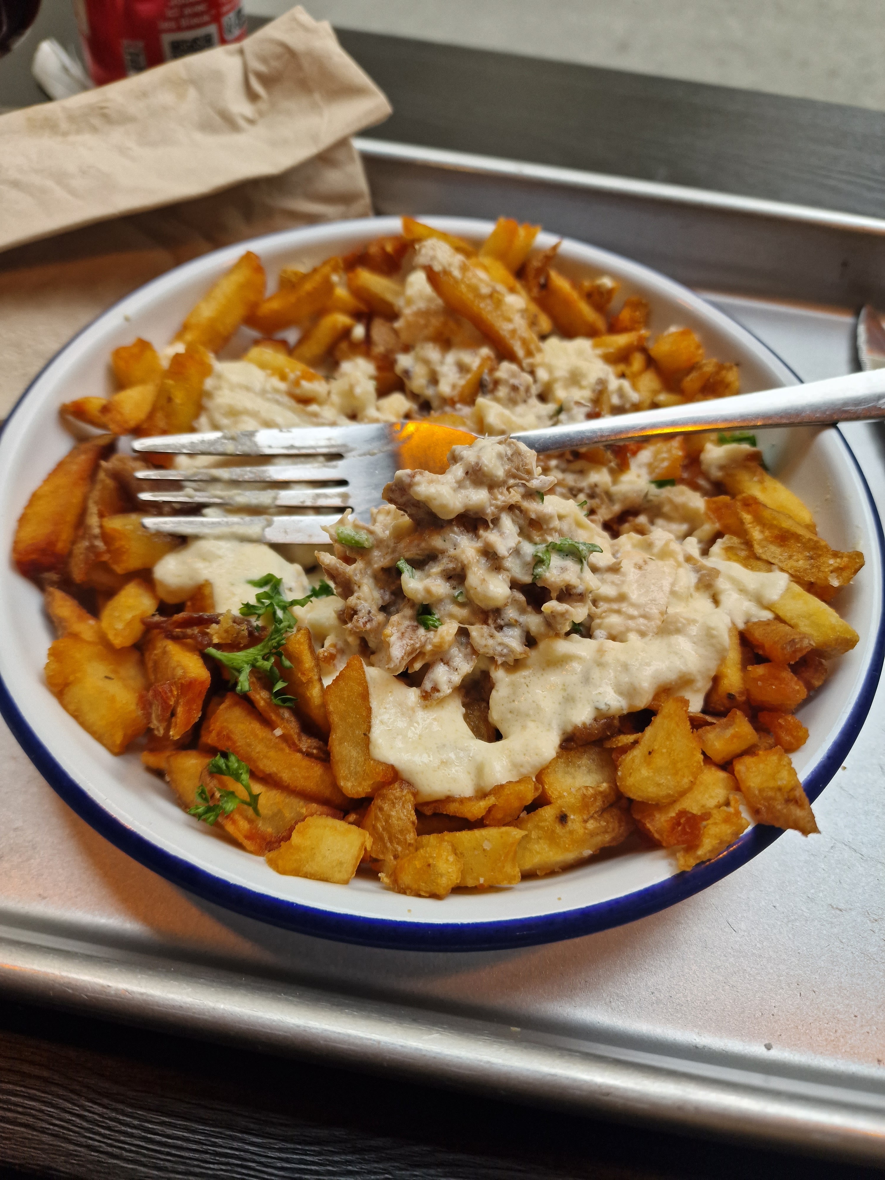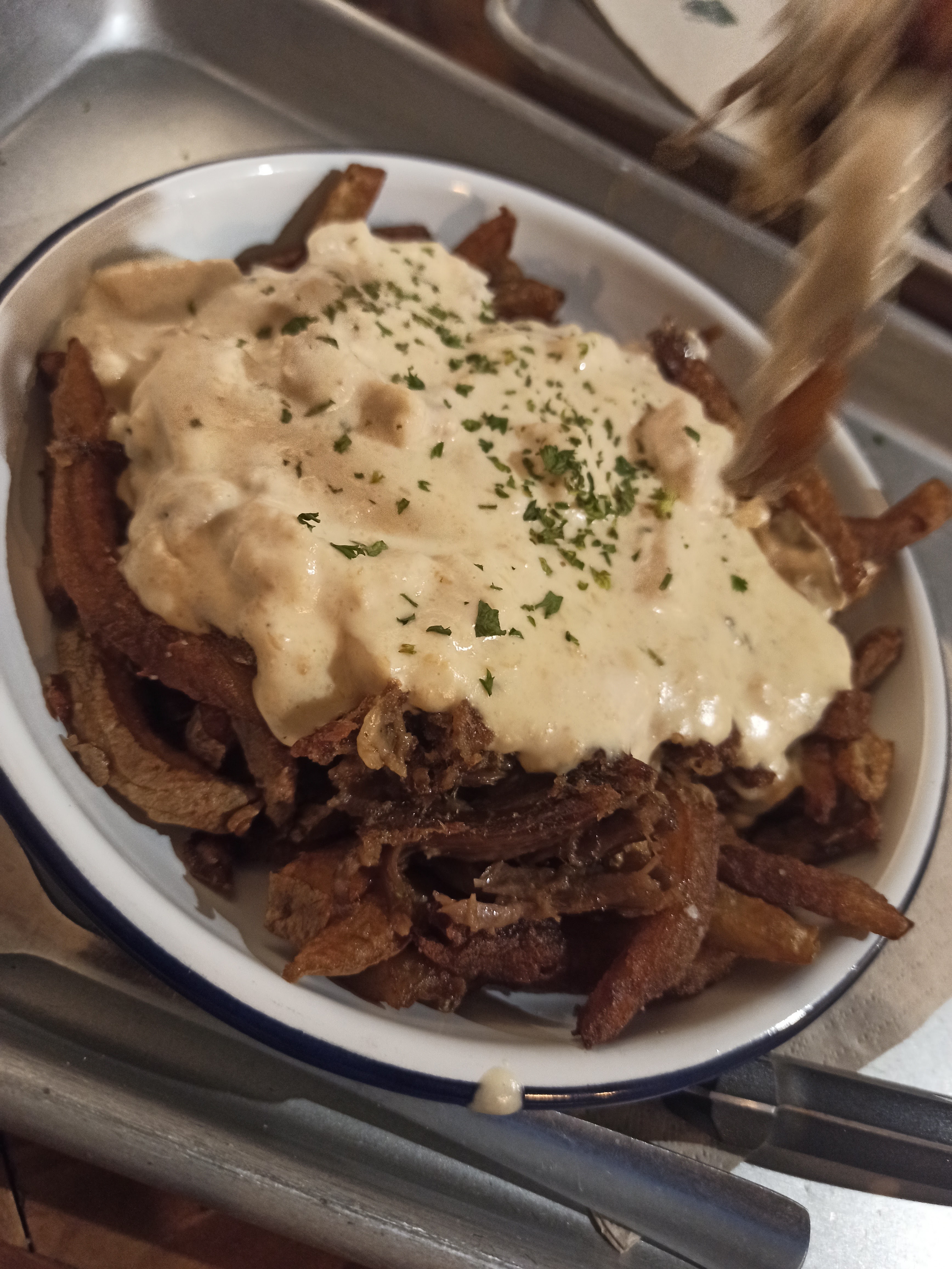 Concept très sympa et attirant ! Nous avons pris deux carnadines … sauce excellente hélas très peu de canard et frites qui ont eu trop de bain de cuisson Avis donc assez mitigé …
