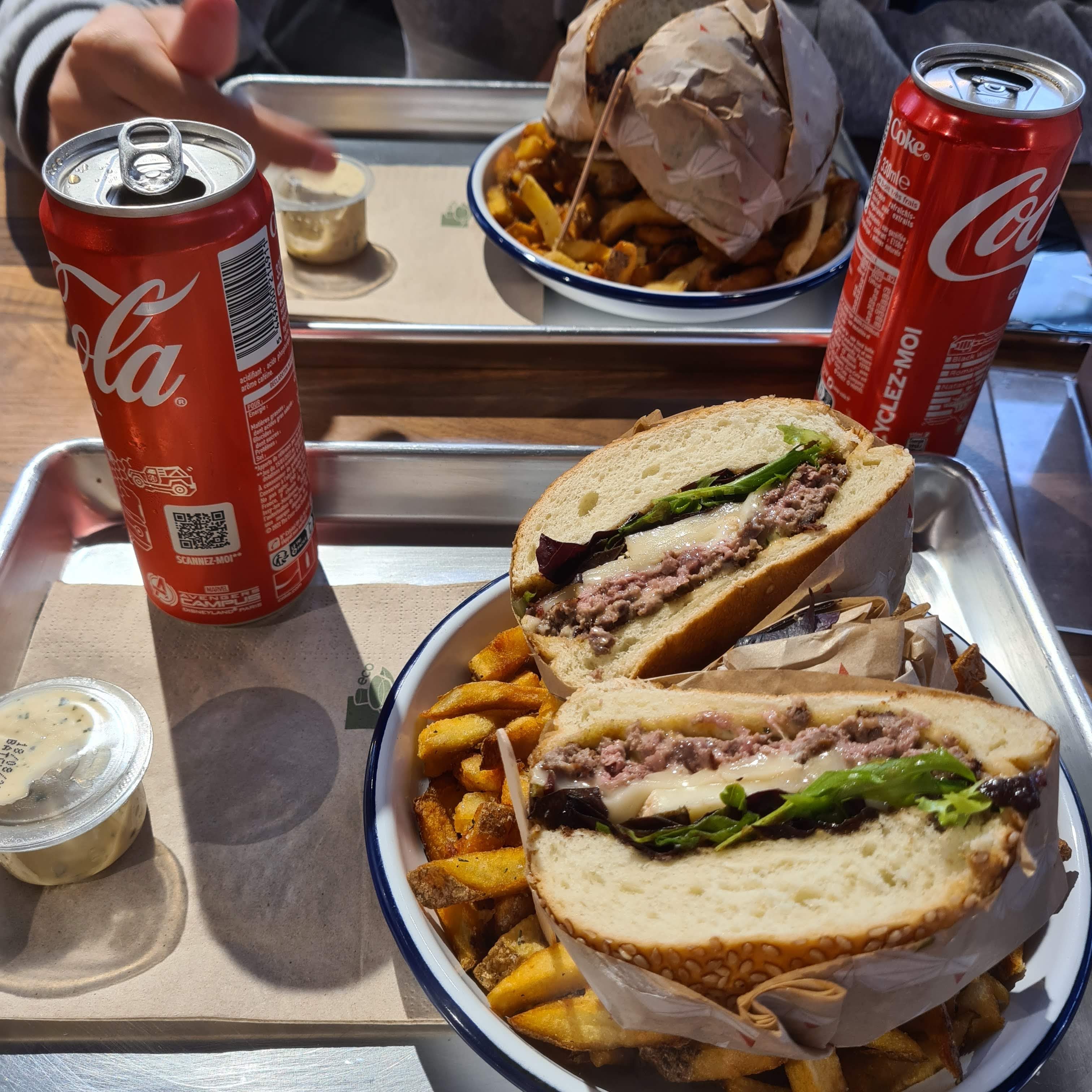 Nous avons pris des hamburgers au canard, c'était bon mais je m'attendais a mieux, j'ai du un peu trier la salade. Je n'ai plus que 3 car la salle est bruyante. Sinon l'équipe avait l'air sympathique ce qui n'est pas forcément le cas dans ce type de resto rapide.