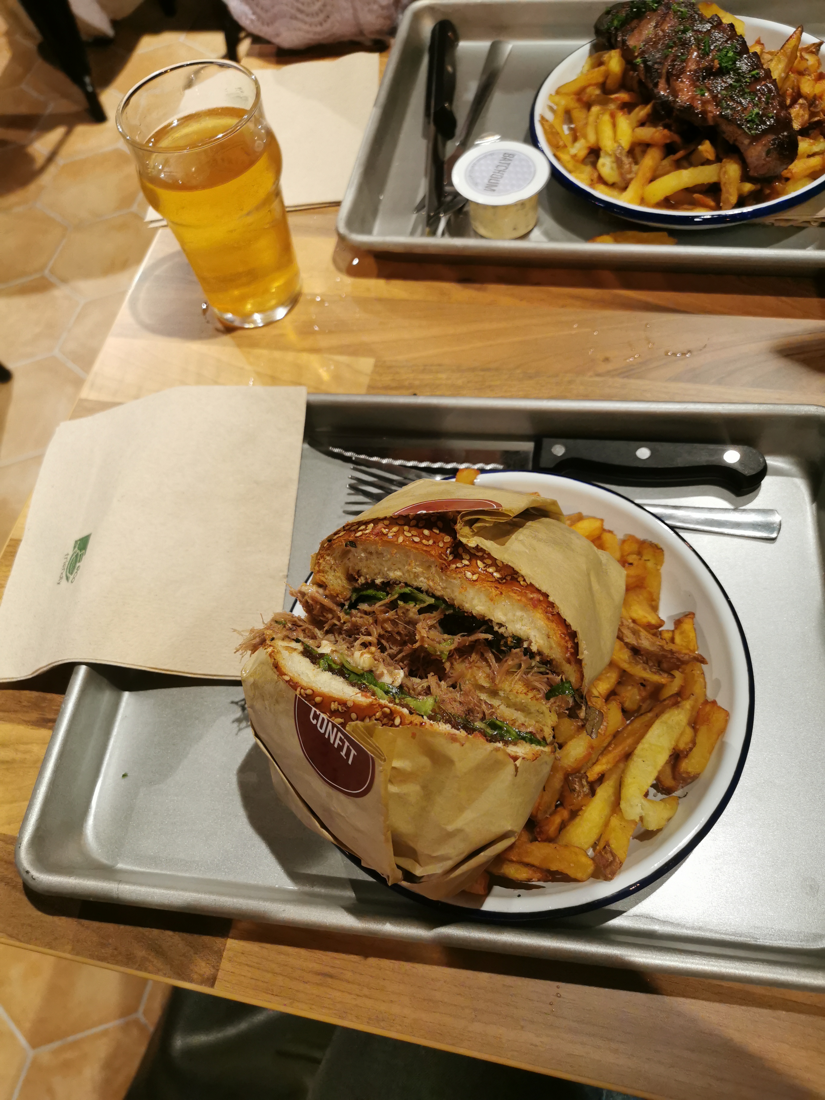 Visité ici à cause du plat de canard mentionné, commandé un burger confit, la nourriture est correcte, la viande est légèrement sèche mais reste correcte, les frites sont excellentes, l'ambiance est bonne, le personnel est sympathique.