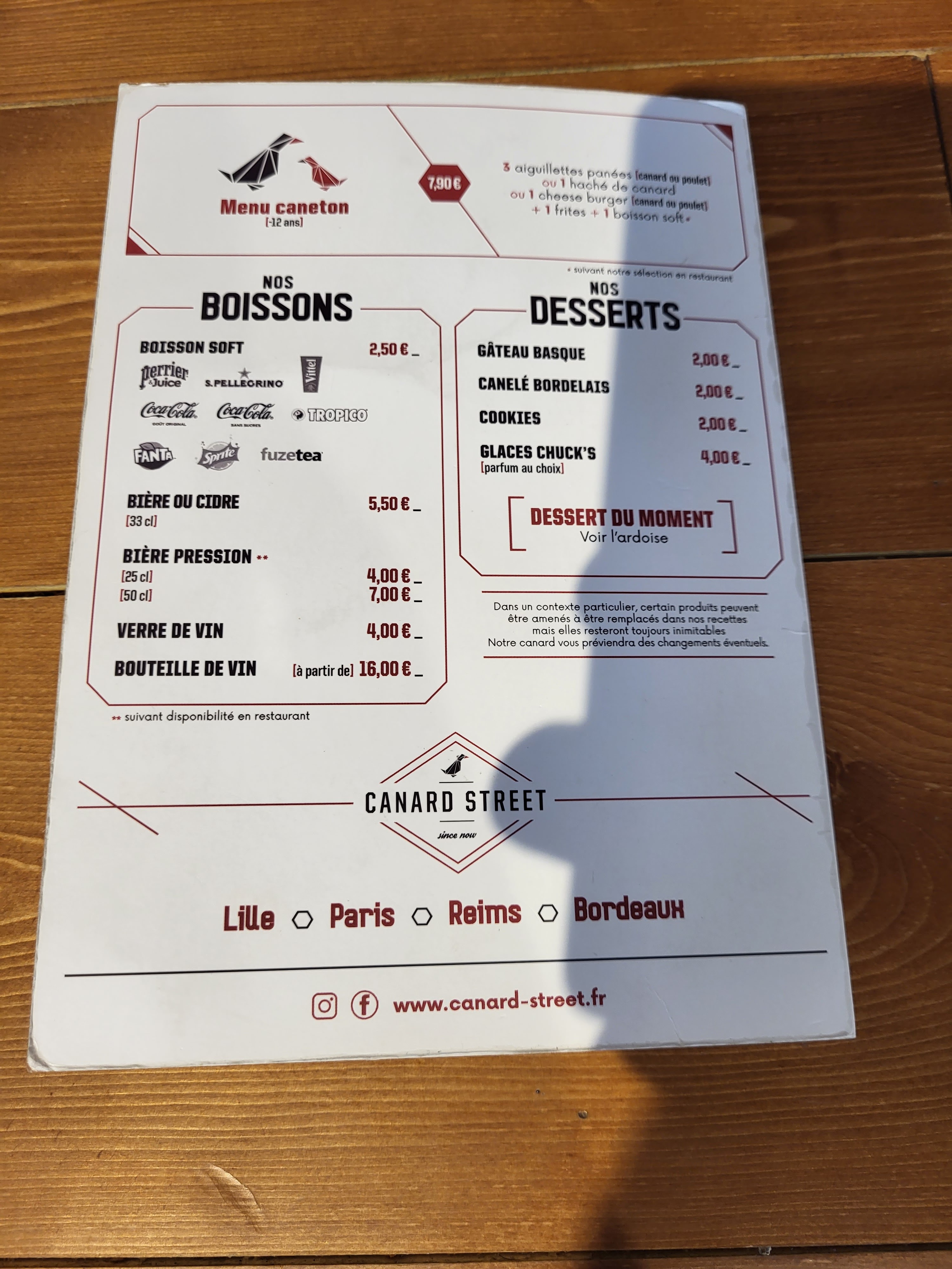10/07/23 : Canard Street Bordeaux Planche canard street (18.00€) Vous voulez vous régalez je vous conseil ce restaurant leur planche est énorme et l'accueil est top merci encore pour tout
