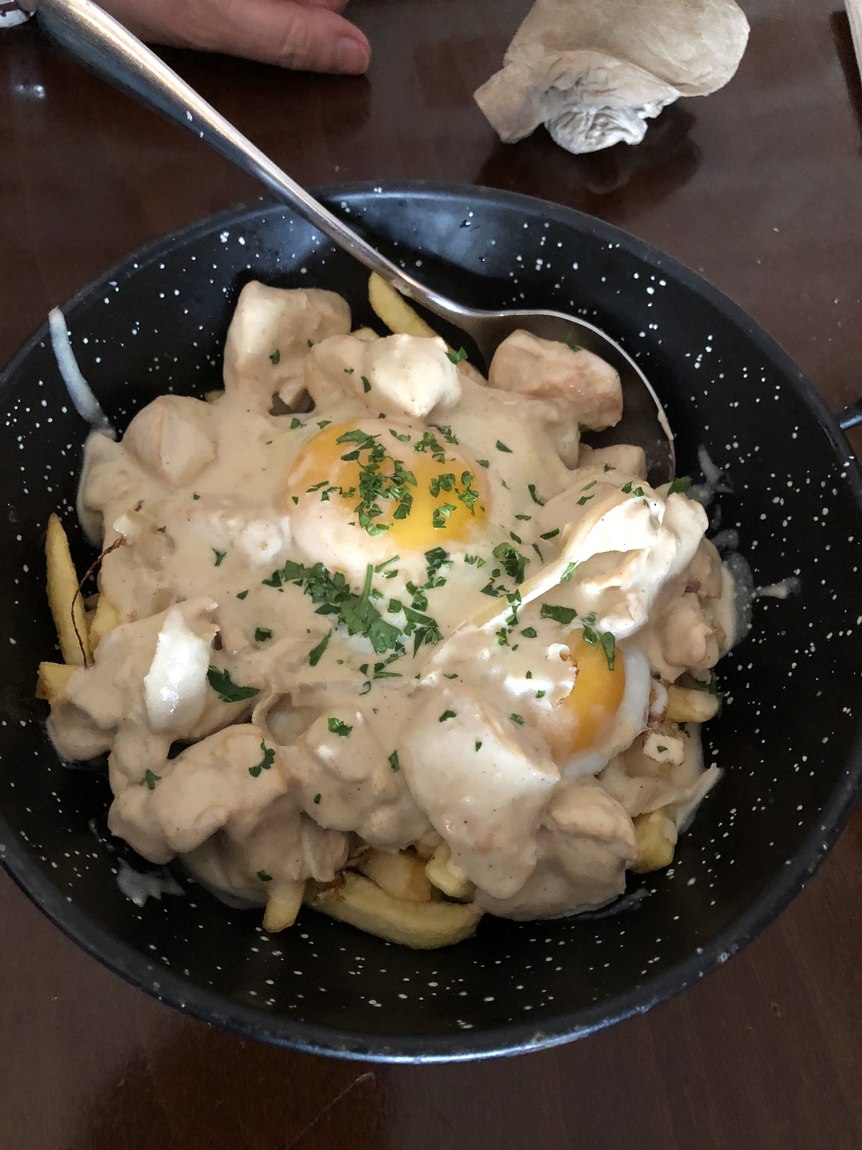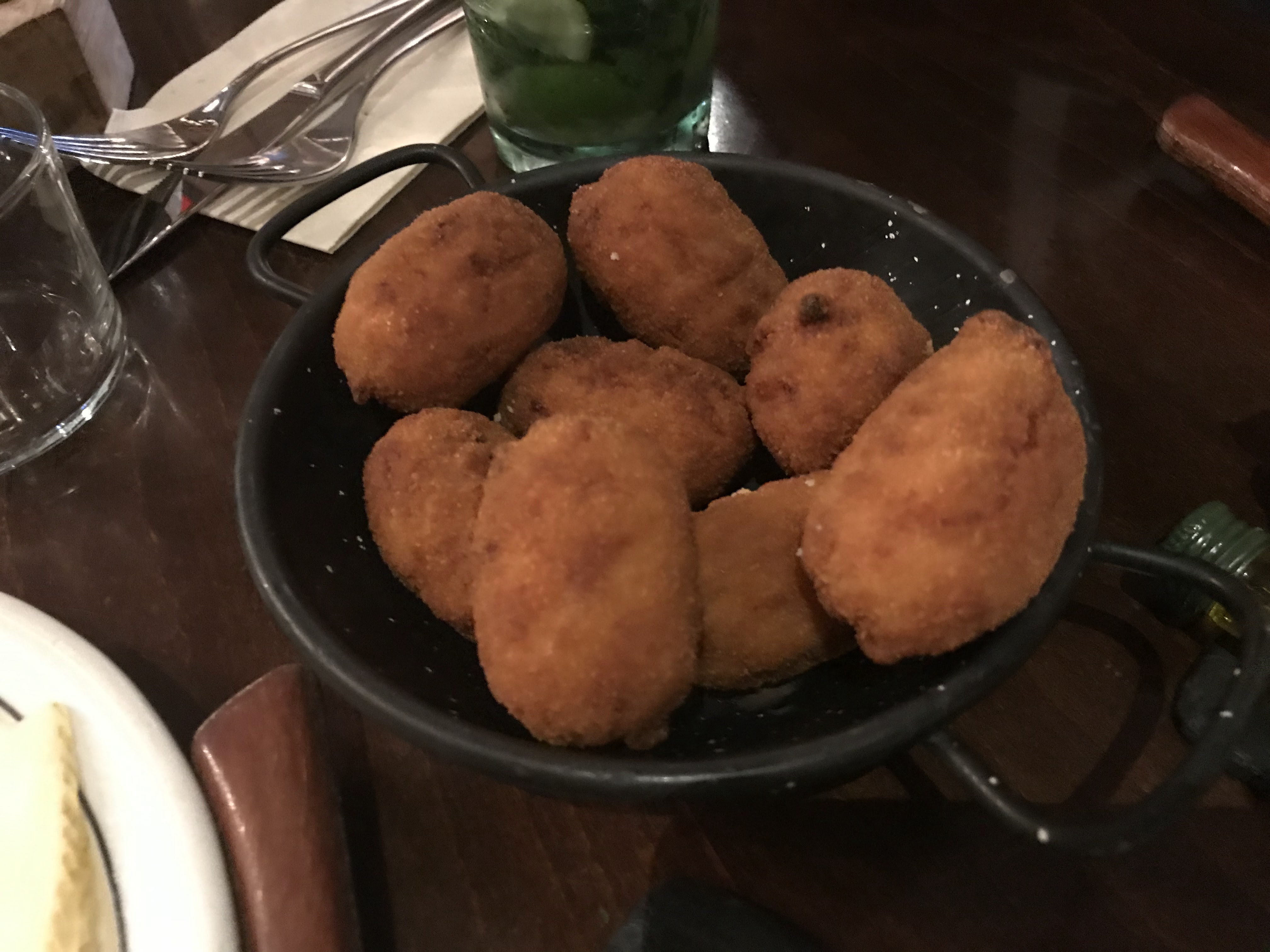 Première fois que je mange dans ce restaurant avec mon ami. Nous avons pris en entrée des croquettes au bleu et miel que nous avons vraiment bien aimés et que nous avons accompagnés d'un cocktail qui était trop sucré. En plat principal nous avons pris deux huevos rotos chorizo et poulet. Celui au poulet était très bon mais nous avons remarqué que le poulet était encore un peu rosé à l'intérieur... celui au chorizo était bon mais très sec, il manquait de quelque chose. Les churros étaient sympa en dessert même si ils étaient très clairement surgelés. Cependant, nous allons revenir une prochaine fois tester deux autres huevos rotos et croquettes. ;)