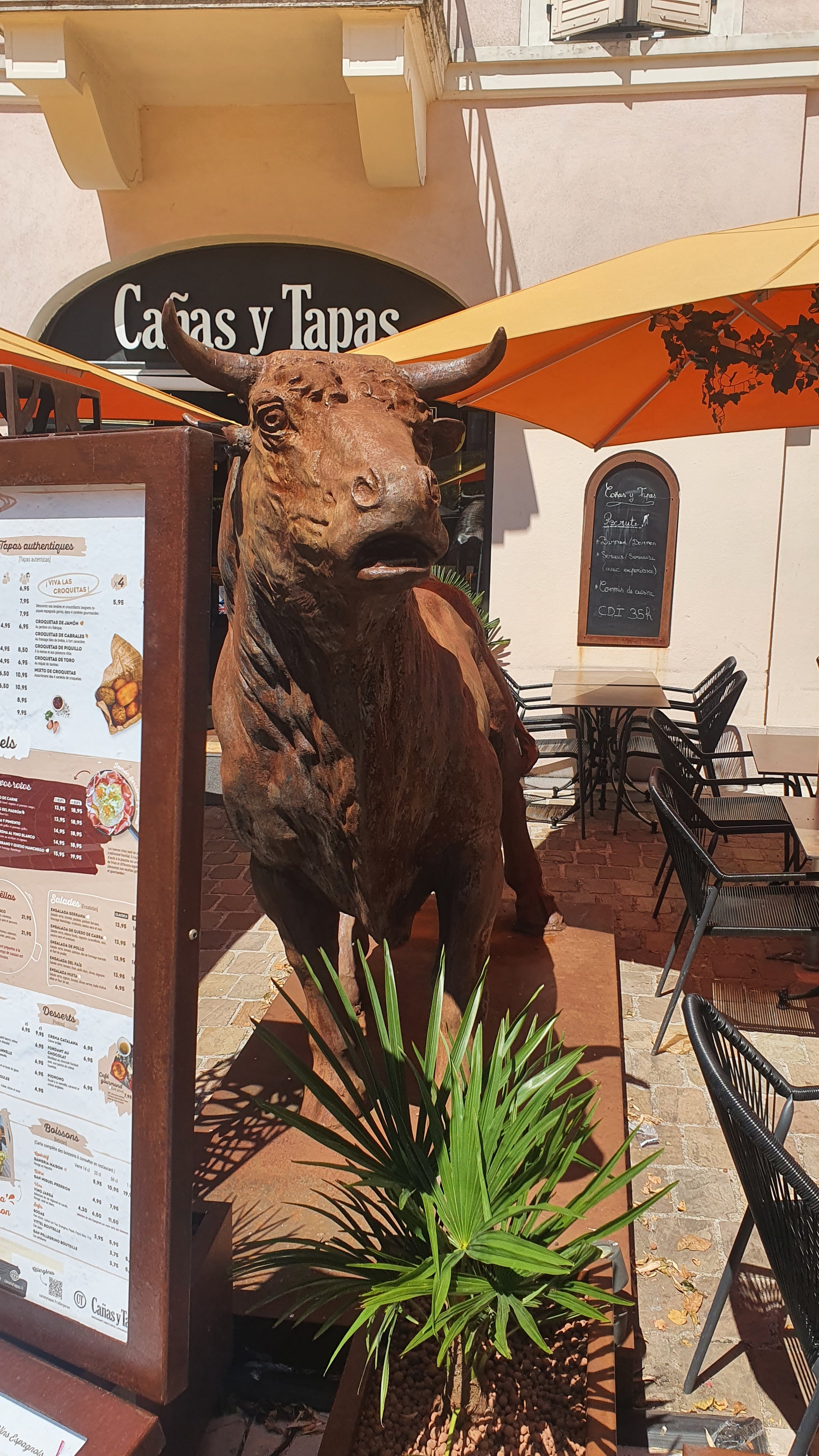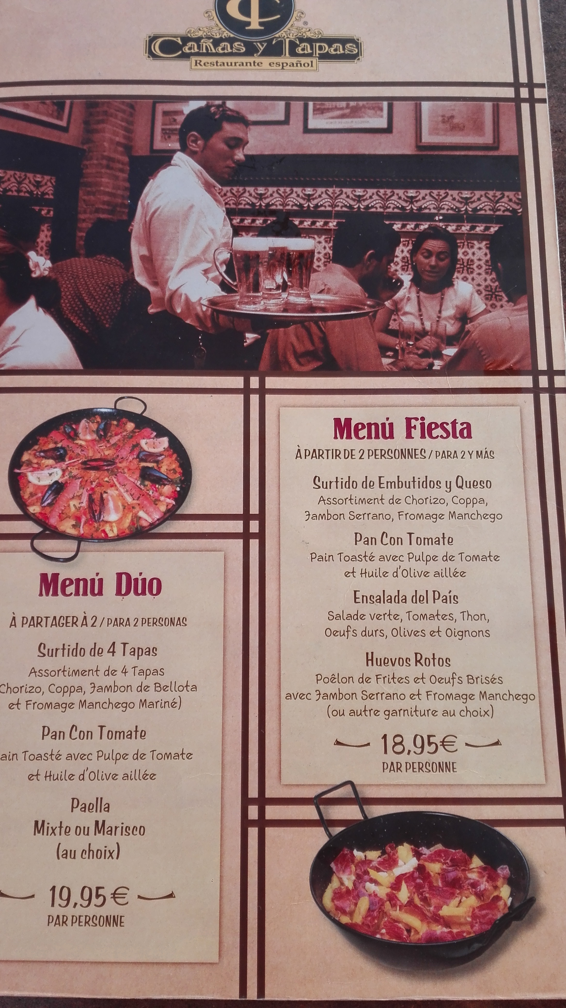 Accueil et installation à la table ok Prise de commande beaucoup trop longue . Sangria pas fraîche malgré le petit glaçon dans le verre . Le CACHAPO ,escalope de veau ,trop cuit , frites froides!! Le CHERSTORRA, les petites saucisses espagnoles , beaucoup trop salé . Je l’ai signalé à la serveuse qu’il l’a pris à la légère!! LES PATATAS BRAVAS , ce ne sont pas des PDT en dés mais ce sont des POTATOS. Nous avons été déçus !