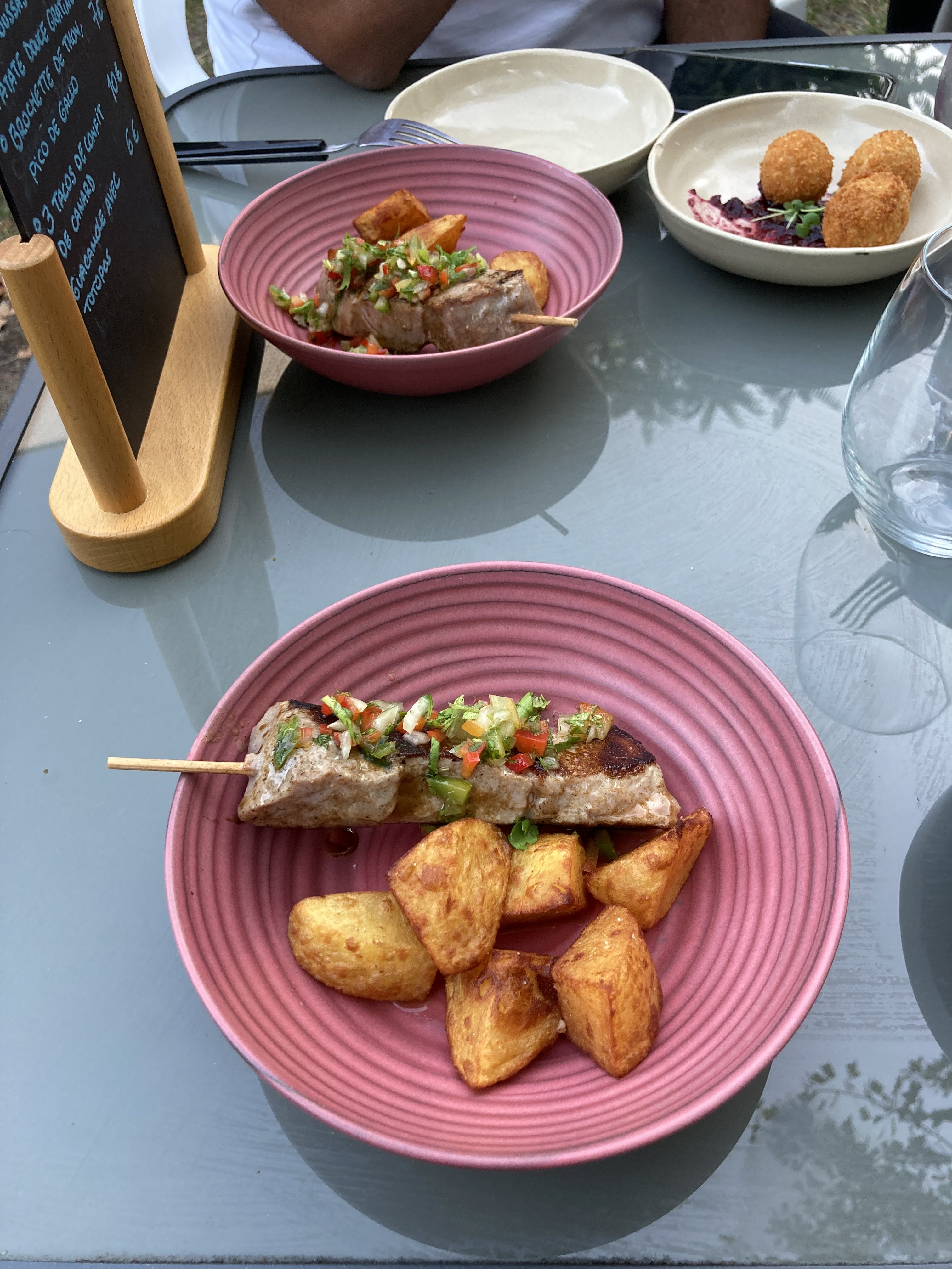 Super endroit ! Soirée stand up du jeudi 31 août avec de superbes plats à partager ! La brochette de thon 🤌🏻🤌🏻🤌🏻