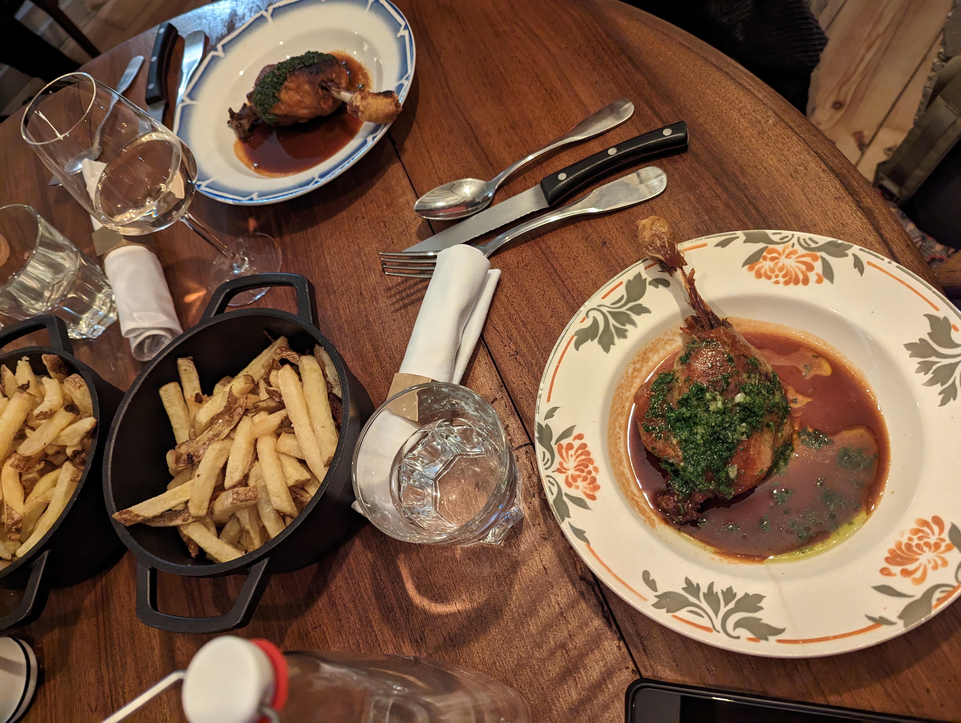 Deux dîners qui se sont merveilleusement passés, les 1er pour lequel nous avons partagé les entrées, et enchaîné sur l’épaule d’agneau, et deux côtes de bœuf à partager: un sans faute! Nous avons également testé le poisson à partager, qualité et cuisson au rdv. La carte des vins est bien composée, et les trous sont de bonnes découvertes avec des Maison spiritueux de qualité. Le tout pour un budget adapté. À très bientôt 😃
