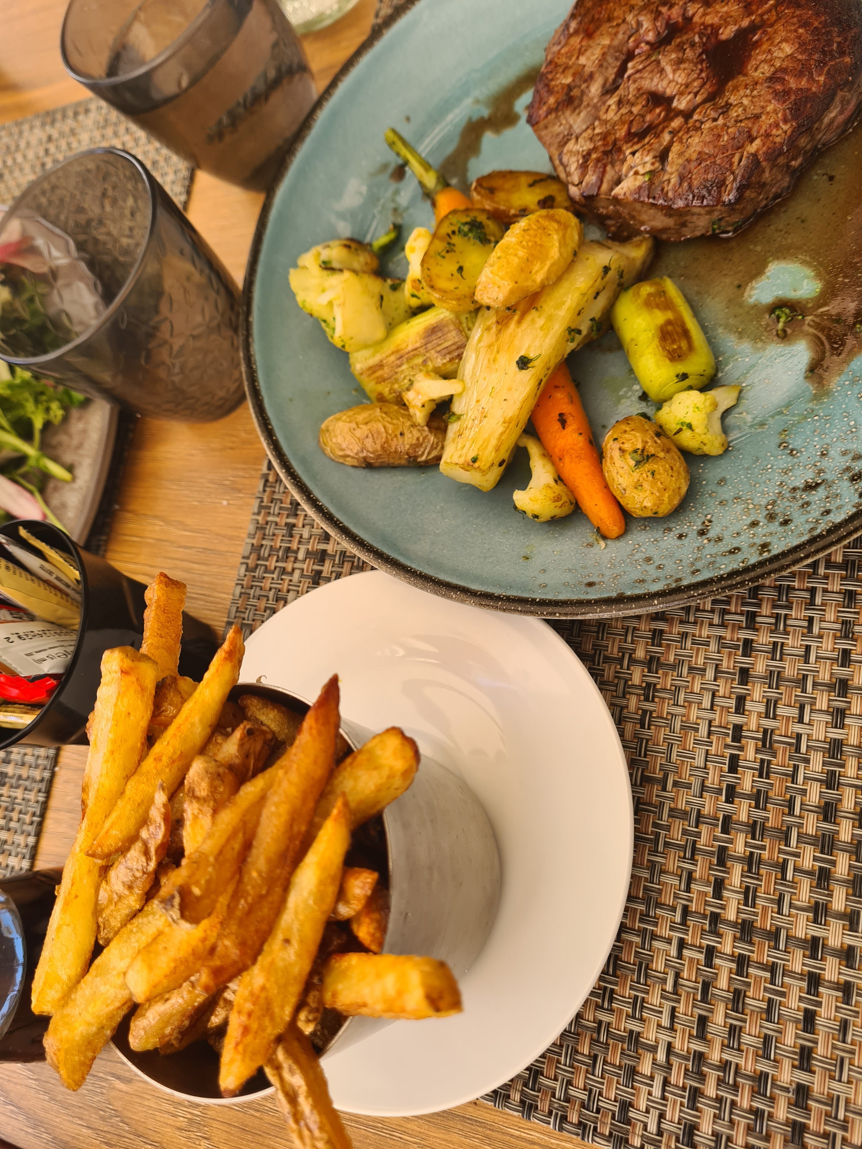 L'accueil et le service était très bien !!! par contre..... 24 euros pour une salade César (en sachet ) sans sauce avec 2 filets panés pleins d'eau, sans goût, 3 tomates cerises et 4 copeaux de parmesan et un burger ..... sec sans sauce également avec de la salade posée dans l'assiette histoire de la remplir... 24 euros aussi😳. Il n'y a que les frites qui étaient bonnes mais bon 60 euros pour 2 (ah oui 6 euros les boissons coca et perrier....) on aurait eu meilleur temps d'aller au mc do!!! Alors peut-être que les plats plus chers sont meilleurs je ne sais pas, mais dans tous les cas pour de tels prix, que l'on commande une salade ou un tartare, la qualité doit être au moins là !! Je ne recommande pas, passez votre chemin!