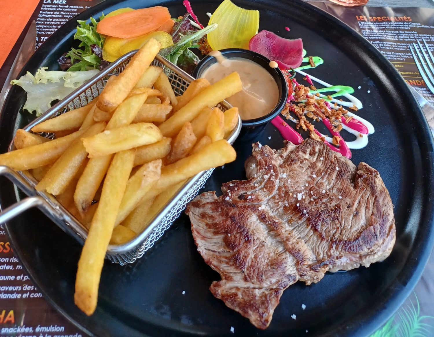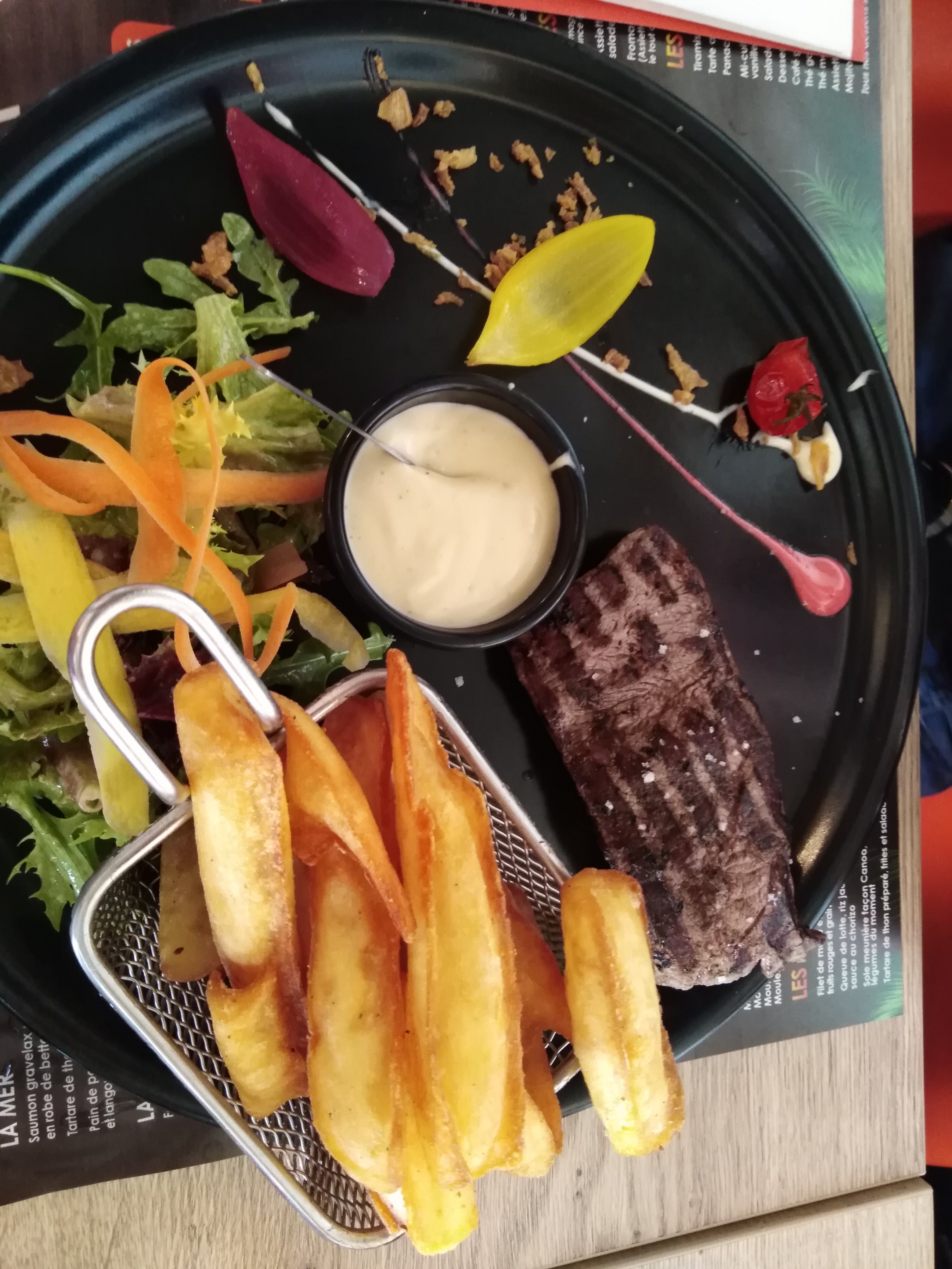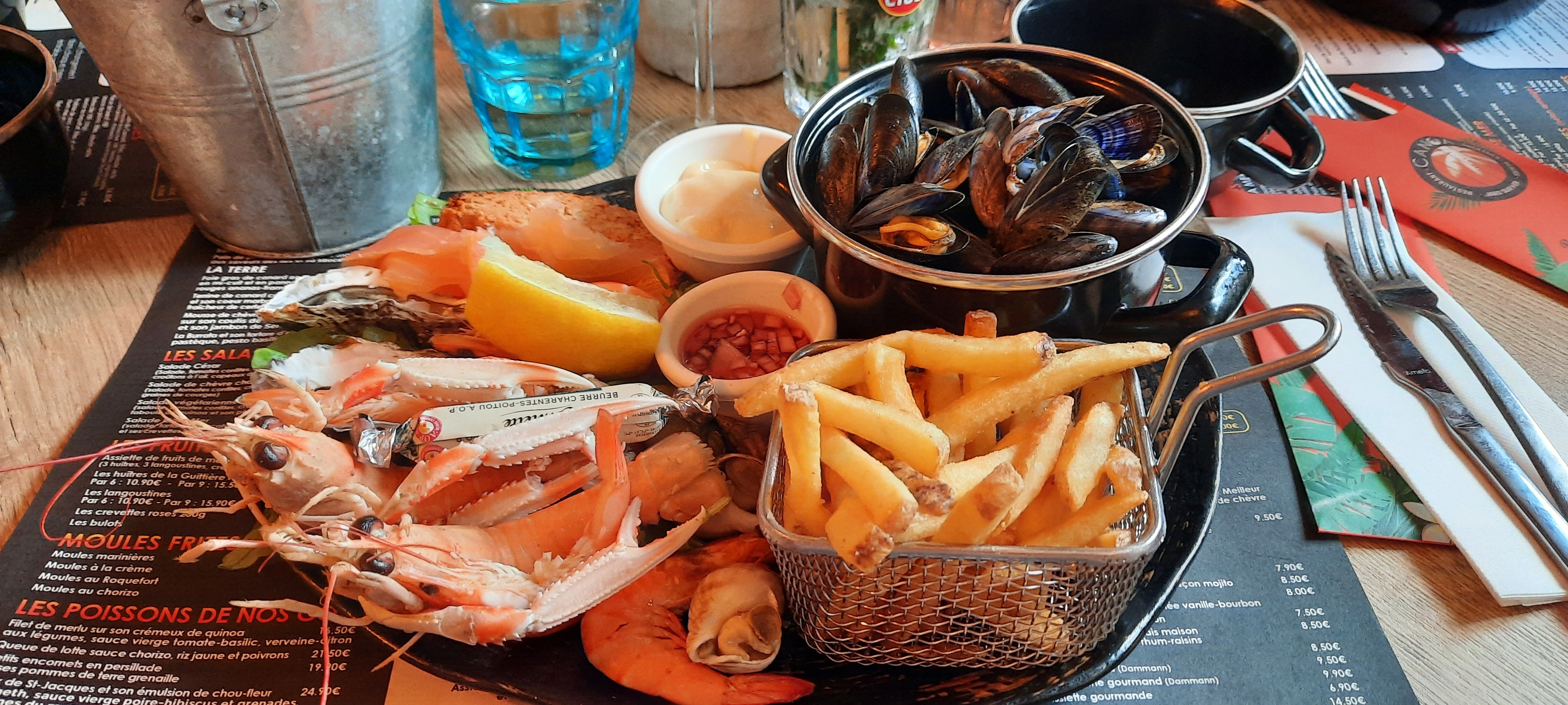 Cadre et service très agréable. Une légère cuisson supplémentaire des moules aurait été appréciée cependant tres bon assaisonnement. La salade végétarienne est très bonne. Personnel très agréable et accueillant. Service rapide !