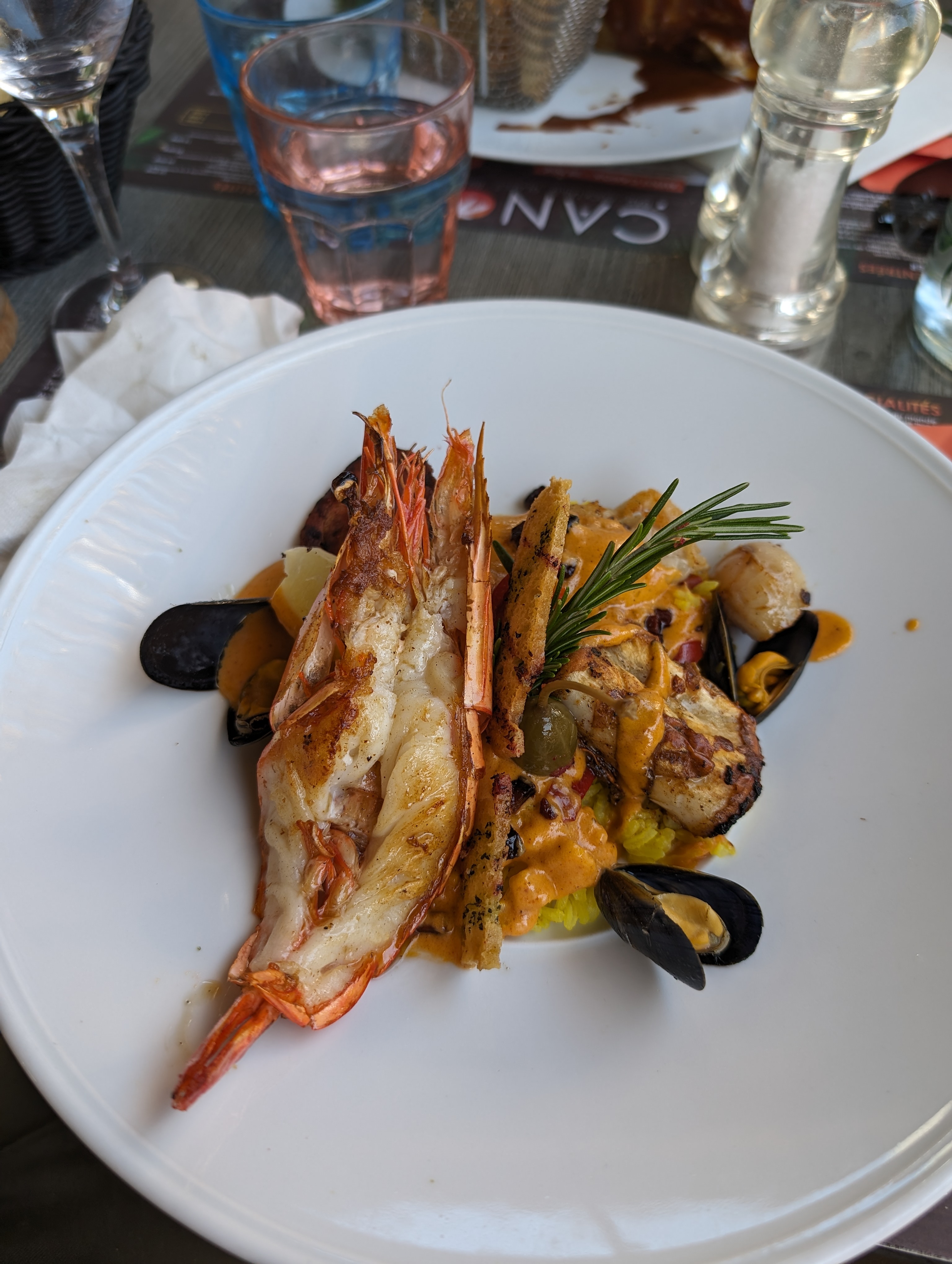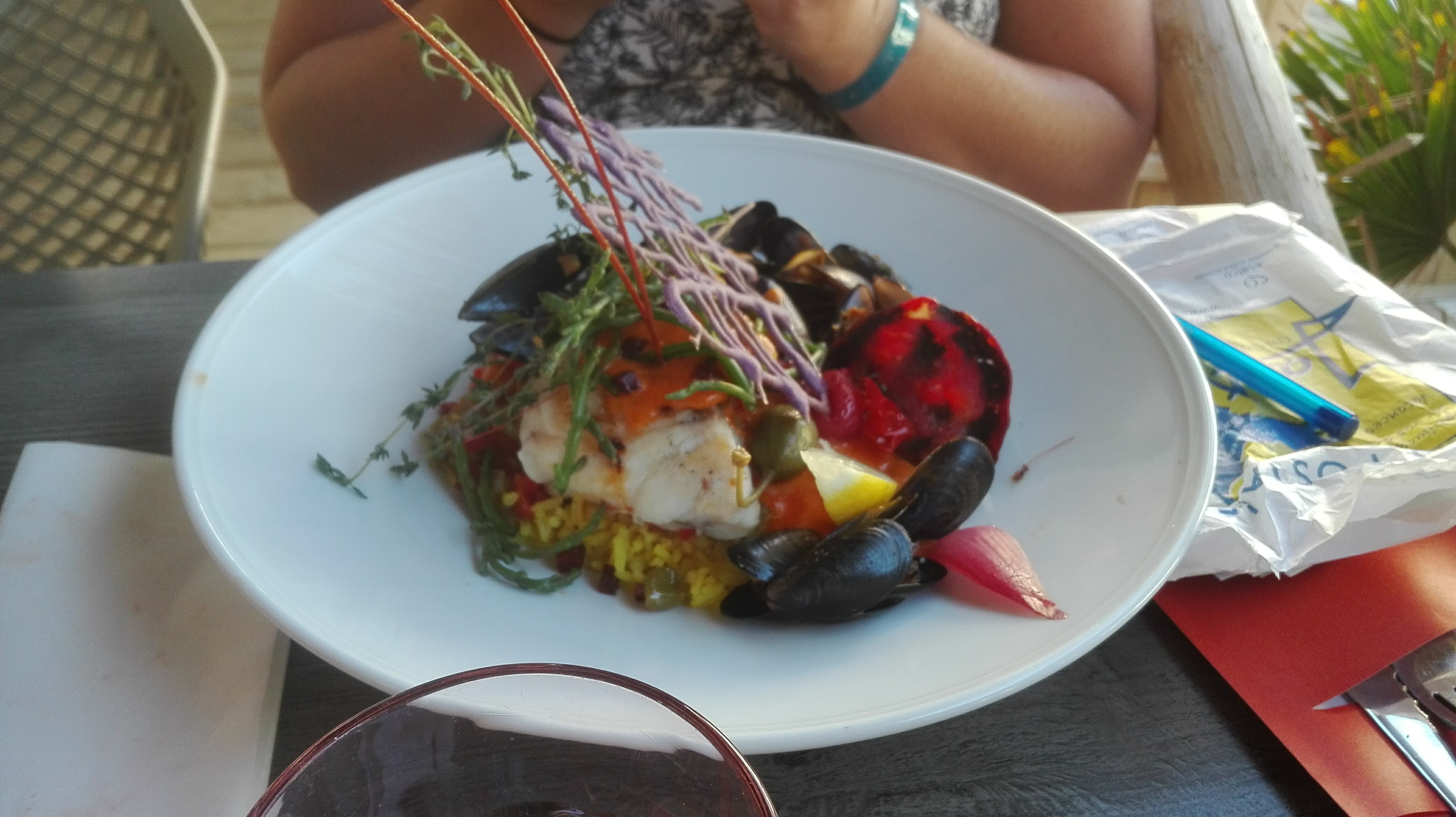 Très bons repas. Cocktails bien préparés et jolis. Baby moules marinières adorées par nos enfants. Très bonne idée ! Les plats étaient délicieux (paella).