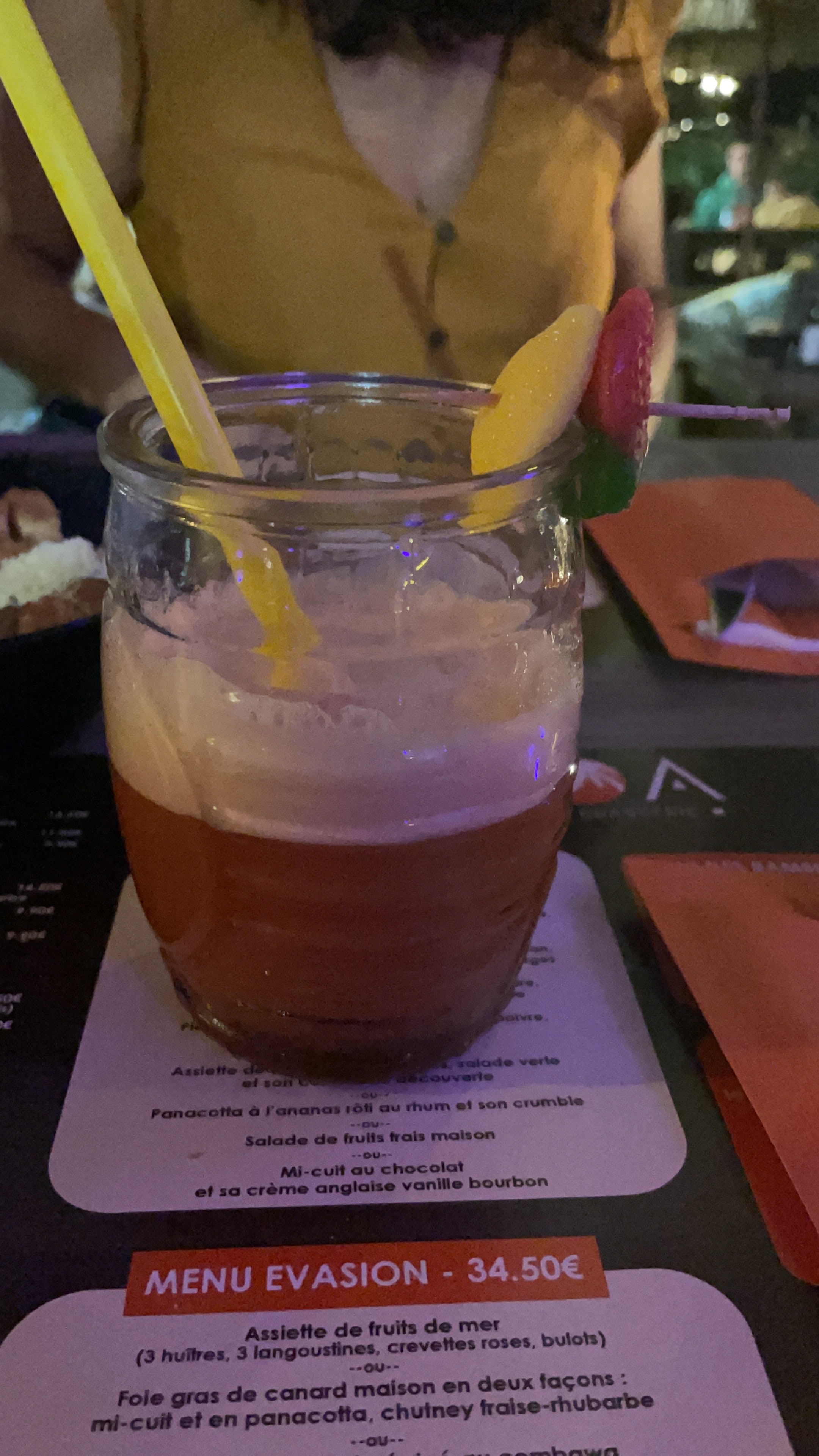 accueil sympa, ambiance des îles (déco, musique). Une table en terrasse à l’ombre en ce dimanche de la St Jean. Service à l’écoute des clients. Des attentions telle la serviette tiède après l’assiette de fruit de mer. 2 menus évasion à 31,50 € dont le plat du jour, barbue bien servie, plat copieux, que l’on ne trouve pas chez les concurrents qui se contentent de saumon de Norvège commun, de merlu ou de cabillaud ! Un très bon point pour ce choix de poisson 😉 (comme le bar). c'est avec plaisir que nous reviendrons. Un des meilleurs Rapport qualité prix de la côte avec un grand choix de plats et vin à prix corrects. A conseiller