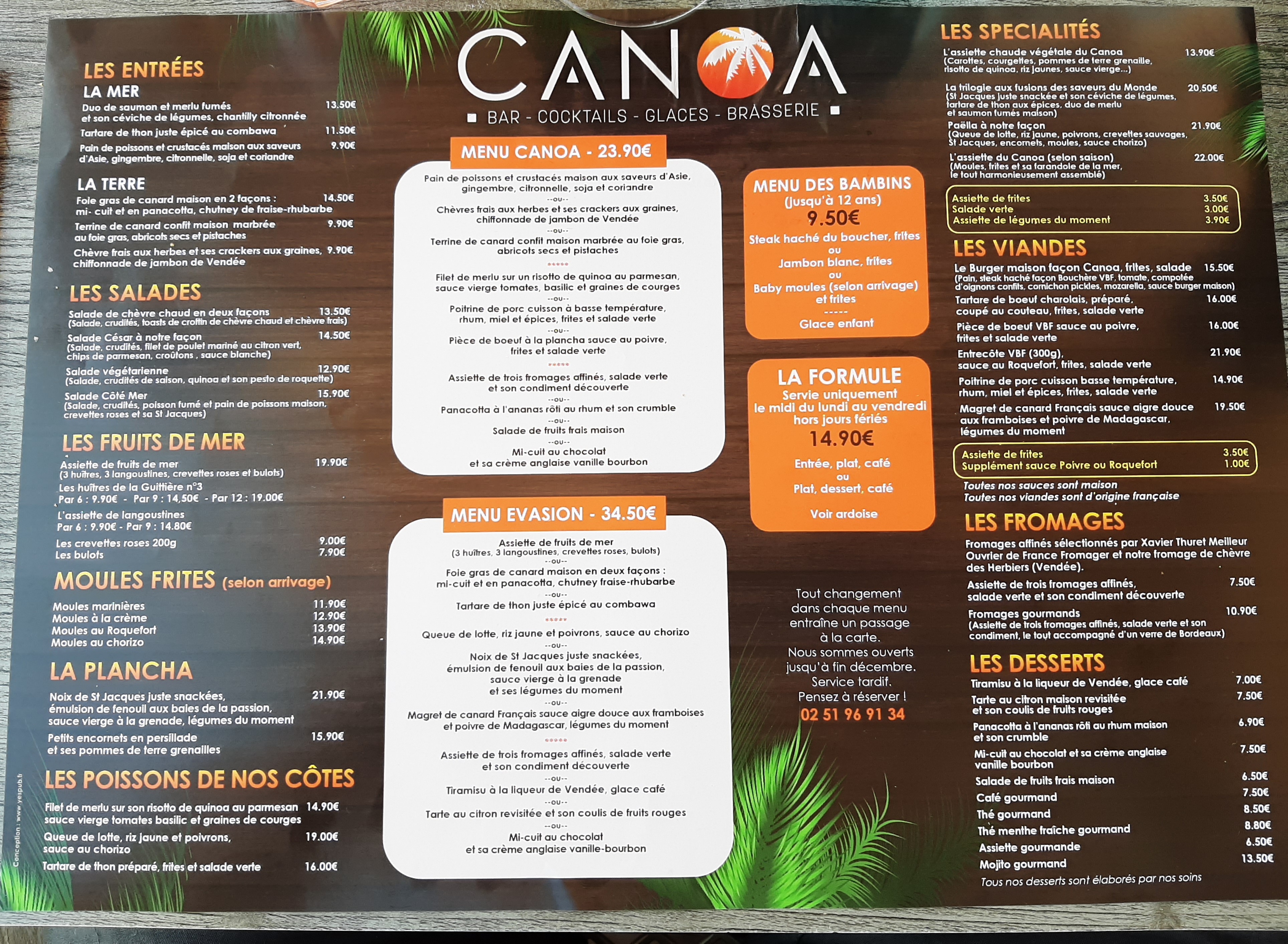 Rien a dire tout est PARFAIT 😉 accueil ambiance service cuisine ….. Nous reviendrons !!!! Les plats façon Canoa le top alors encore merci 😀
