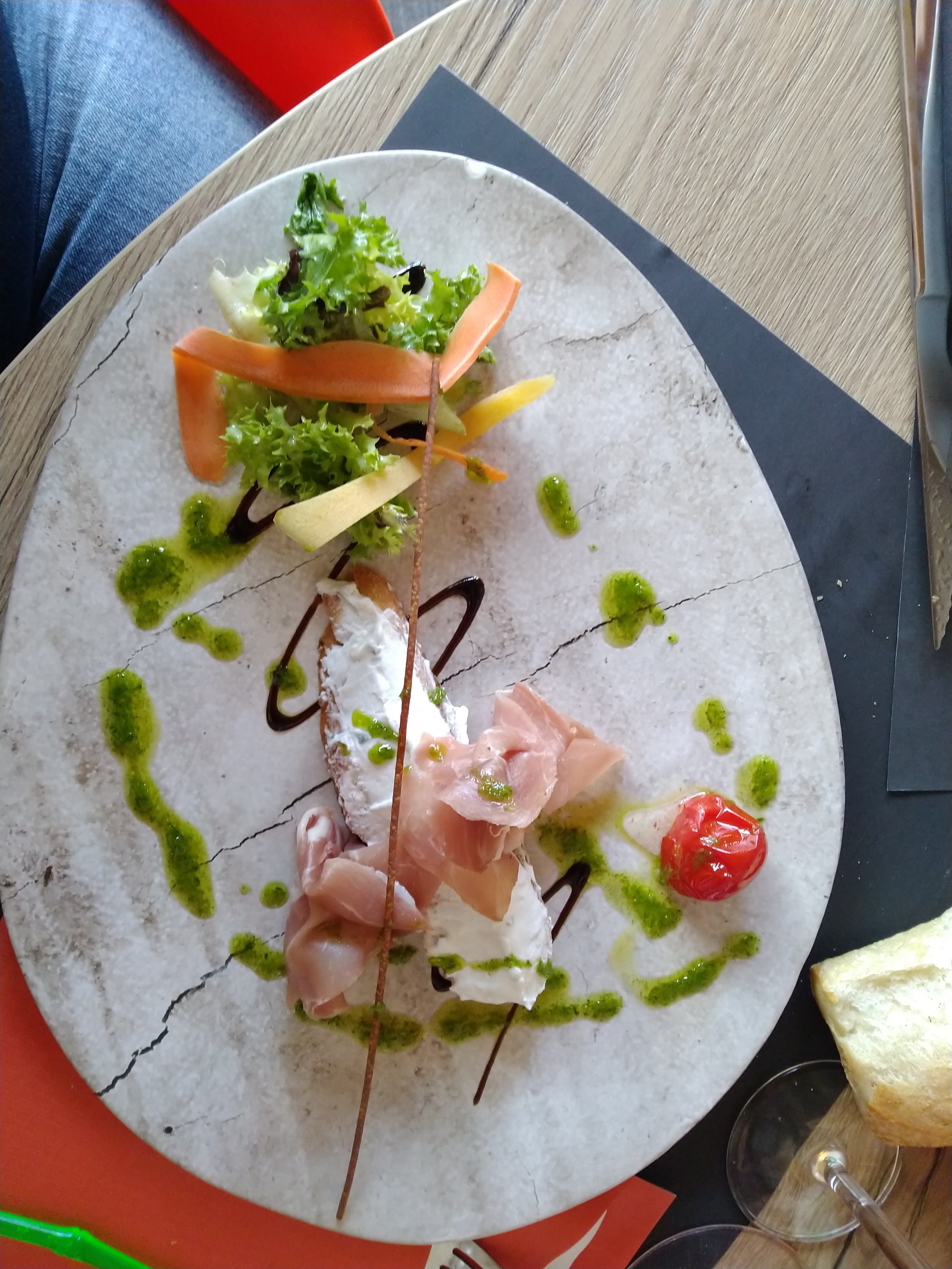 Cadre sympathique, serveuse un peu sec, assiettes très jolies. Un peu déçu de certains plats par rapport aux tarifs. Très belles et bonnes entrées. La poitrine de porc était très très grasse, seulement 2 bouchés de viande. Les légumes du moment manquaient de saveur, et pas seulement de sel. Le gâteau au chocolat est bon mais pas extra, la chantilly écœurante et n'est pas aussi bonne que chez le patissiers. Mais sur notre départ, homme tipé très sympathique.