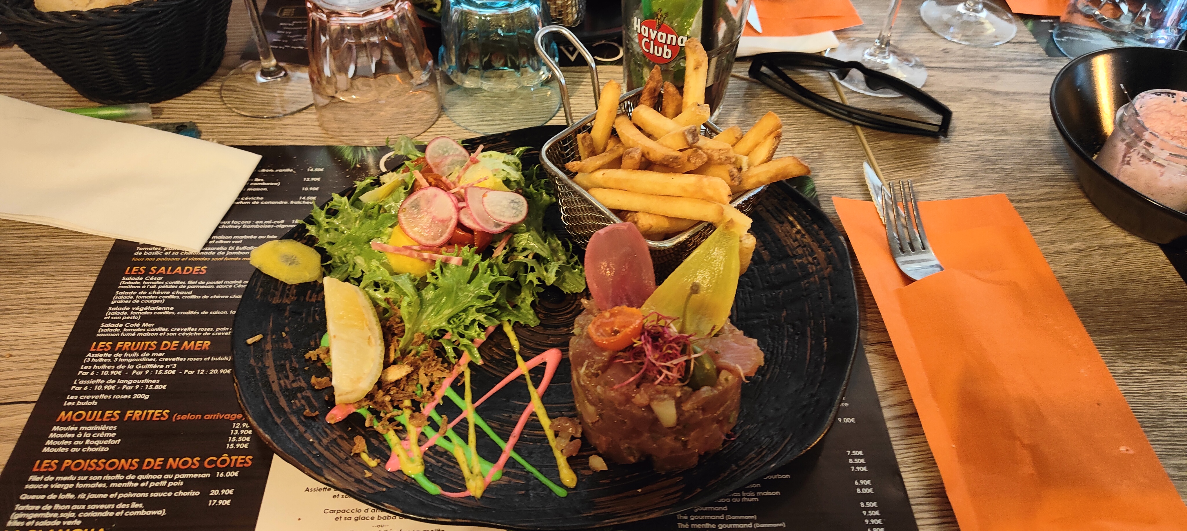 Nous avons été très bien accueilli dans ce restaurant, tous les plats étaient parfait et les cocktails délicieux en particulier leur mojito, les serveurs sont sympathique et très arrangeant et le service rapide, bon rapport qualité prix, Je recommande franchement.