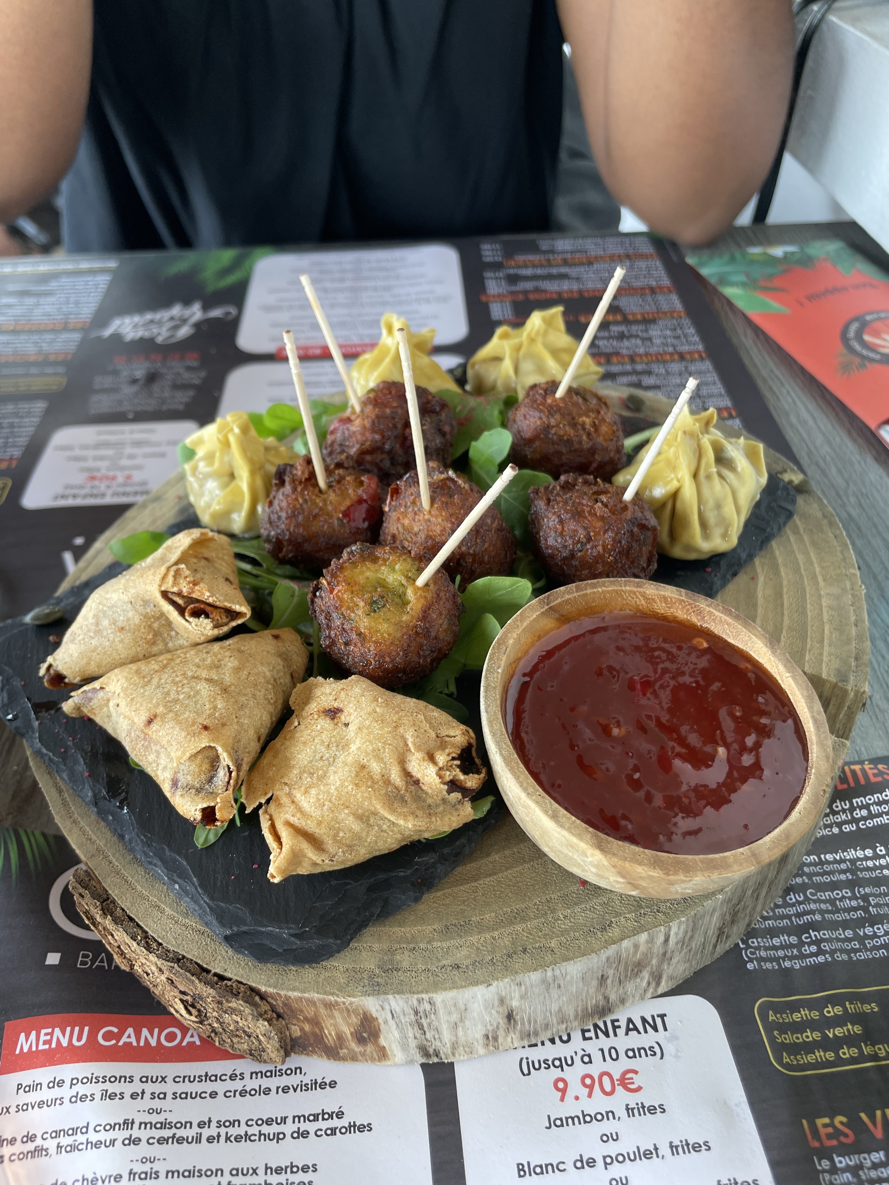 Nous sommes venus un vendredi soir. Endroit agréable serveurs et serveuses très chaleureux et accueillants. Nous avons pris le menu canoa très bien présenté, copieux et très bon.