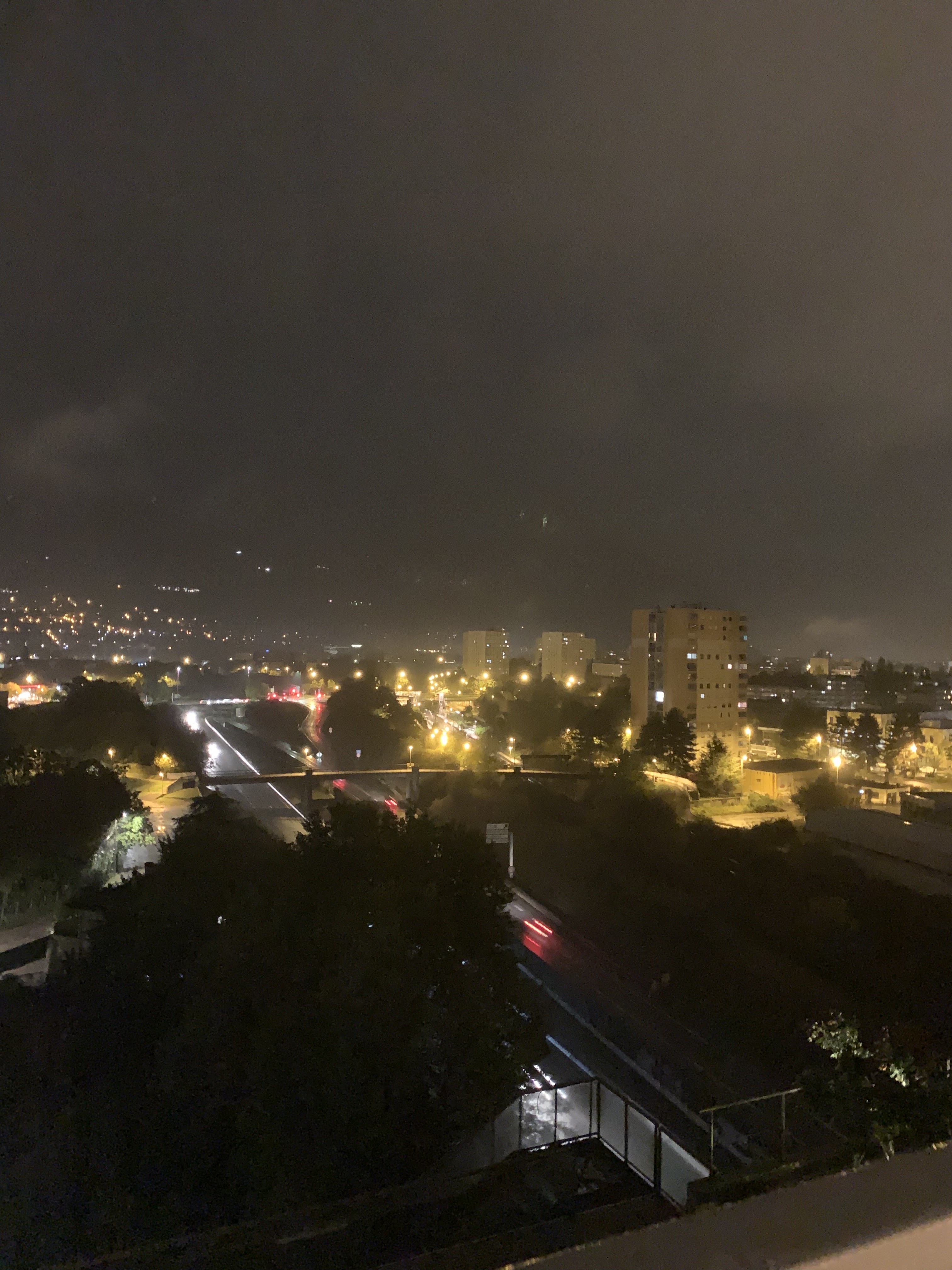 Dîner avec les collègues, contraste cité/rooftop . Terrasse très sympa et spacieuse avec vue sur les montagnes. Personnel agréable et serviable. Repas correct mais pas exceptionnel .