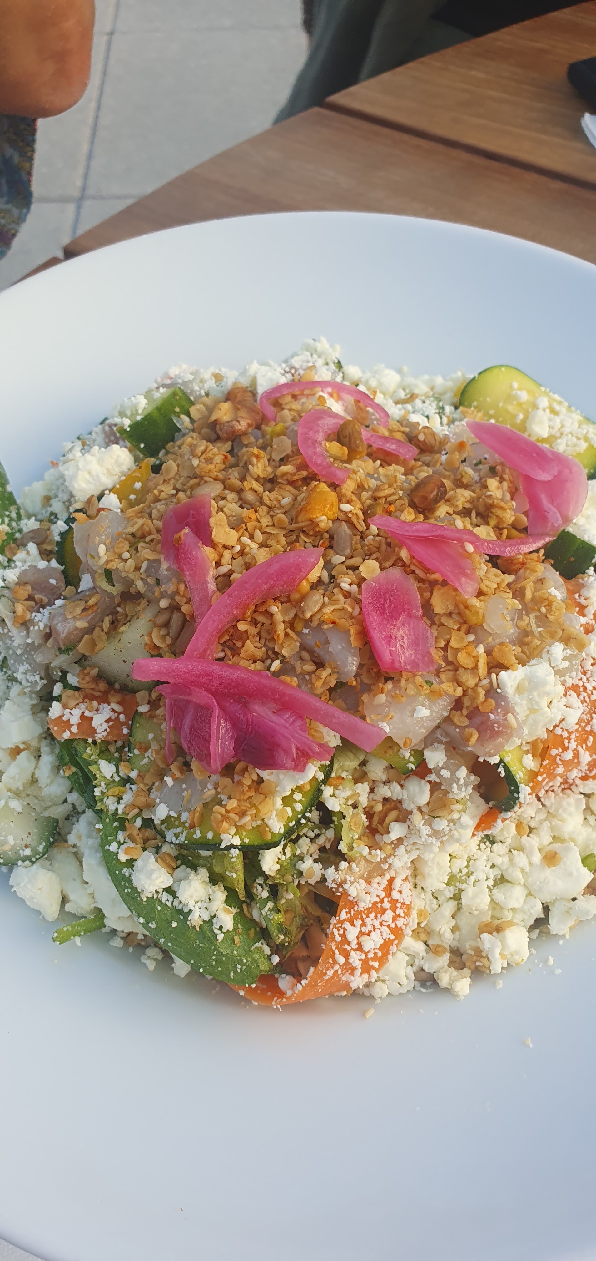 Assortiment de mezze délicieux, j'ai découvert des spécialités que je ne connaissais pas. Le lieu est agréable, j'ai hâte de revenir en été profiter de la terrasse
