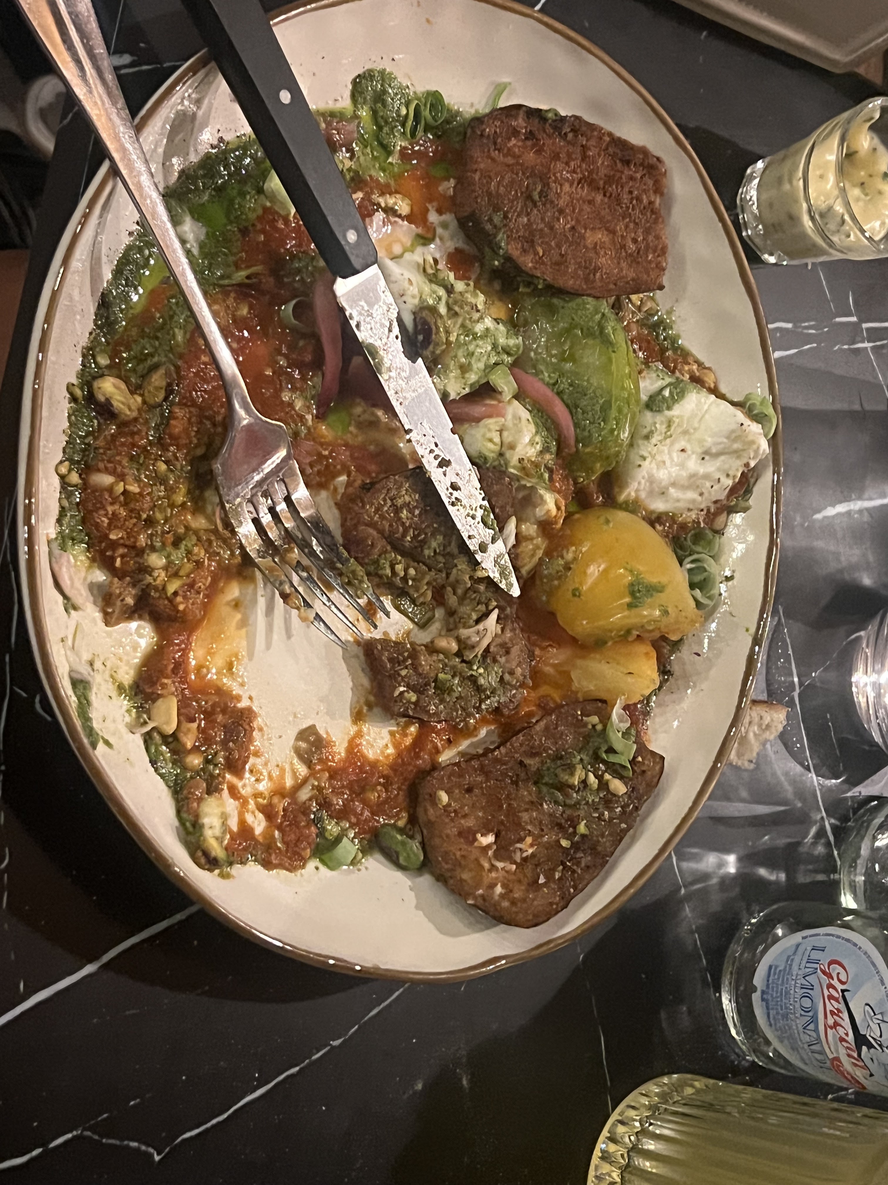Plats succulents très originaux. Cocktails divins. Déco et ambiance au top. Service impeccable, serveurs au top acceuillants et gentils. Un petit peu long le service c'est normal il y avait bcp de monde et j'ai l'impression qu'ils n'étaient pas assez nombreux, mais ils restent très pro et disponibles malgré le dur travail. PS: j'ai vu une photo du mezze que j'ai prit il y avait 5 cromescis nous en avons eu que 4 😭😭😭. Les plats sont tellement bons on en voudrait un peu plus dans l'assiette ☺️