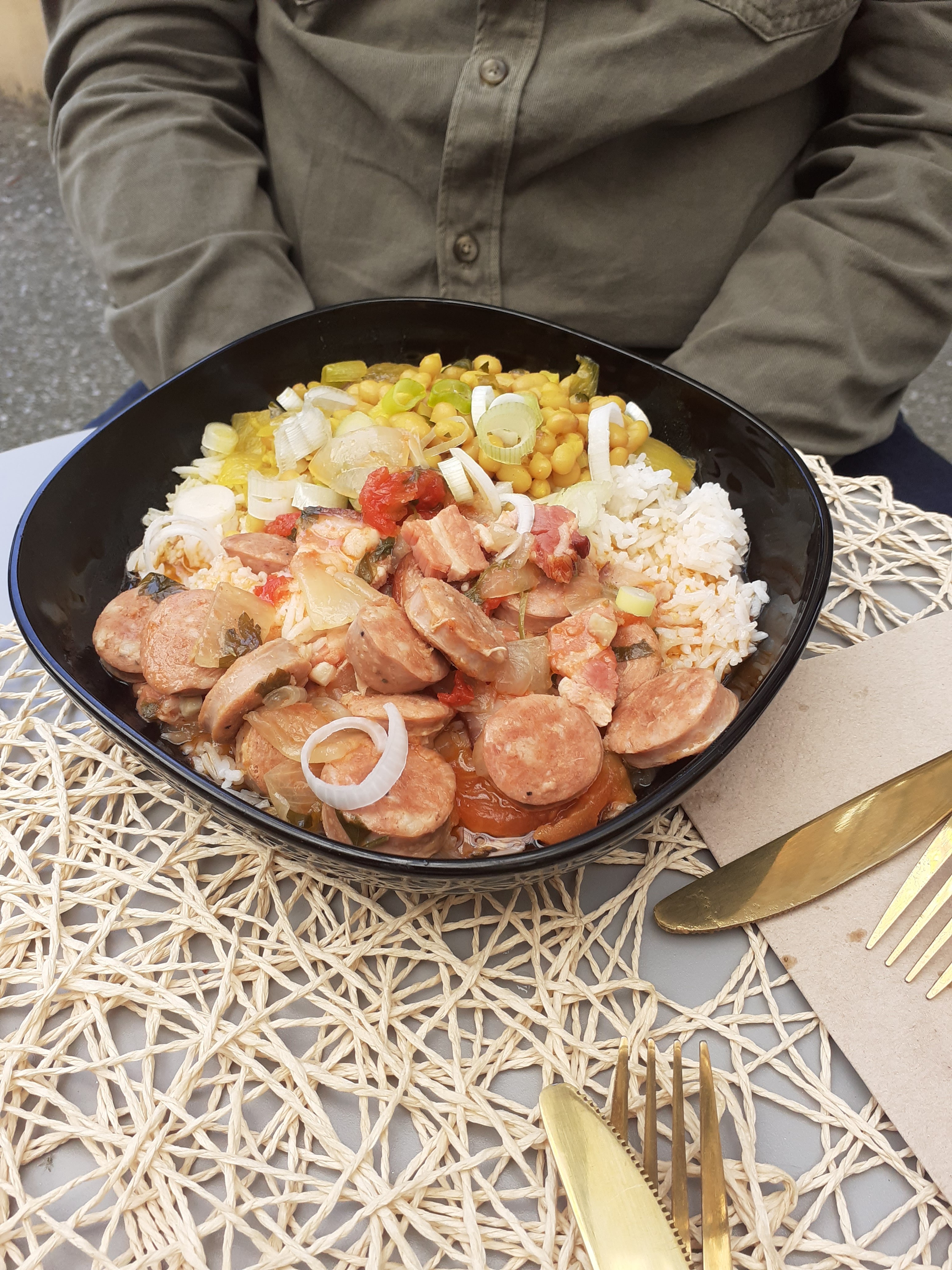 Une explosion de saveurs Rougail saucisses maison tellement bon ! Avec touche perso de la maison incroyable Allez y On mange rarement aussi bien ! Pas beaucoup de places donc mangés sur la jetée à emporter face au lac Merci 🤩 notre road trip du jour commence super bien On a croisé que des gens sympathiques pour ne rien gâcher On reviendra !!!