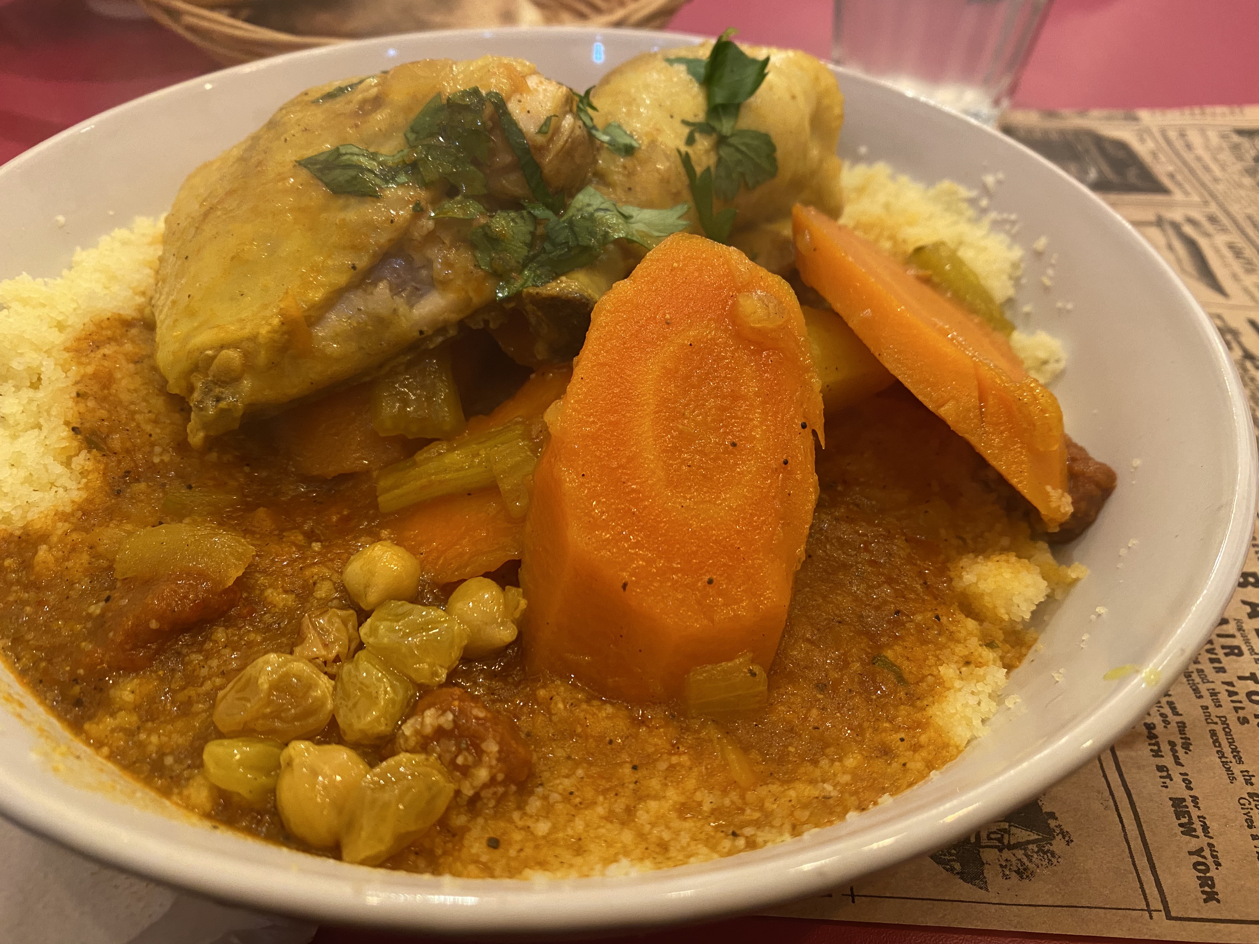 Très bon tajine (le coucous a l'air bien également), part plutôt copieuse, service sympathique. Bon rapport qualité/prix. Je recommande.