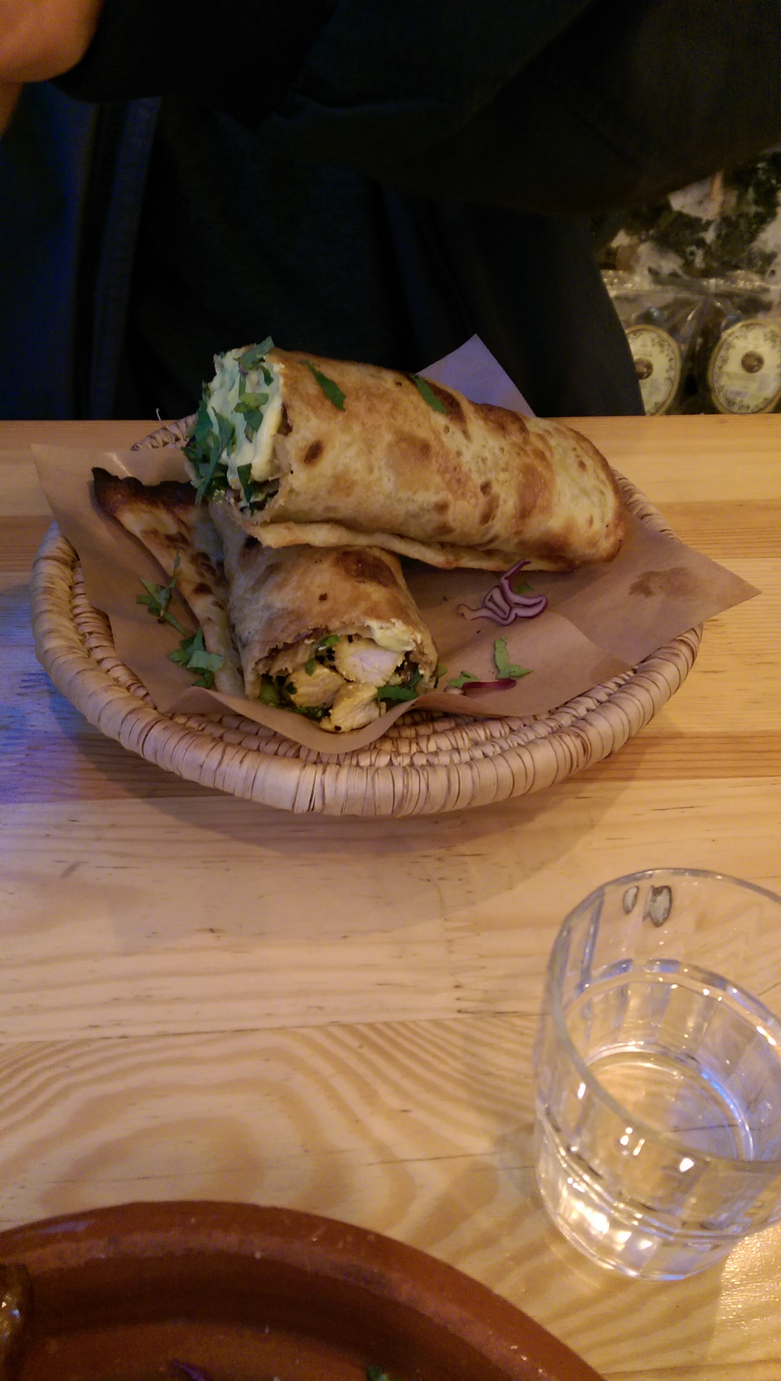 - Accueil et service au top J'ai pris un Kazdal poulet citron confit, je suis assez mitigée : - Le Msemen ( crêpe ) est super bonne et croustillante. - La garniture à l'intérieur très fraiche avec les concombre ect. - Mais assez sec dans l'ensemble, j'ai pas aimé le poulet beaucoup trop sec à mon goût, pas assez mariné je pense. Le kazdal manquait de sauce, j'ai vraiment trouvé ça sec, bourratif. À voir avec les autres viandes ( kefta, agneau confit... ) À tester au moins une fois, concept assez original :D
