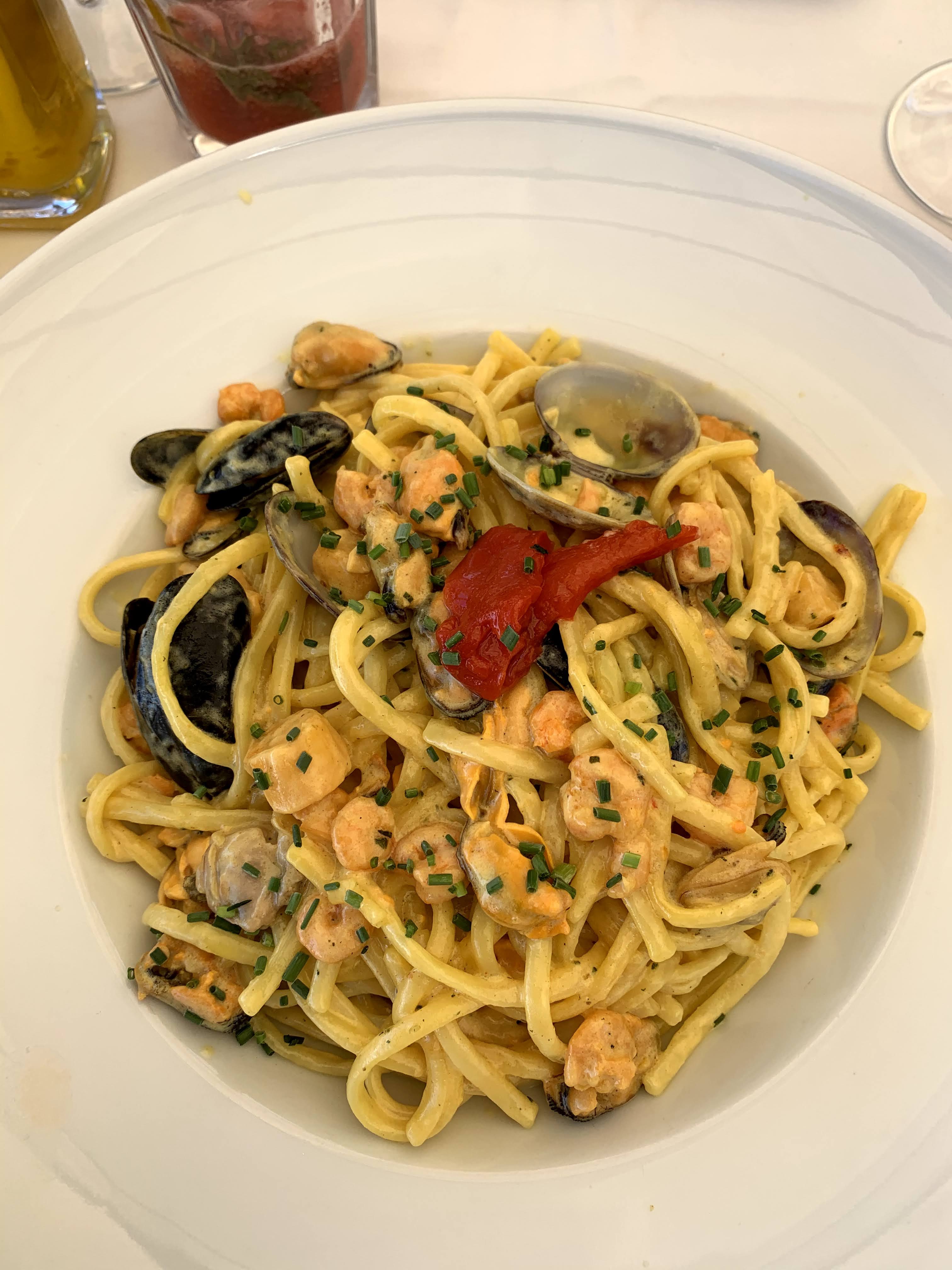 Petit resto à l'improviste aujourd'hui, nous atterrissons au Cap21 , les entrées étaient top (salade de poulpe et nems), le poulpe fondant, la sauce citronnée et persillade incroyable. Le tartare de boeuf bien frais et les lenguinis aux fruits de mer copieux et savoureux. Un service irréprochable et un personnel très sympathique. Mention spécial au barman et son cocktail sans alcool improvisé qui était délicieux ! On reviendra avec plaisir , rapport qualité prix très chouette pour St Tropez :)