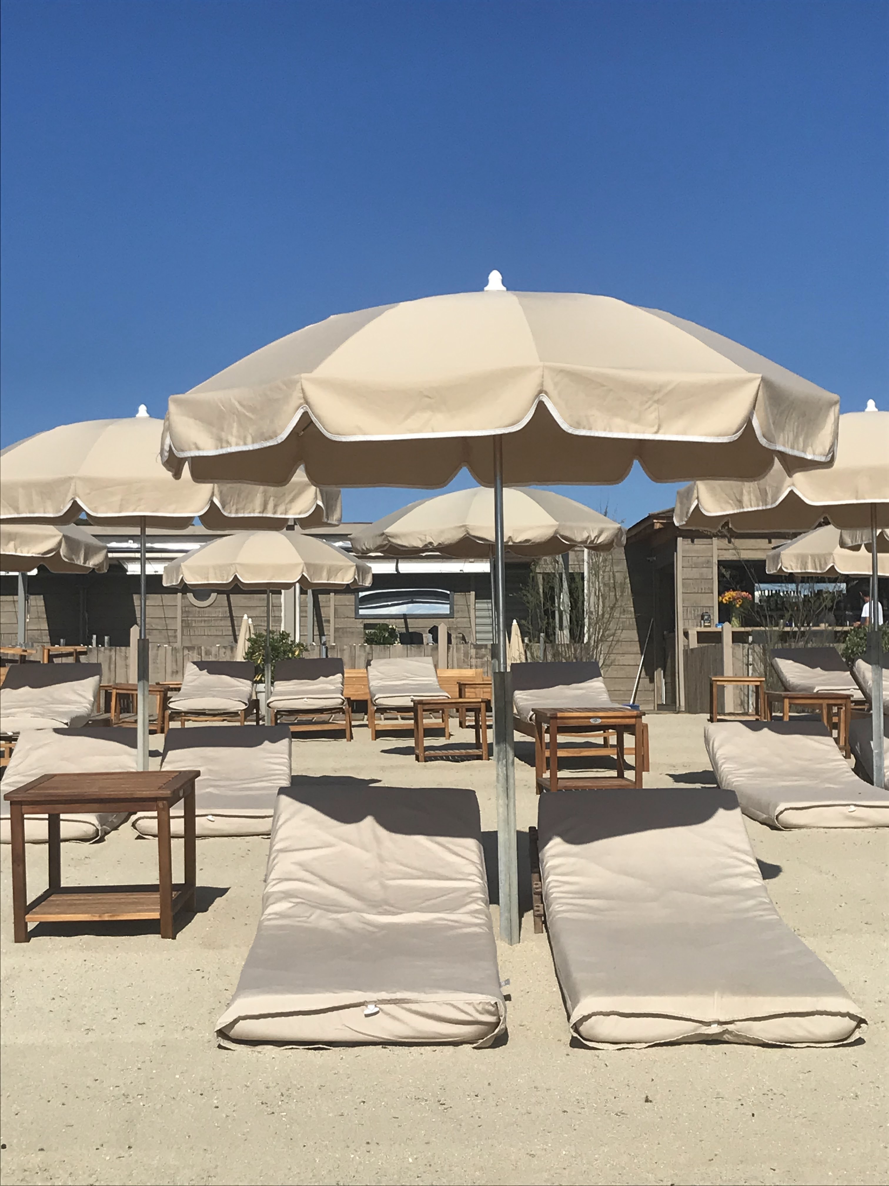 C'est un club de plage vraiment sympa et si vous appelez un jour avant, vous pourrez probablement réserver quelques chaises de plage et un parasol. Il a tout ce dont vous avez besoin, une douche, des serviettes, un restaurant et une boutique qui propose un mannequin vous montrant différentes collections de robes pendant que vous déjeunez. Idée plutôt sympa, on peut nager, manger et faire du shopping en même temps 😎.