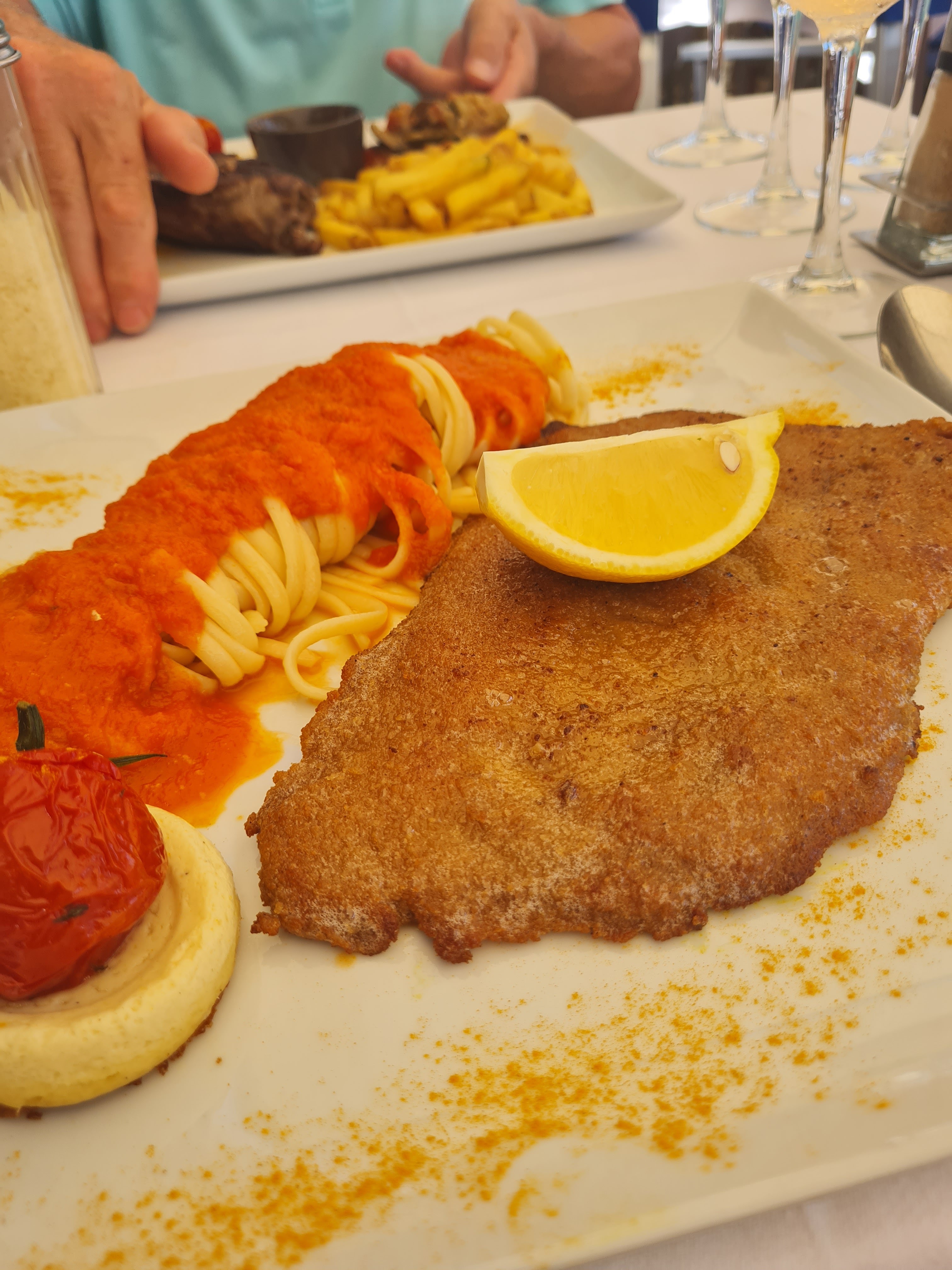 Nous nous sommes arrêtés pour manger ici et c'était un bon choix. La cuisine est ouverte tous les jours jusqu'à 16h30 et vous propose une large gamme de plats parmi lesquels vous pouvez choisir. Nous avons pris les linguine aux fruits de mer et le poisson du jour et ils étaient très bien cuits. De plus, les cocktails alcoolisés sont bons, malheureusement pas une gamme variée de cocktails non alcoolisés. J'apprécierais d'élargir leur carte de boissons, mais néanmoins un excellent service.