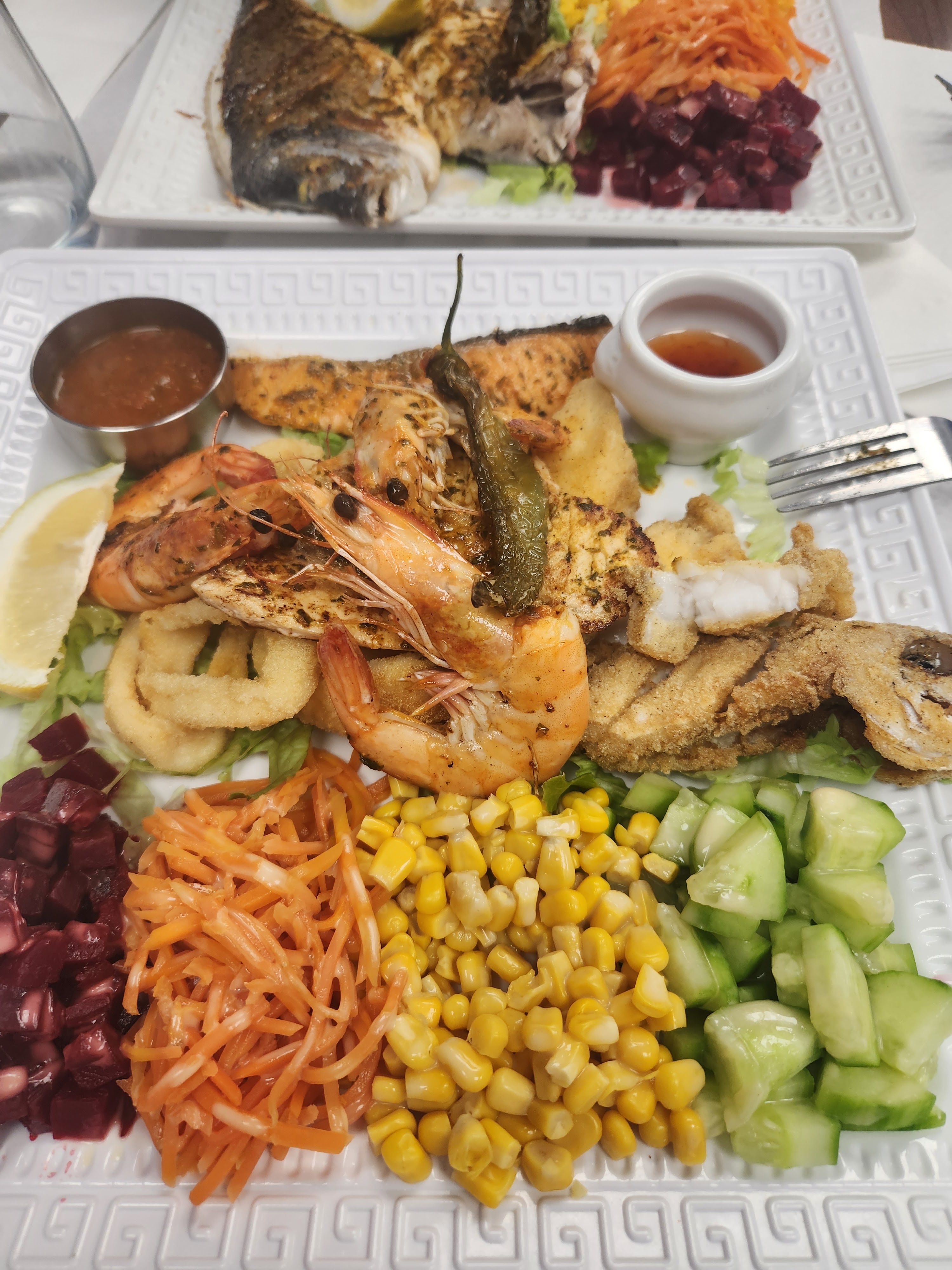 Nous recommandons vivement ce restaurant. L’accueil y est très chaleureux, le patron est très aimable. Nous avons mangé en famille. Tout le monde a trouvé un plat qui lui convenait, les enfants ont pris des crevettes, des frites et de la Touktchouka et ils se sont régalés. L’assiette mixte était délicieuse et copieuse.