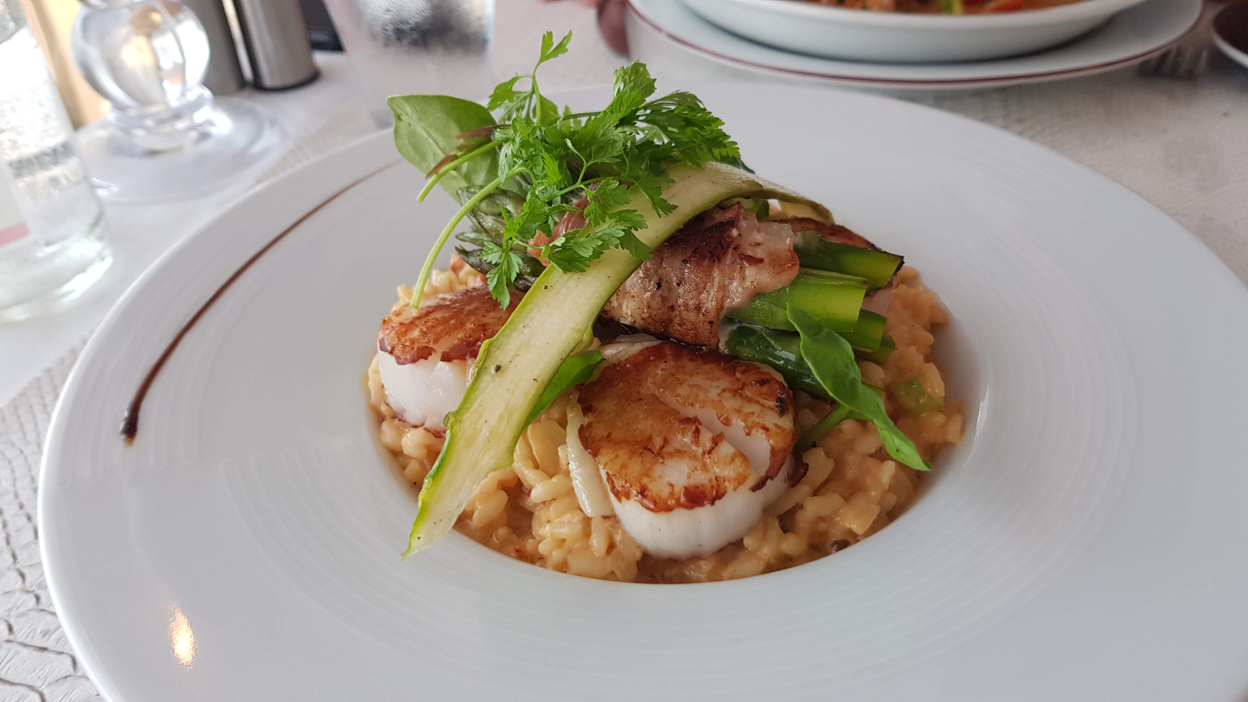 Site magnifique,serveur professionnel et agréable, par contre la piece de beuf à 47 eu est arrivée tres cuite et presque froide,assez sèche, sans la moindre sauce, accompagnée de pommes de terre et légumes. Les autres plats terre et mer, morceau de viande excellent,poulpe grillé et petit morceau de Cabillaud bien cuits mais arrivés également tiedes sans sauce,légumes pomme de terre,carotte,OK ,rapport qualité prix decevant par contre tres bel endroit