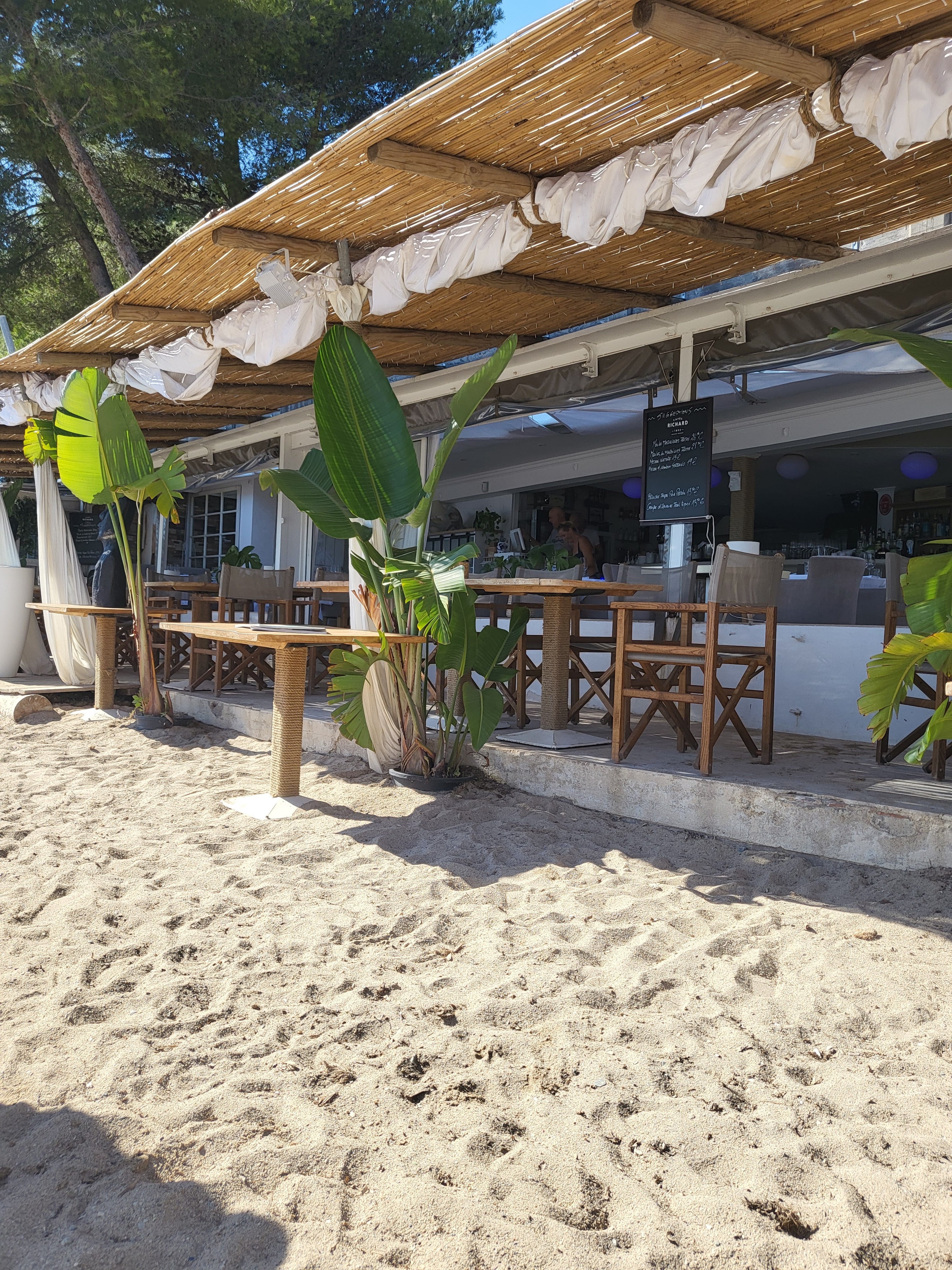 Jolie plage transat confortable douche à disposition on apprécie le calme du lieu déco sympas du resto choix variés cela reste un peu chère mais bien servi très bon et le charme du lieu à un prix si on veut en profiter je conseille. l accueil est effectivement un peu distant qui peut être mal interprète mais ce qui compte C est de profiter d un cadre idyllique avec qualité et les sourires sont la et le service assure je recommande avec plaisir pensez à réserver.. C est mieux