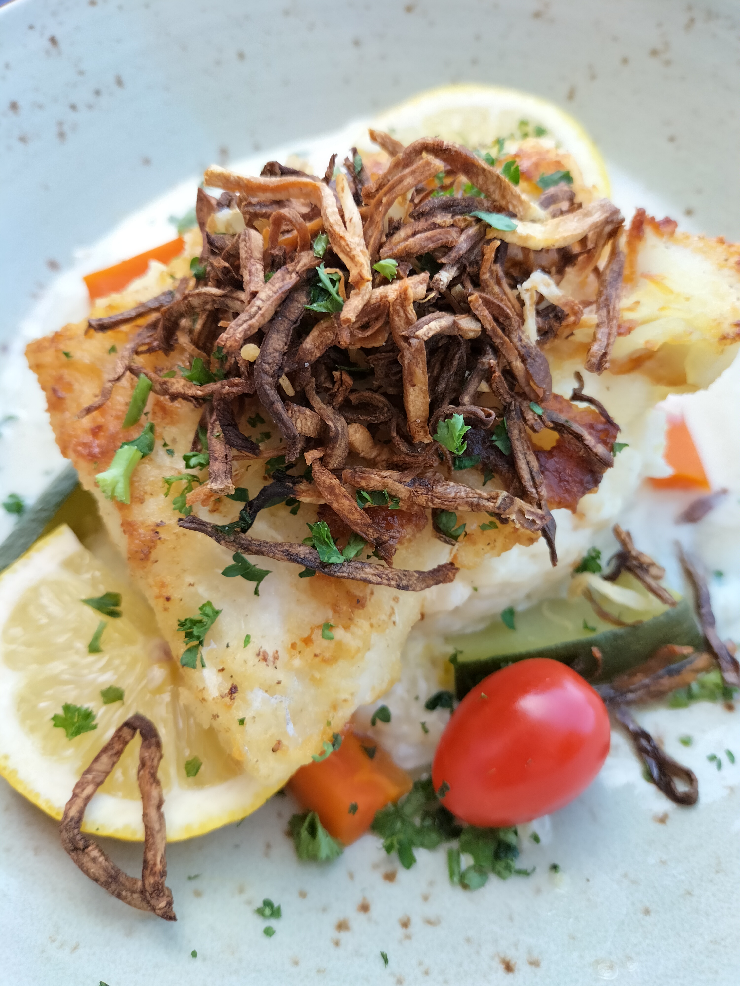 Une excellente table , un plaisir à chaque repas , et ce midi un plat délicieux avec ce filet d' eglefin sur son lit de purée , avec une sauce mousseline . Un vrai régal. Bravo au chef , à Matthieu et à ses équipes pour cette belle table .