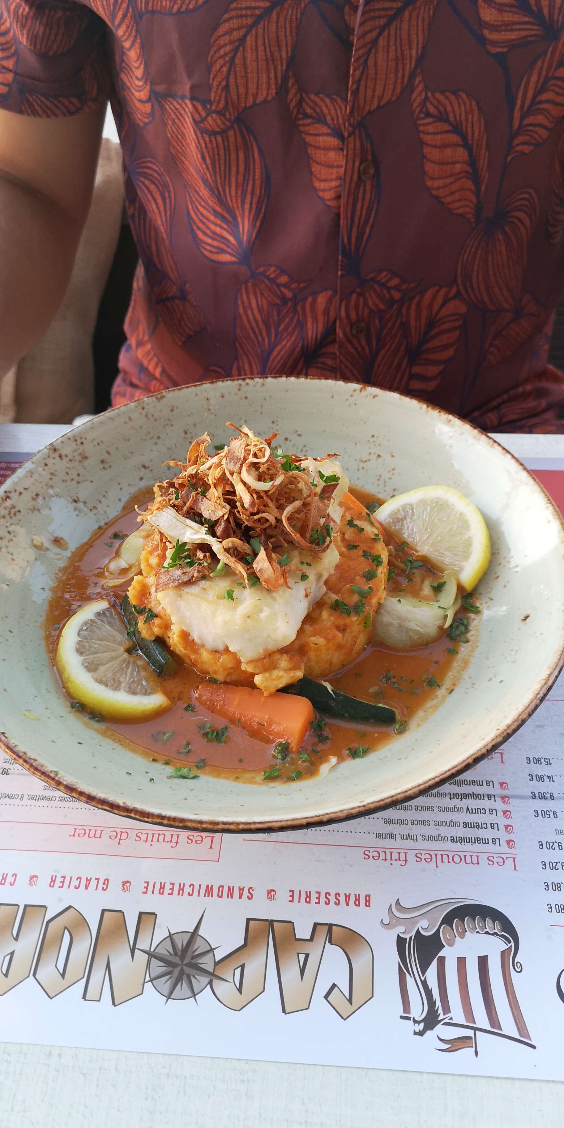 Magnifique expérience au CAP NORD... Nous cherchions un restaurant pour fêter nos 15 ans de mariage, nous nous sommes fiés aux avis et avons étés enchantés. Nous n'avions pas réservé mais très vite, Manu, le serveur efficace et courageux de la terrasse, nous installe à l'abri du vent. Il se met en 4 pour que notre confort soit optimal Nourriture excellente, extra fraiche et copieuse. Service incroyablement rapide compte tenu que l'intérieur était complet et la terrasse, malgré le vent et la fraicheur, bien remplie. Nous avons passé un excellent moment et ne manquerons pas de revenir lors d'un prochain passage. Continuez comme ça, vous êtes au TOP! Bonne saison