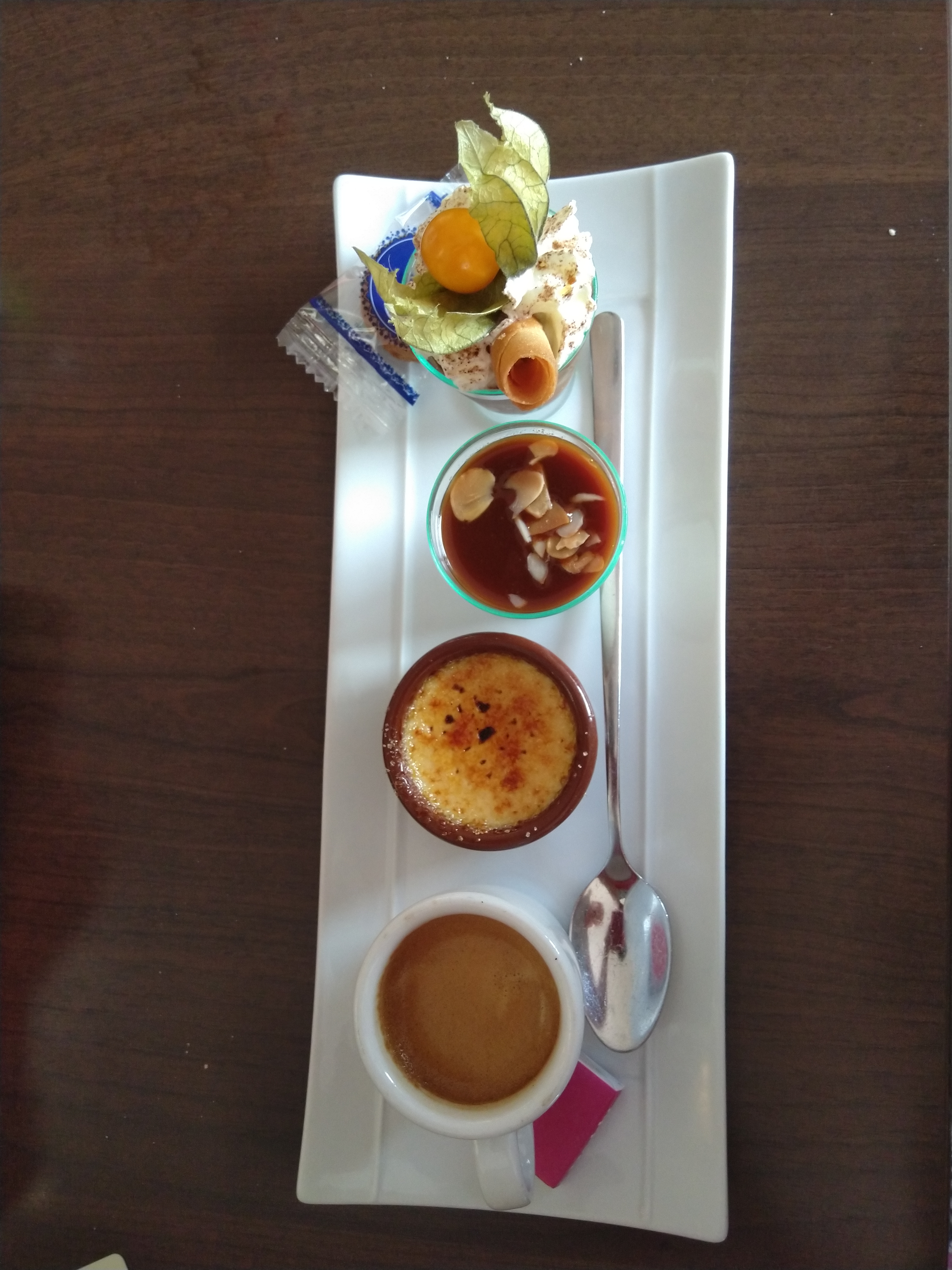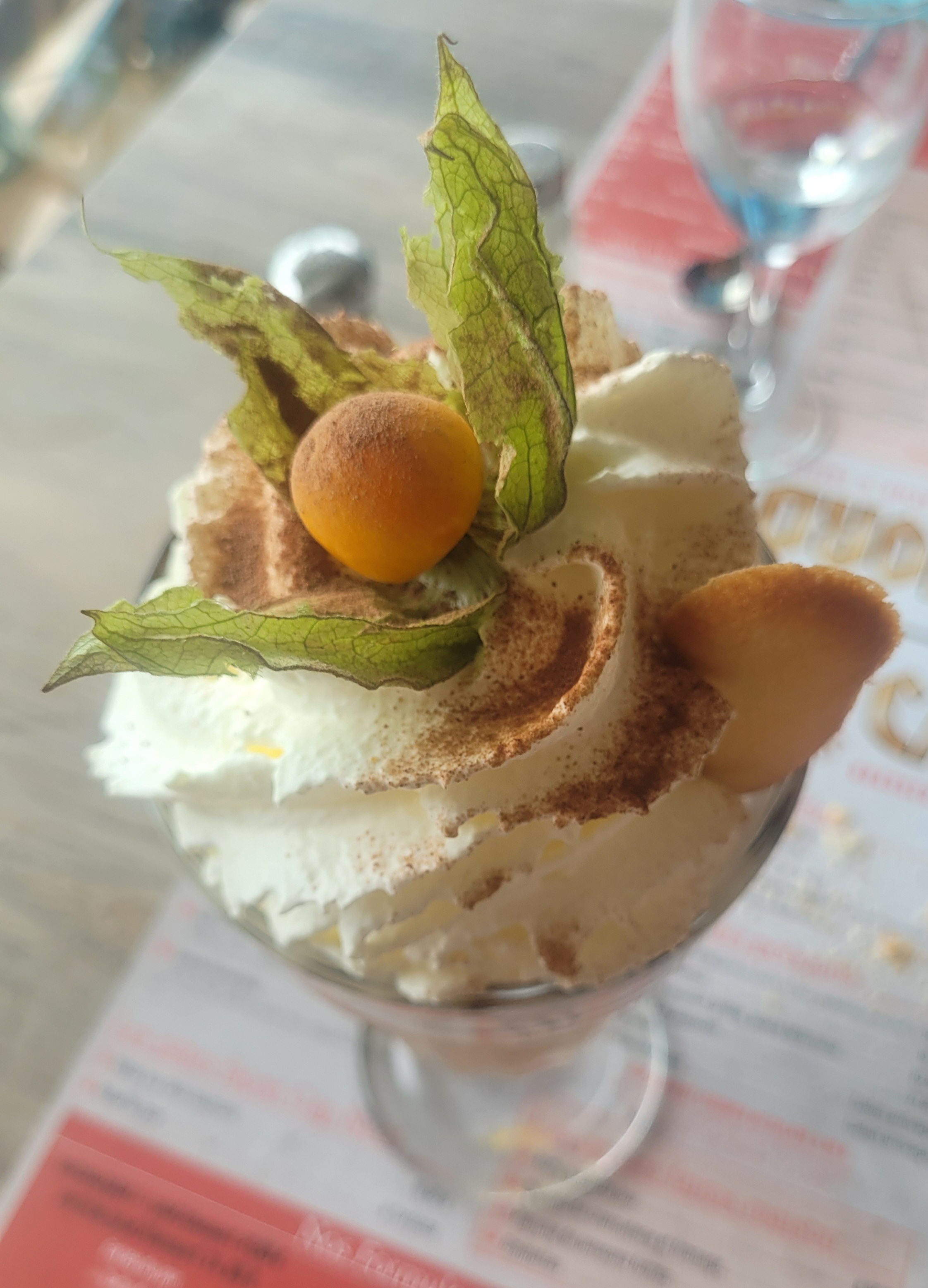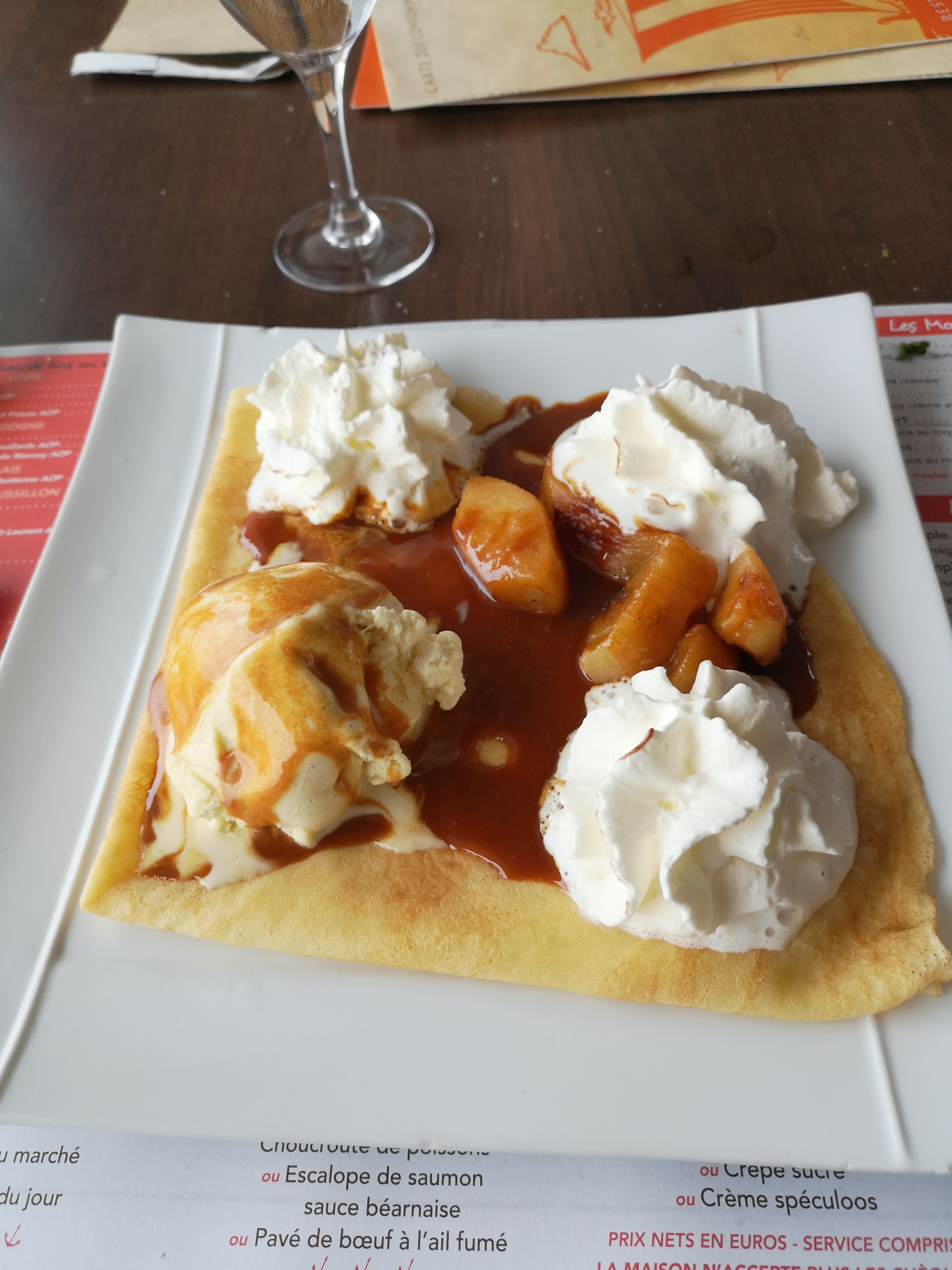 nous avons bien mangé avec mes amis mais malheureusement nous avions réservé une table pour 20h nous sommes arrivés on nous a dit que la table n’était pas disponible de suite , on nous a donc conseiller de prendre un verre sur la terrasse , ce que nous avons fait .Apres plus de 45 minutes d'attentes( dehors avec le vent et le froid ) notre table est enfin prête , les plats arrivent relativement vite nous prenons du vin ainsi que le dessert et le digestif . Nous recevons la note en espérant un geste commercial de la part du restaurateur pour nous avoir fait attendre . Qu'elle ne fut pas notre surprise en voyant la note ... pas un petit geste commercial je trouve cela dommage malgré que ce soit une bonne adresse pour manger, je suis un peu déçue . ( dessert surgelé)
