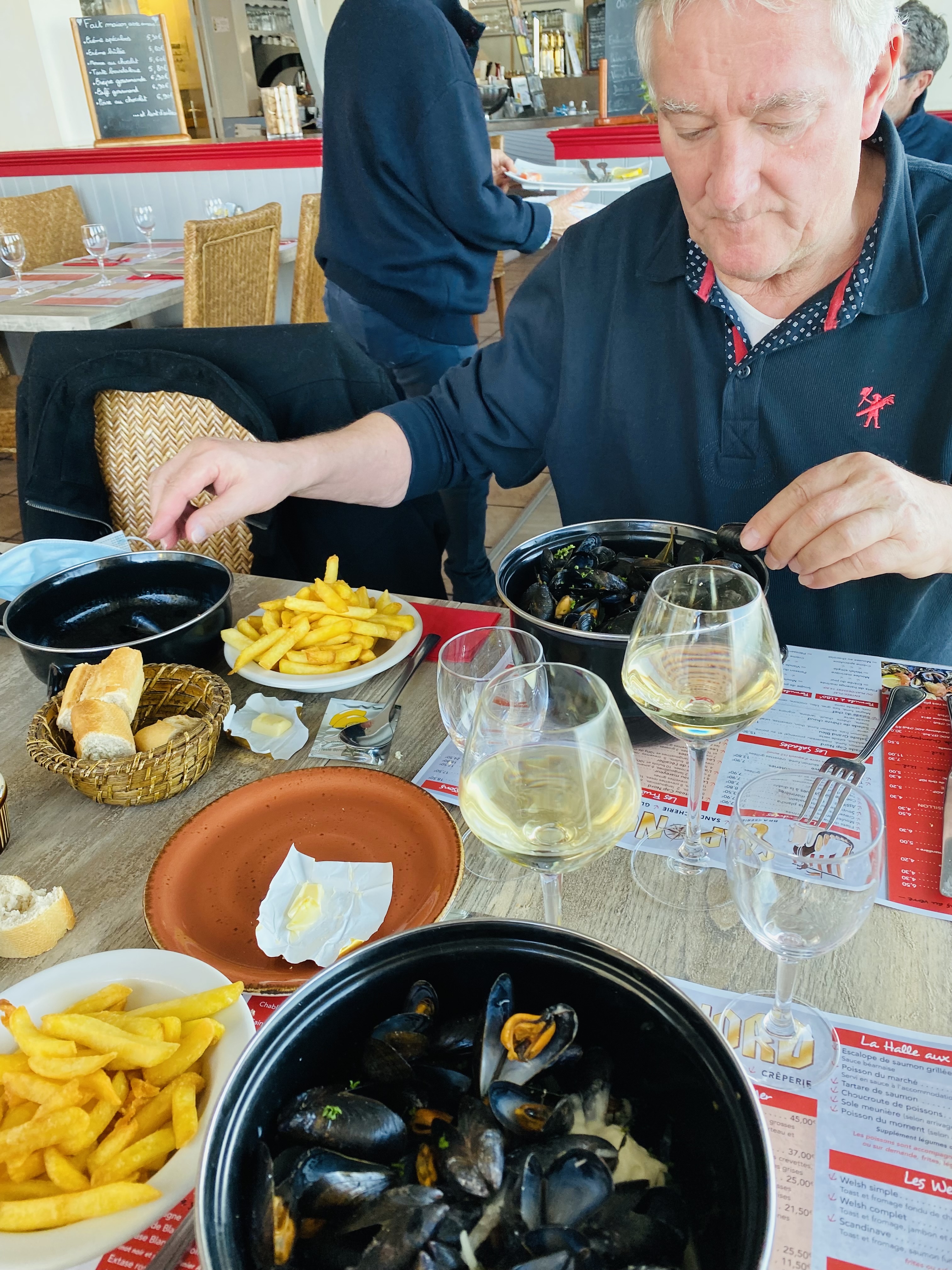Bonjour, 3 étoiles au total car les prix sont corrects et la dame qui nous accueille est très sympathique, ainsi que les serveurs, mais les moules marinières n'avaient pas trop de goût , juste 3 petits morceaux d'oignons, les moules n'avaient pas de saveurs, puis les frites, froides en 3 minutes, sauf erreur ce sont des frites surgelées. Sinon, le restaurant est en face de la mer et ça, c'est vraiment bien 😁 Je leur souhaite un bon courage, car métier pas facile du tout