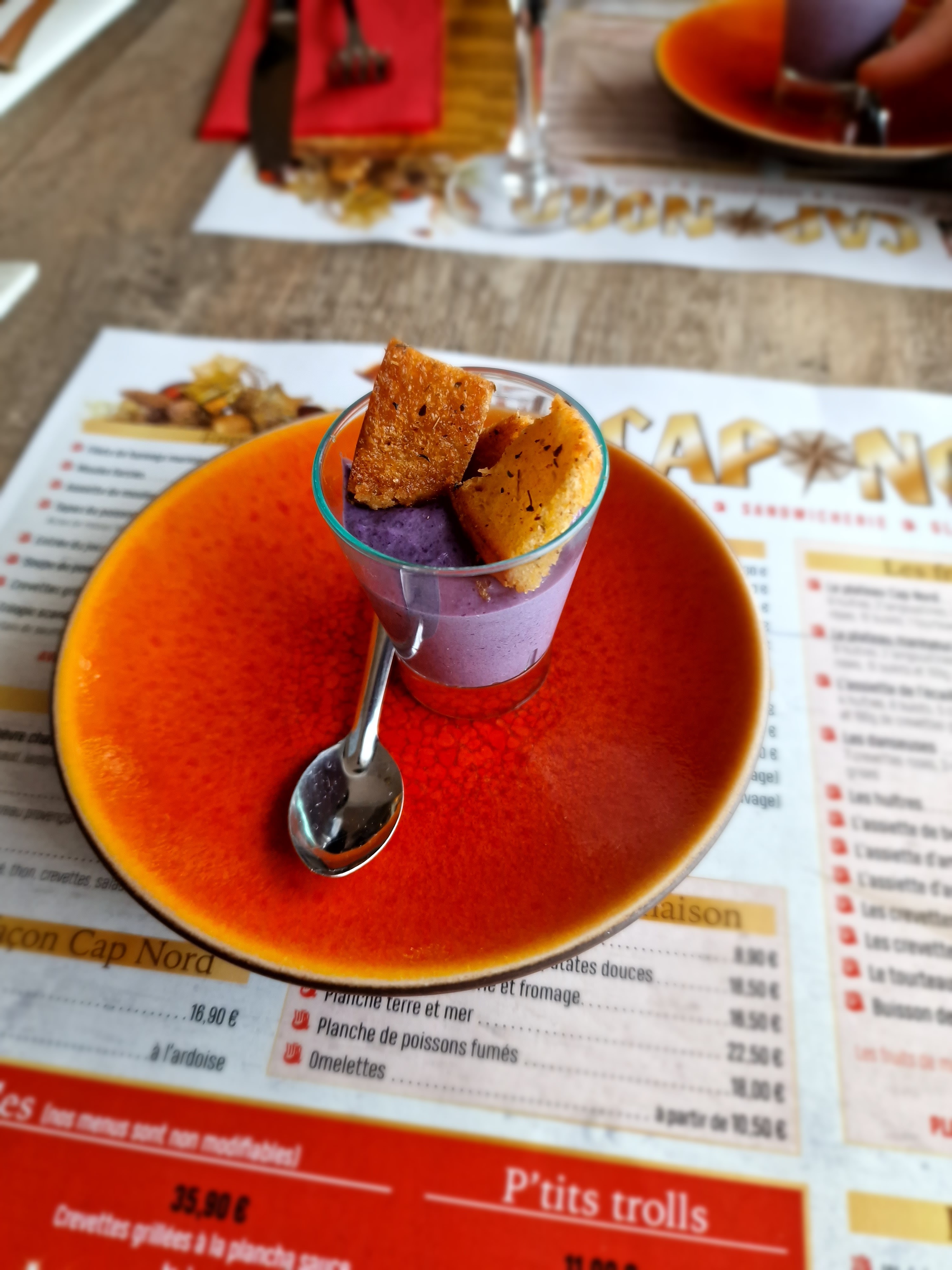 En ce jour pluvieux quoi de mieux qu'un bon repas au chaud et face à la mer 😊. C'est ce que nous avons trouvé à Cap Nord. Mention spéciale pour le personnel et spécialement pour Manu qui s'est occupé de nous avec professionnalisme et gentillesse.