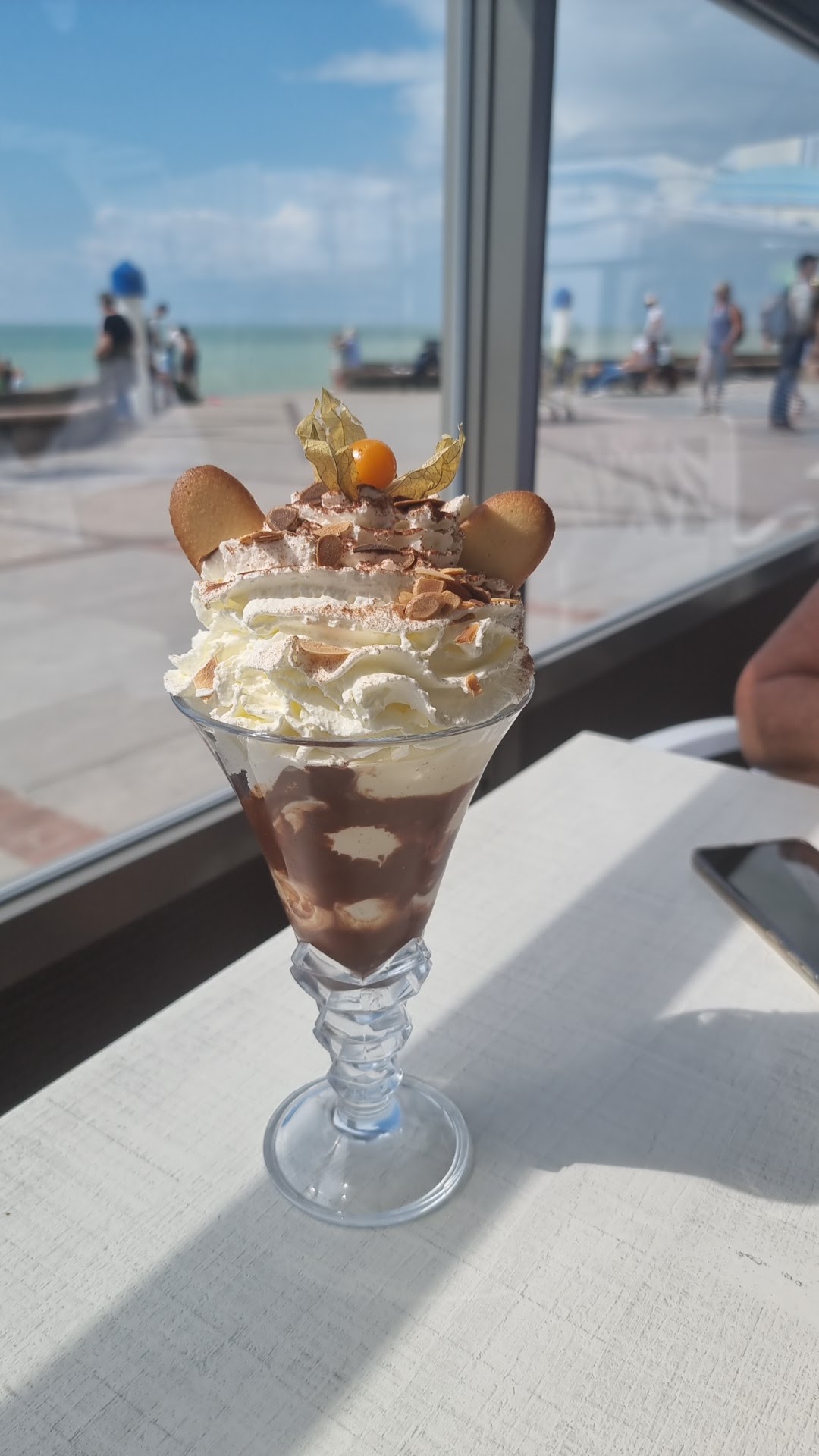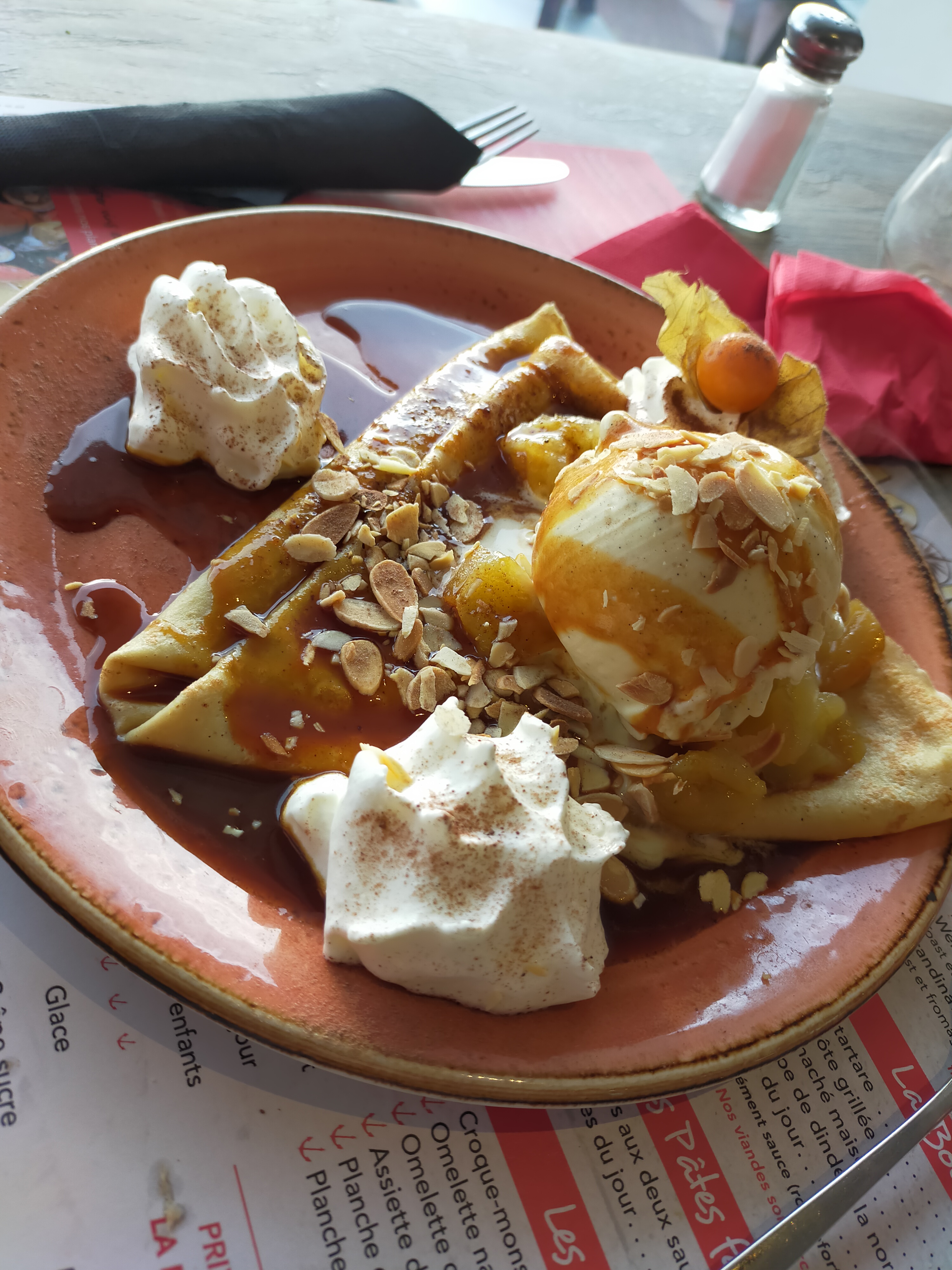 Superbe vue sur la mer ! Accueil mitigé, à la fois très sympathique et chaleureux par l'équipe au comptoir mais notre serveuse était visiblement agacée. Crêpes gourmandes excellentes.