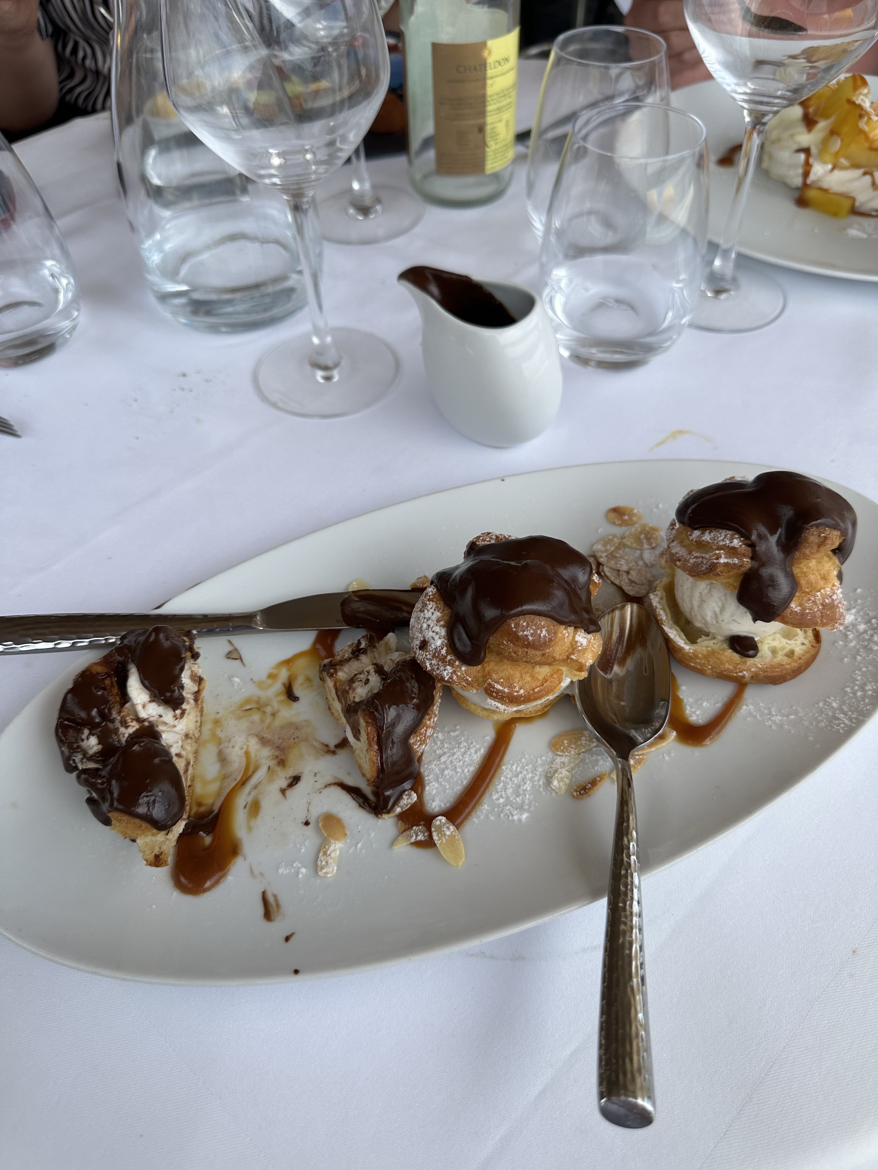 Diner très agréable avec vue mer. Menu 45 euros avec des plats très bien cuisinés. Également à la carte mais nous avons attendu un long moment le plat car nous n'avons pas pris d'entrée. Pour le dessert je recommande les profiteroles au chocolat!