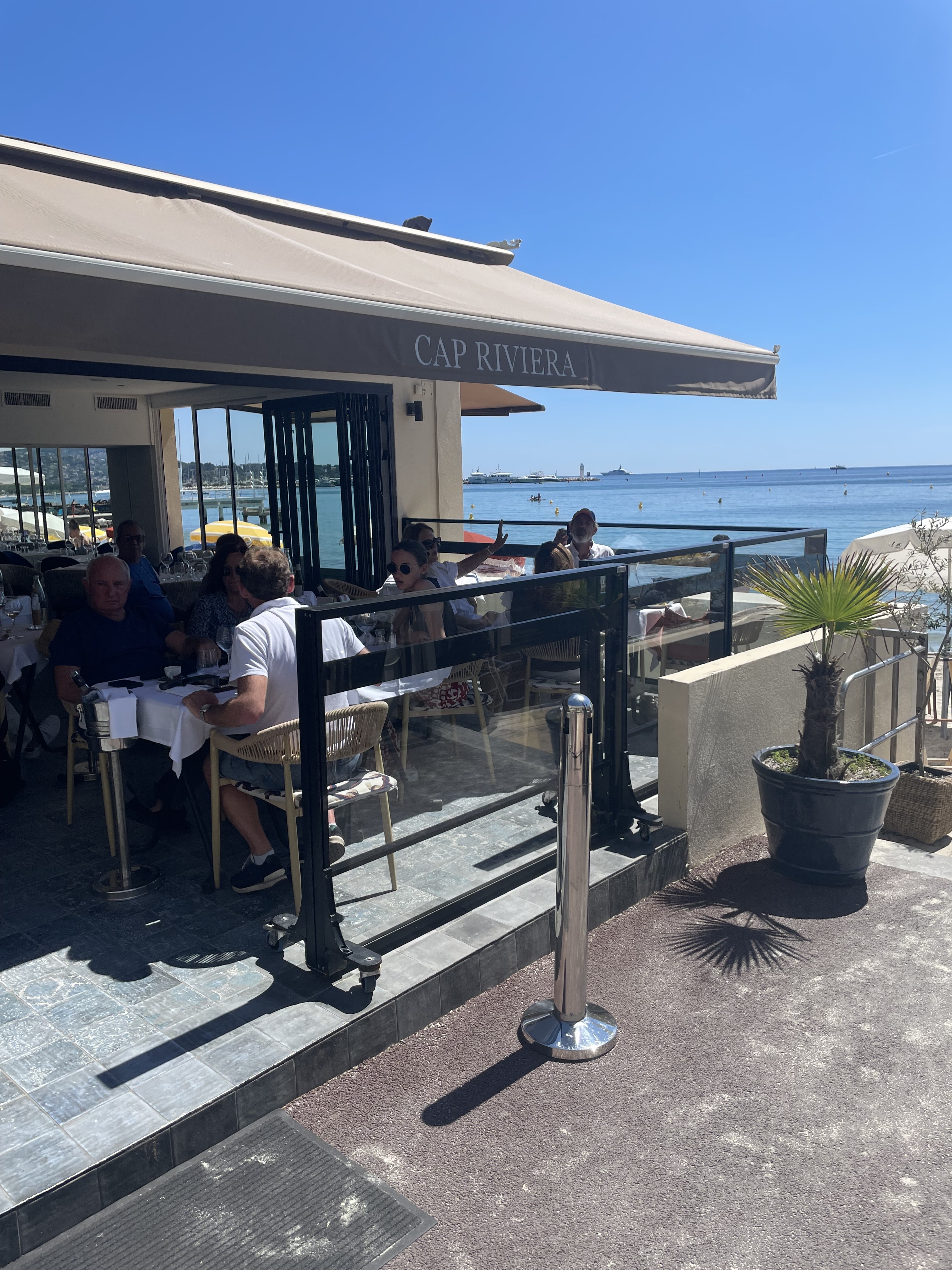 Il s’agit de la deuxième année où nous retournons au Cap Riviera. Sans aucun doute une des meilleures adresses d’Antibes/Juan les Pins. Le service est digne des plus grandes tables, la cuisine est raffinée, un vrai plaisir gustatif avec vue sur mer et pieds dans le sable. Rapport qualité/prix au top. Nous tenons à axer notre avis sur le serveur qui s’est occupé de notre table, pour la deuxième année consécutive, une qualité de service exceptionnel. C’est en parti grâce à cette personne que nous avons un si bon souvenir du Cap Riviera. Personnel investi, qui fait bien plus que son travail. Merci encore à toute l’équipe du Cap Riviera, tout est fait pour passer un excellent moment, lieu incontournable, nous recommandons.