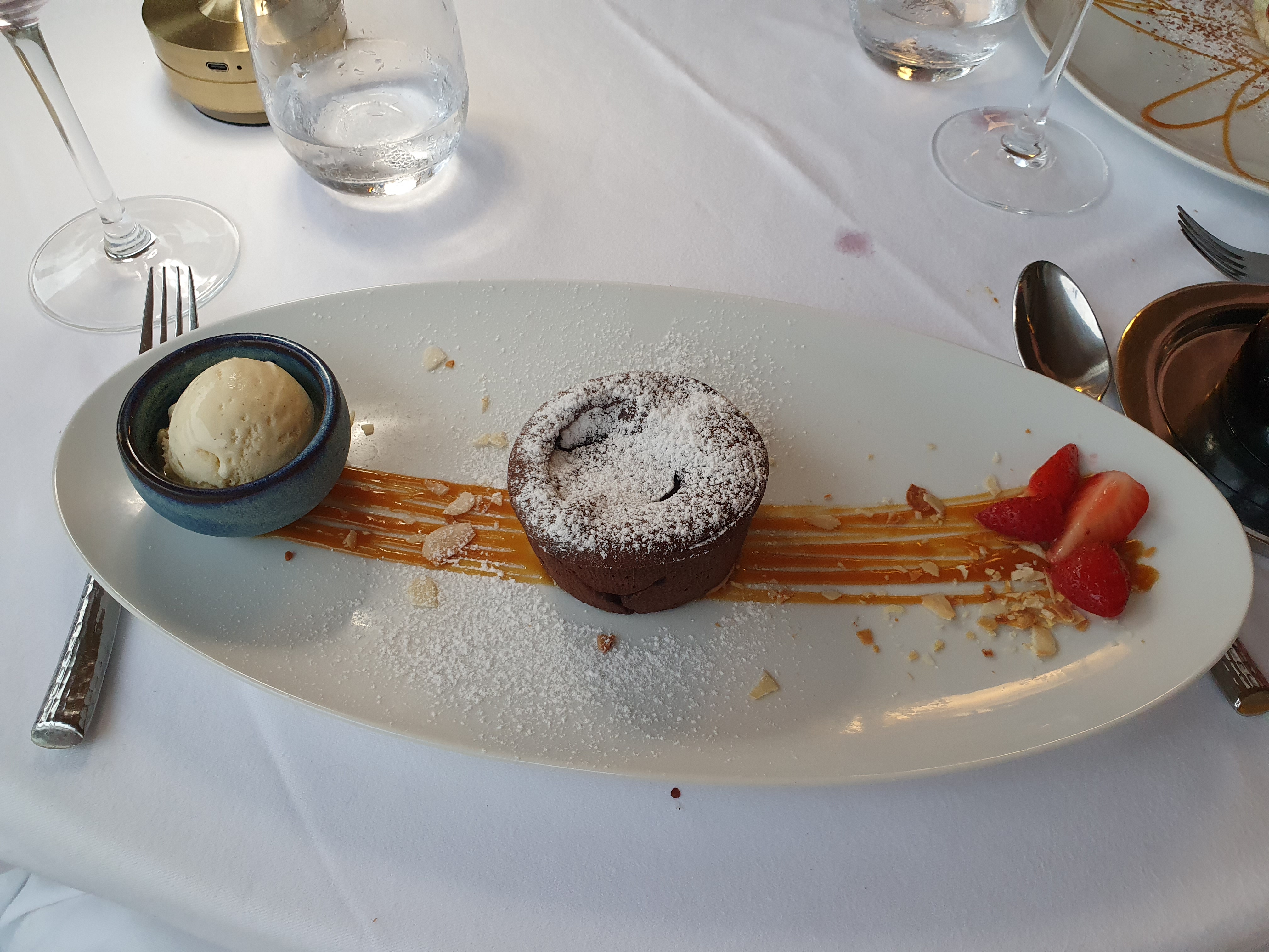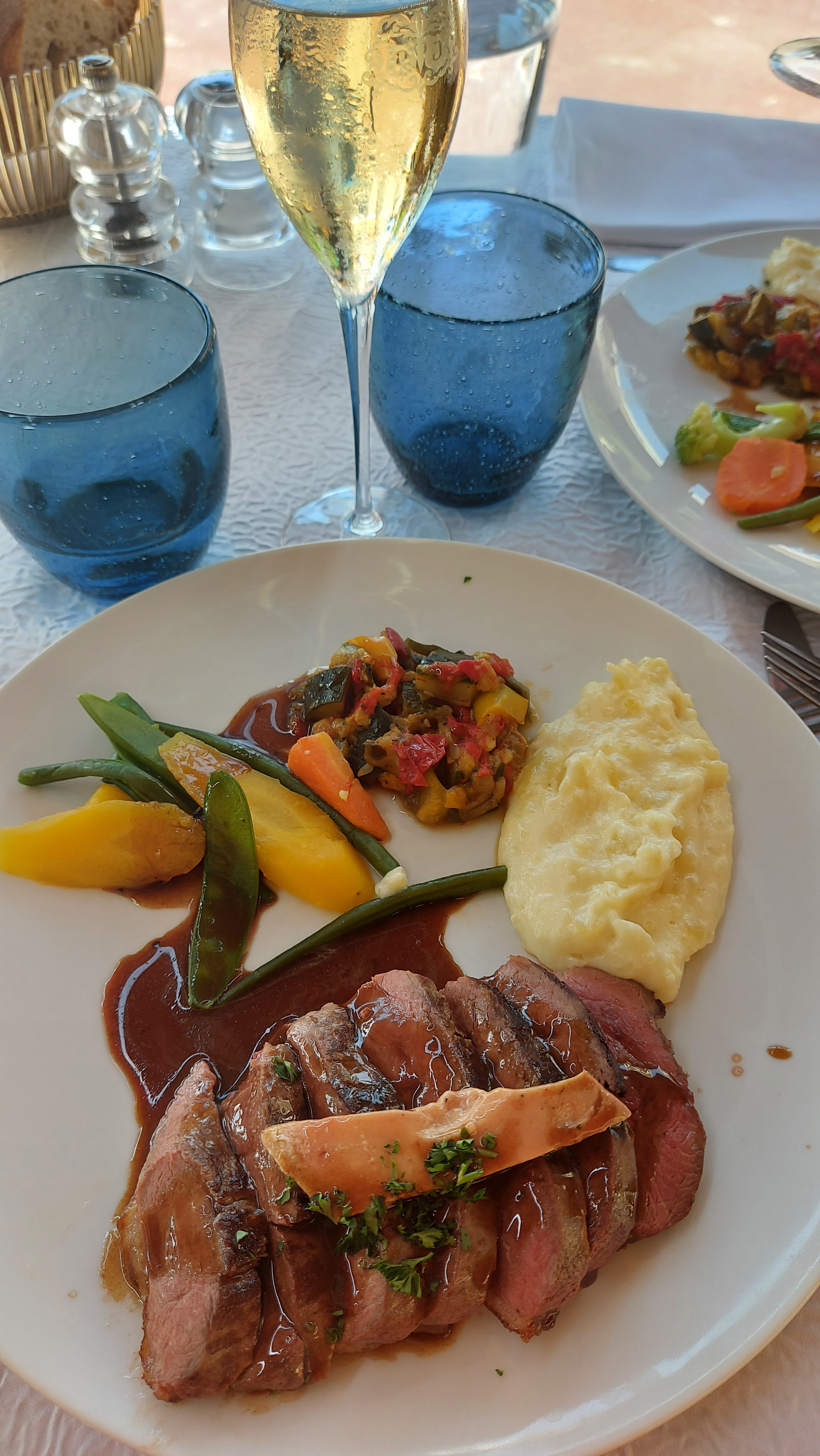 En un mot : parfait ! Les serveuses étaient absolument adorables et le cadre est magnifique. On se sent tout de suite accueillis, avec des petits apéritifs offerts (tapenade et gaspacho). Menu à 42€ le soir (entrée plat dessert) avec du choix pour tout le monde, et petit plus : on ne sert pas d'emblée monsieur pour goûter le vin, comme c'est encore le cas dans trop d'établissements !