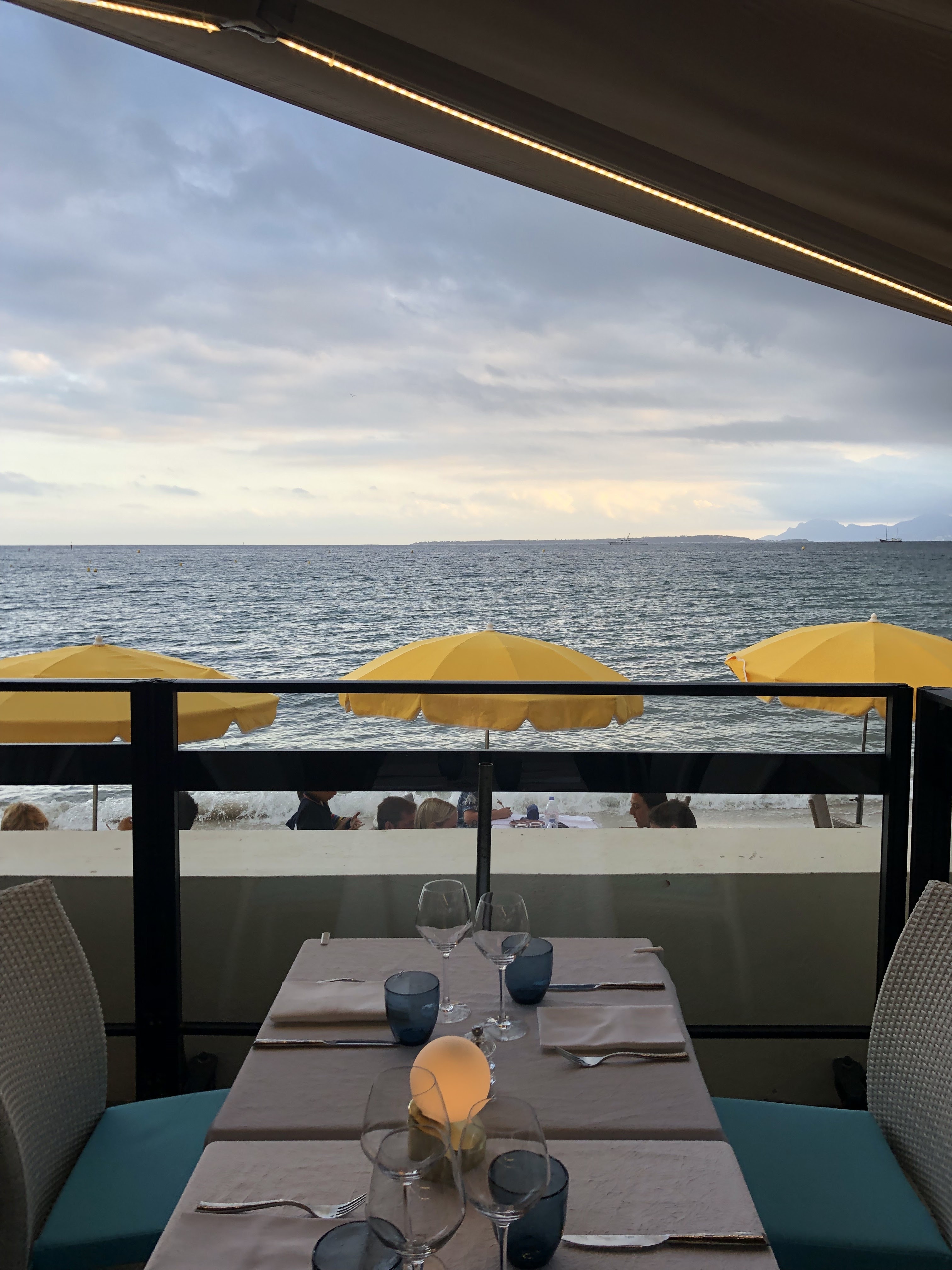 Excellente cuisine inventive face aux îles de LEIRINS. Très beau cadre et personnel sympathique. La plage et la Méditerranée sous les yeux! Le top à midi. Le soir, pour le dîner, c’est plus cher mais le coucher de soleil fait oublier l’addition !!!