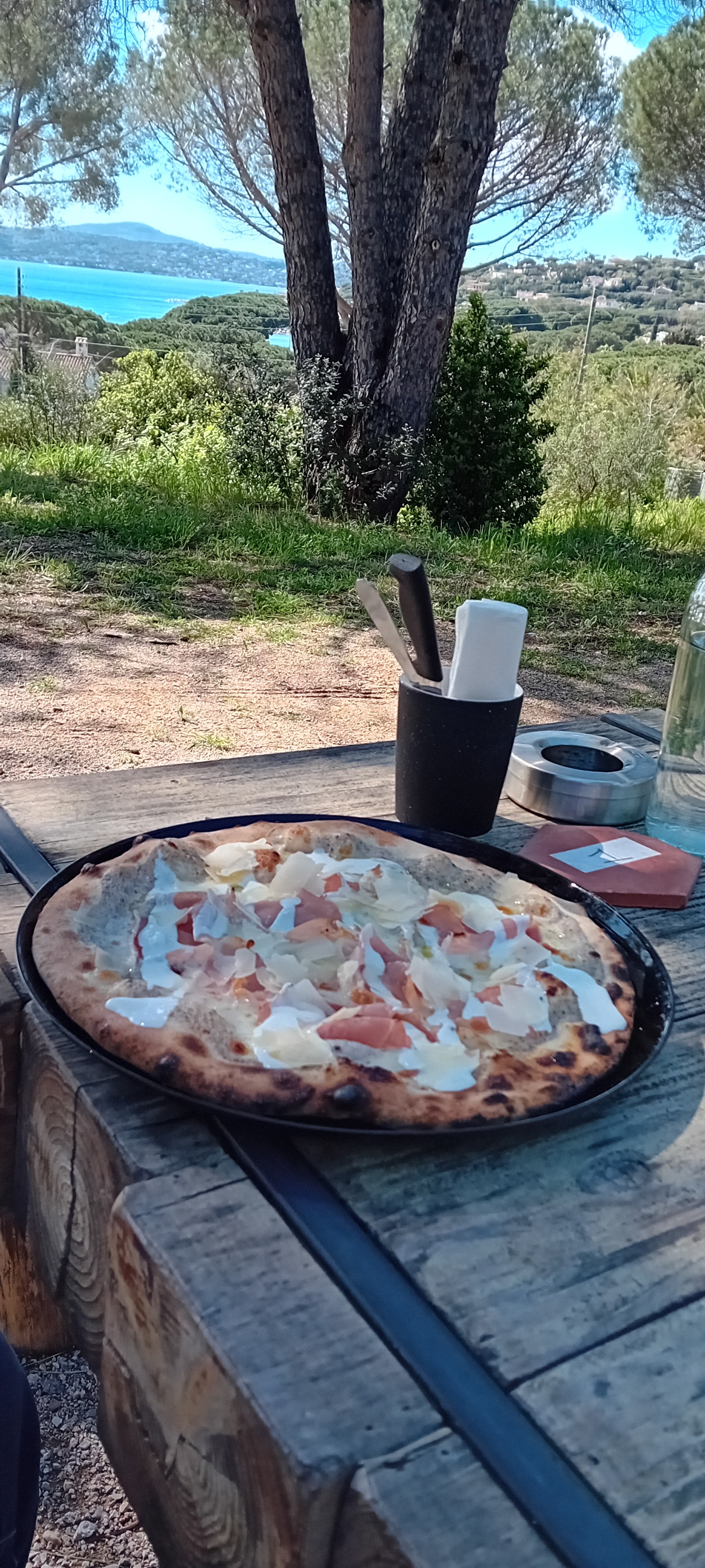 C’est après une fabuleuse journée d’exploration de la côte varoise que nous avons découvert, de manière inopinée, ce restaurant au caractère atypique sur les hauteurs de Sainte Maxime offrant une vue merveilleuse sur la mer. Nous avons été très agréablement surpris par l’atmosphère conviviale de ces lieux. Venons au principal : LES PIZZAS réalisée avec des produits de qualités, il est rare dans déguster d’aussi bonne. Lieu à découvrir
