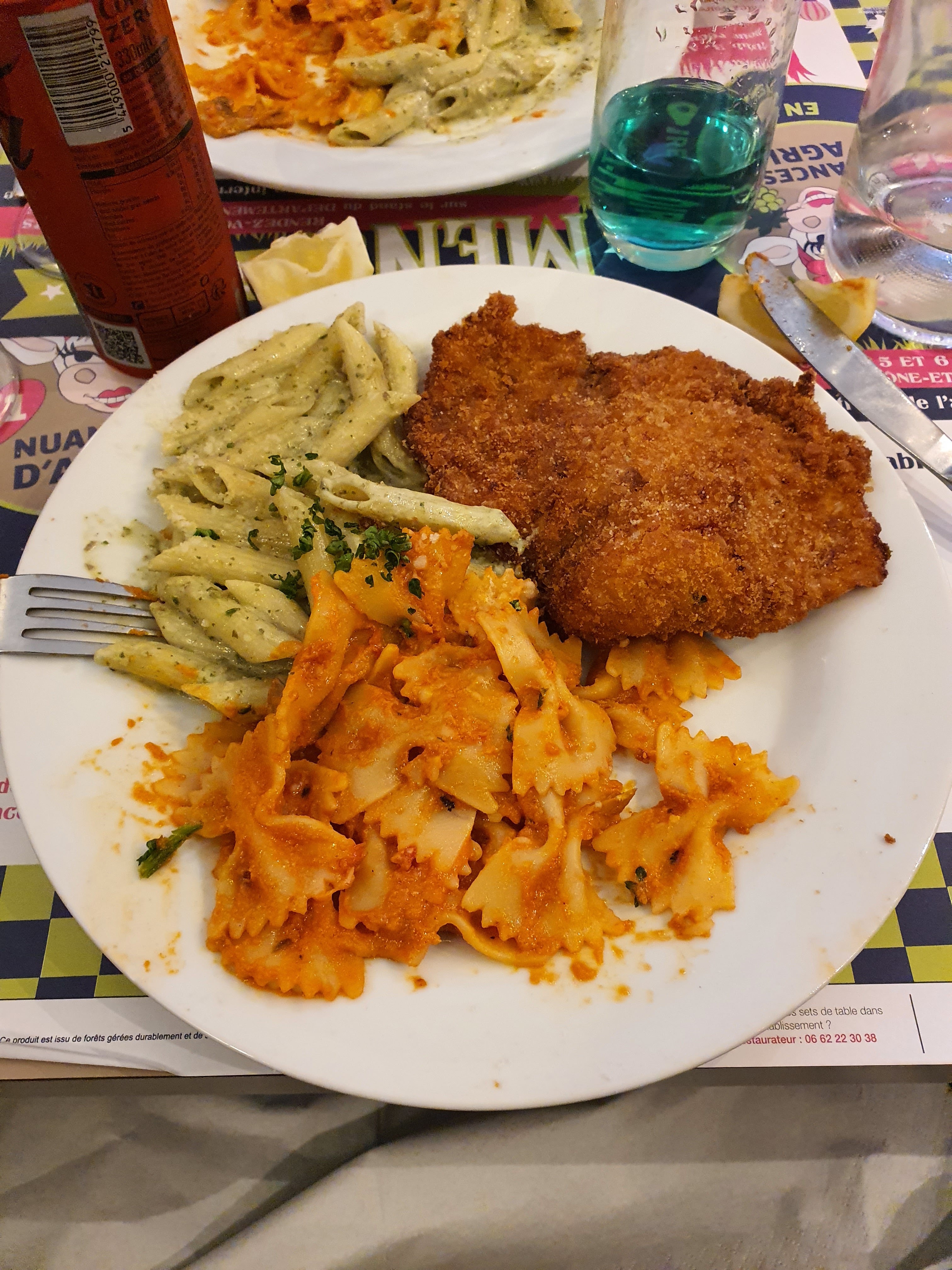 Les pâtes maisons et l'escalope milanaise sont délicieuses! Ambiance sympa et service rapide !