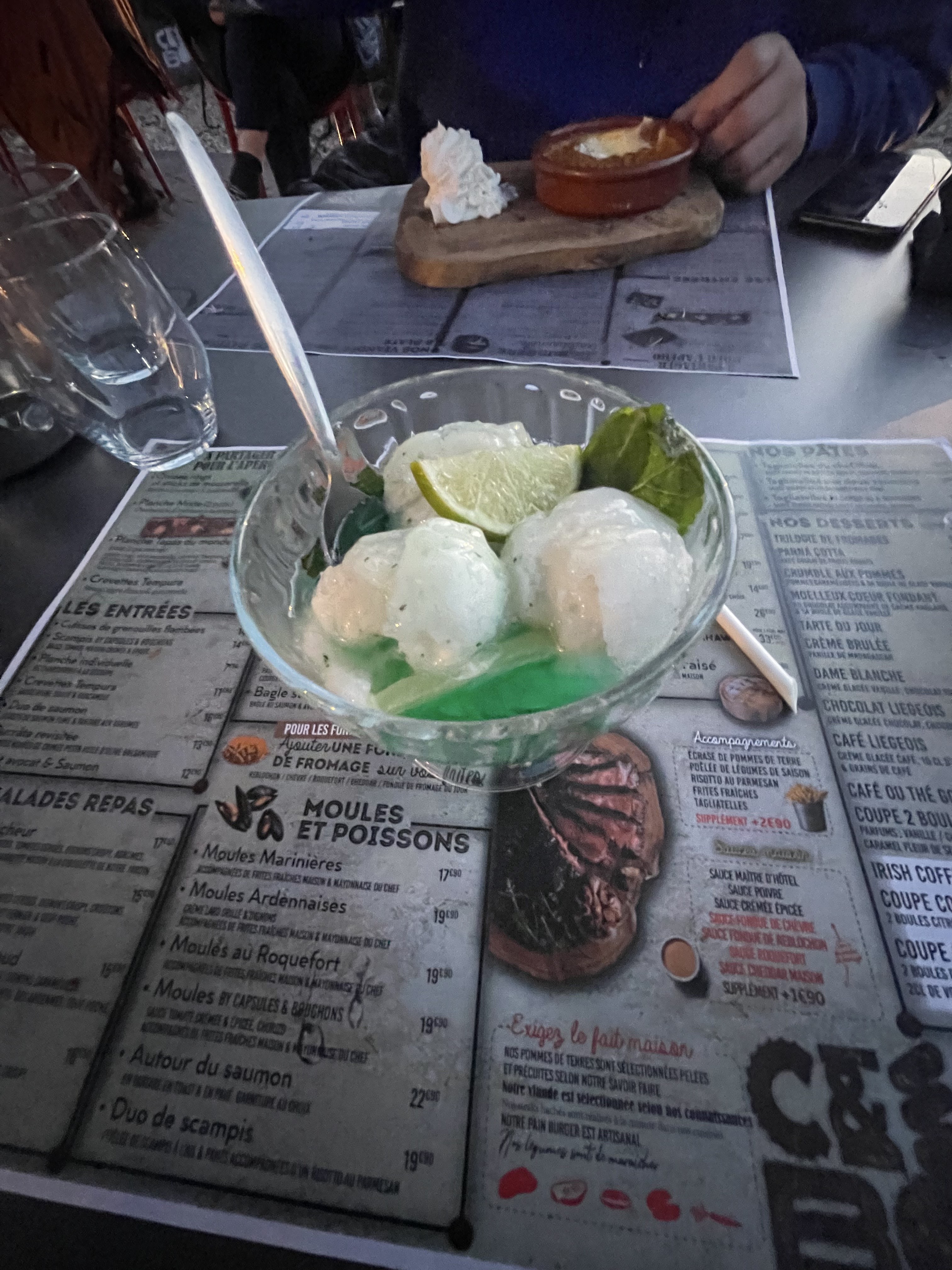 Une première pour 2 cocktail extra, planche pas top car les calamars pas de qualité mais je recommande les moules crème chorizo j'en me suis régalé ainsi que le tartare de monsieur au top et pour finir petite glace dommage qu'il manquait la chantilly mais on reviendra 😉