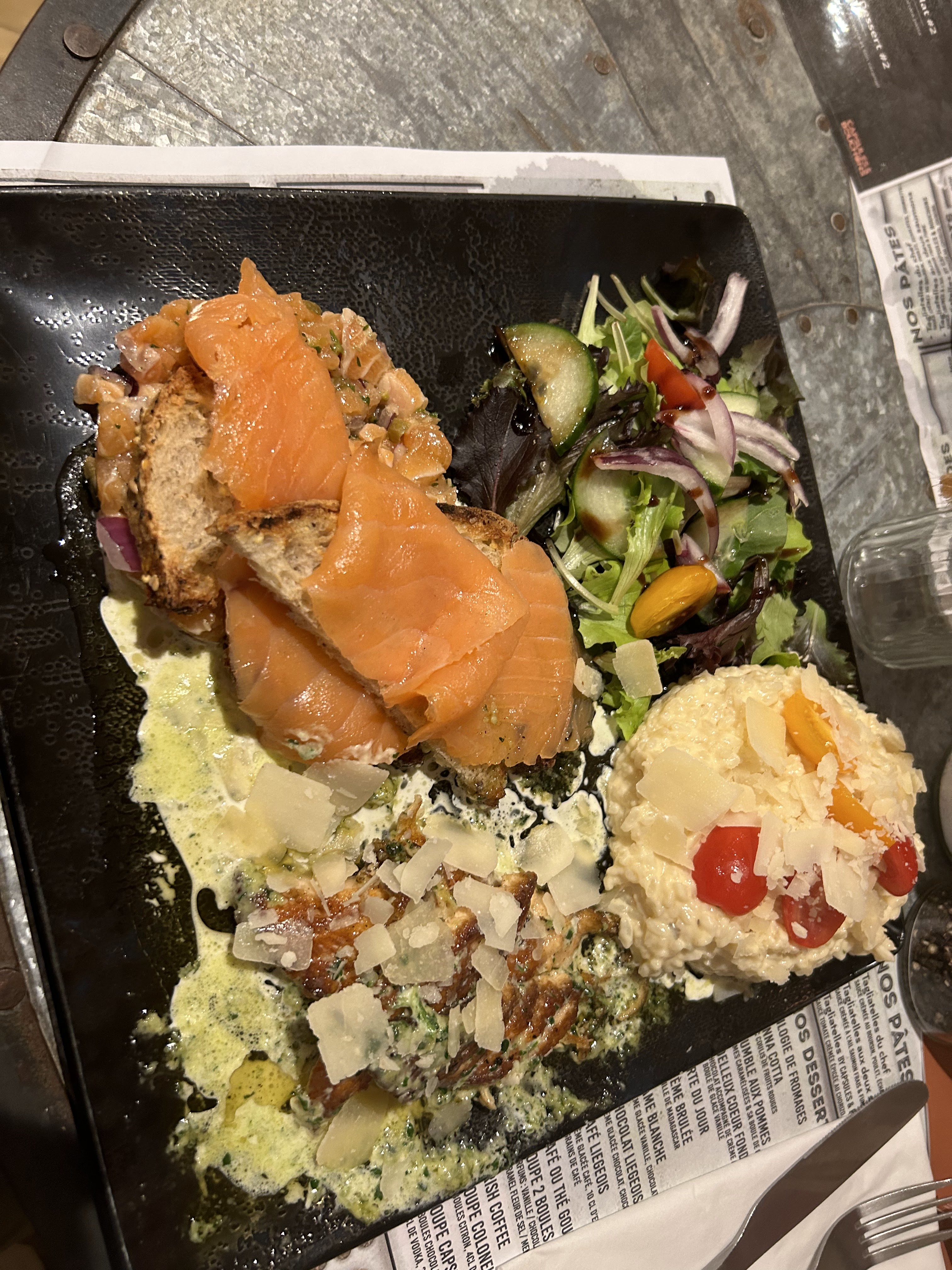 Un véritable régal, nous avons pris 4 plats différents et tout le monde a été enchanté. Je conseille vivement aux amoureux du saumon de prendre le plat autour du saumon un délice. Les plats sont beaux, bons et très très copieux!
