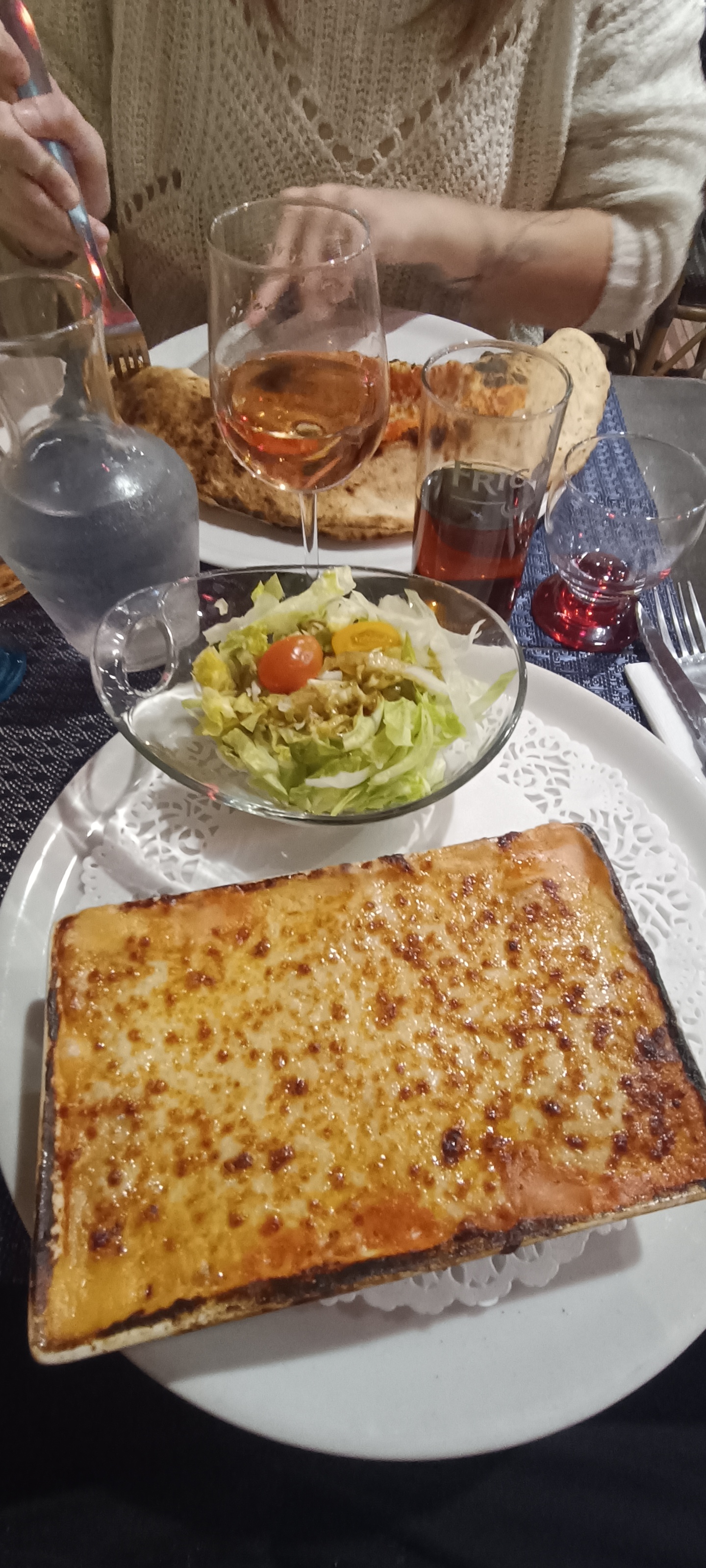 Un accueil chaleureux (à l'italienne comme je la connais), une calzone monstrueuse comme je les aime, un délice 🥰 Monsieur a pris des lasagnes, une belle quantité, avec une petite salade 😋 Nous n'avons pas pris de desserts, un petit limoncello (clairement il y avait plus qu'indiqué sur la carte à mon plus grand bohneur) Le prix est tout à fait raisonnable L'équipe est adorable De plus, nous avons mangé dans la véranda qui est chauffée, on était dans notre intimité. Pour fêter mon anniv et la Saint Valentin c'était vraiment top (et à 50 m de la maison) depuis le temps qu'on voulait y aller, nous ne sommes pas déçus 😍